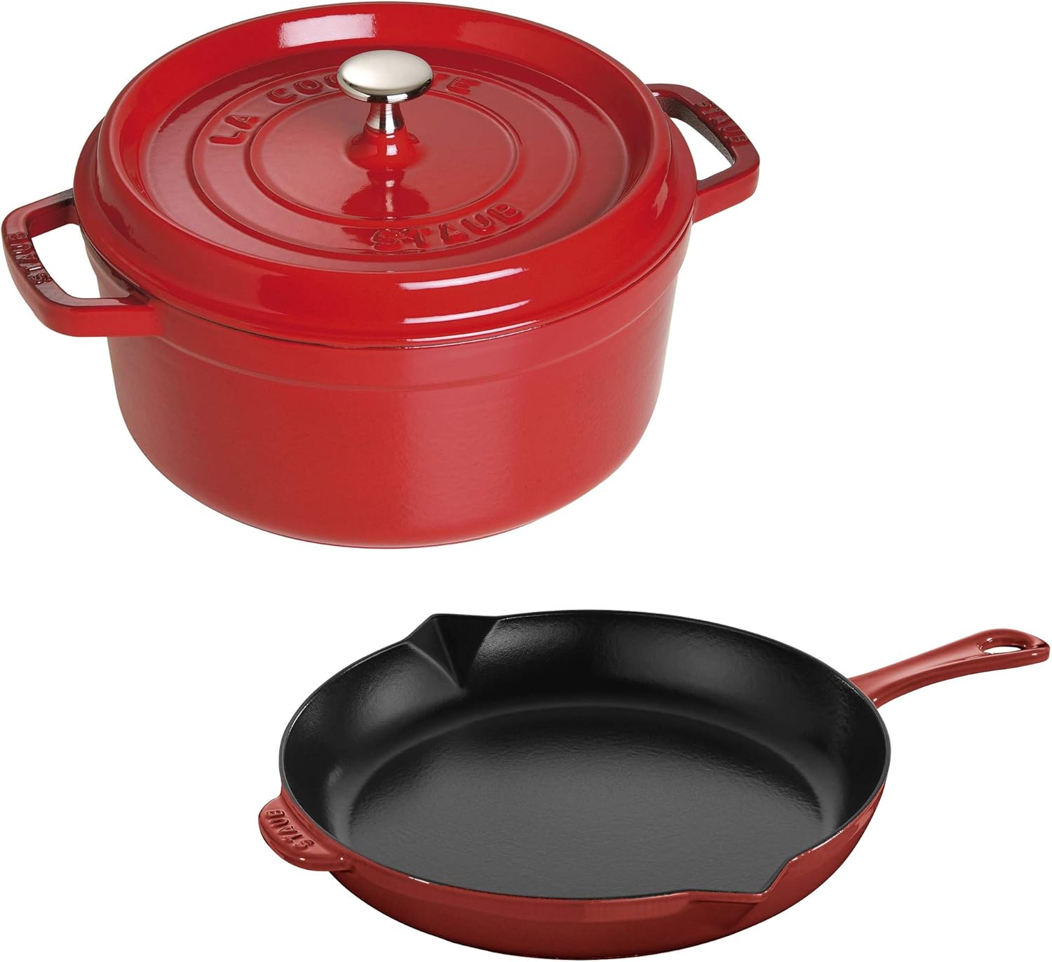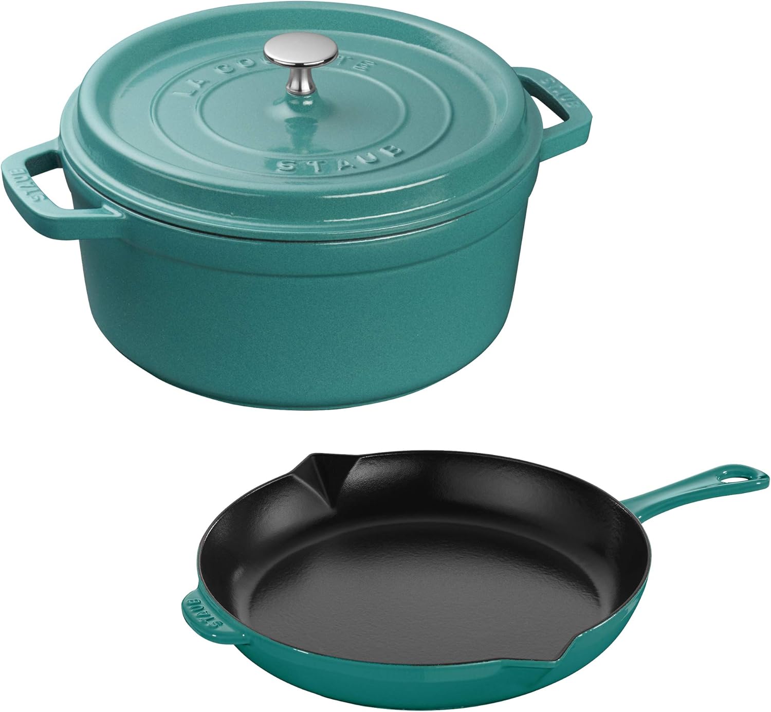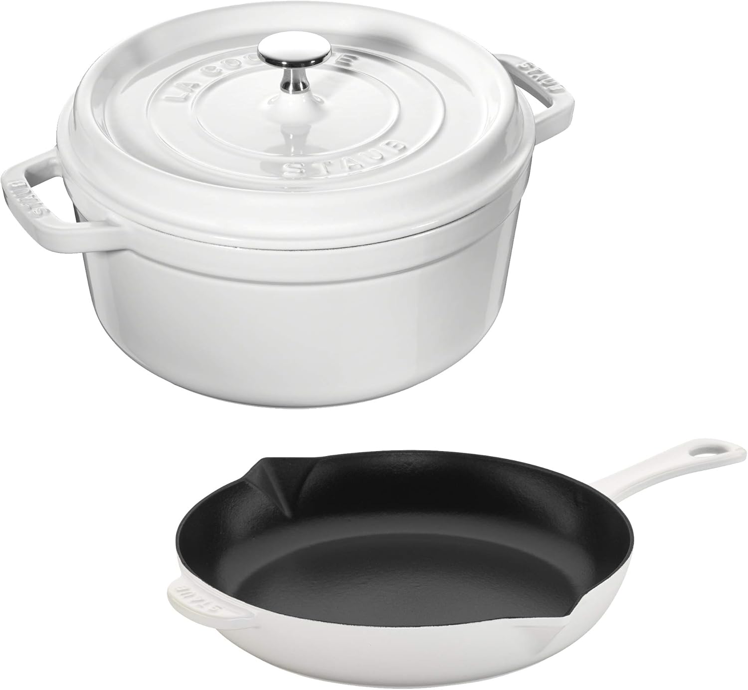 Staub Cast Iron 3-pc Cocotte and Fry Pan Set-Matte Black, Made in France
