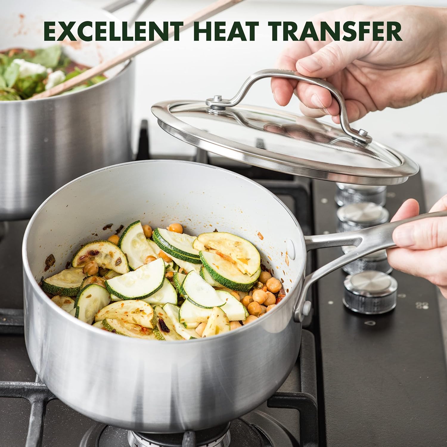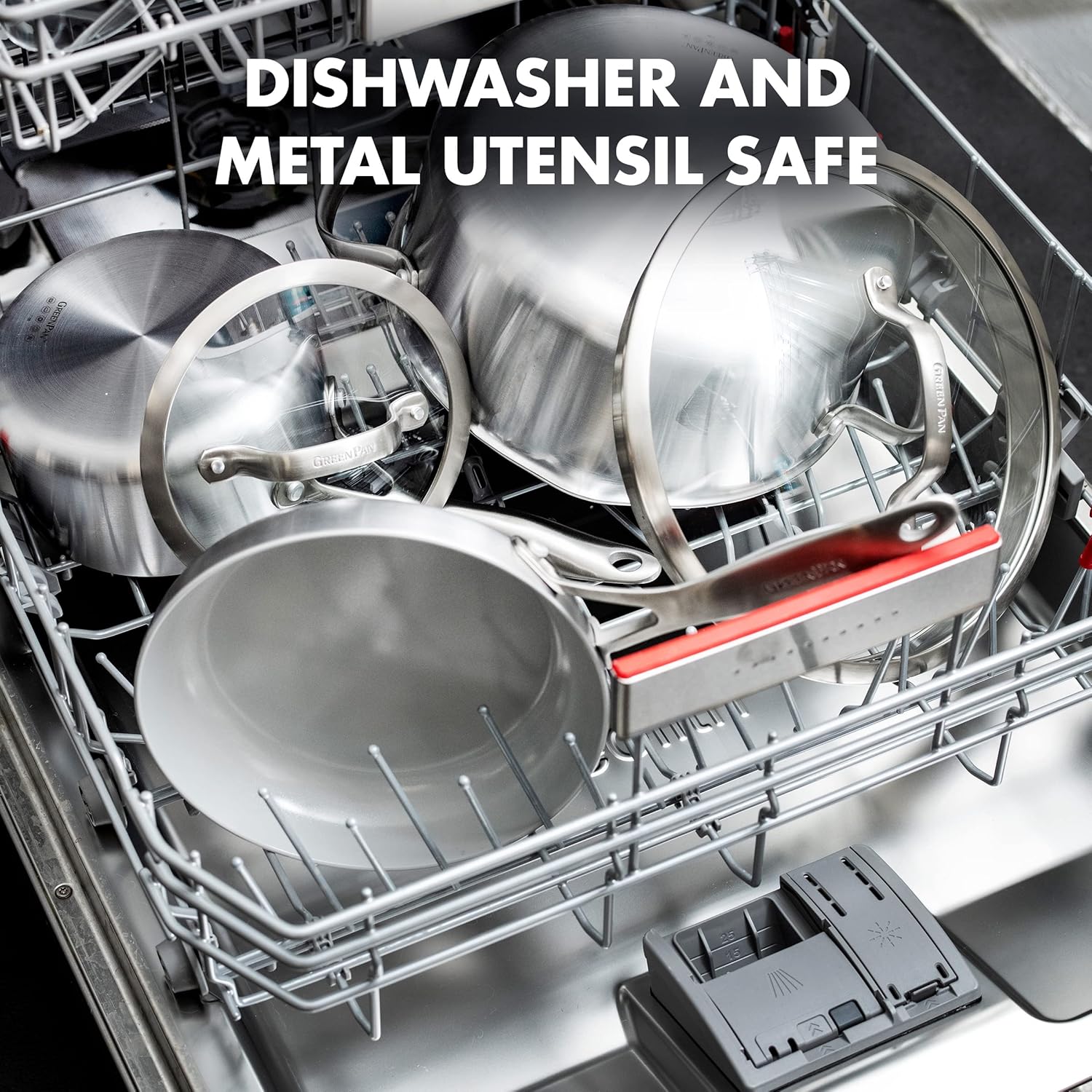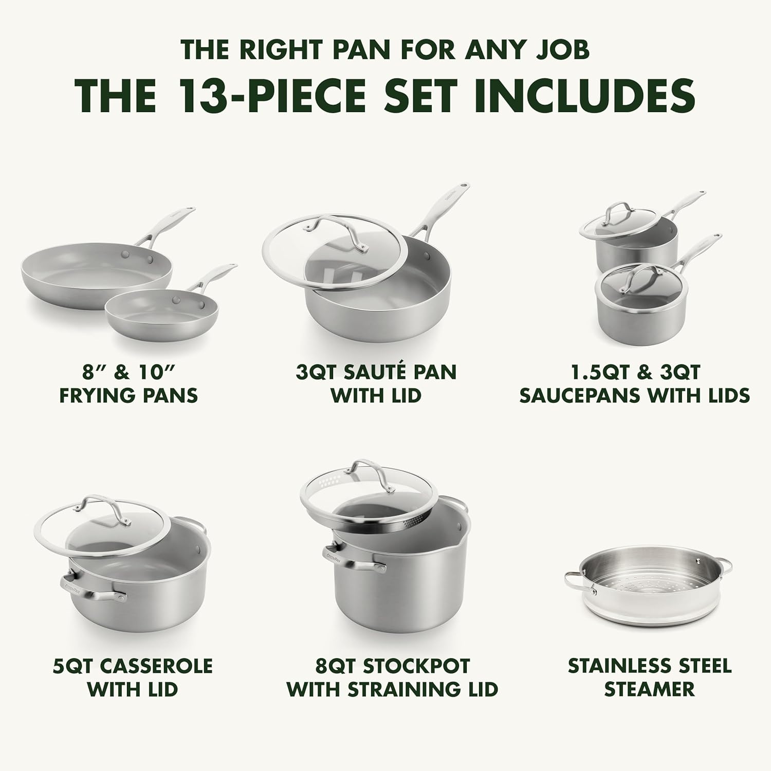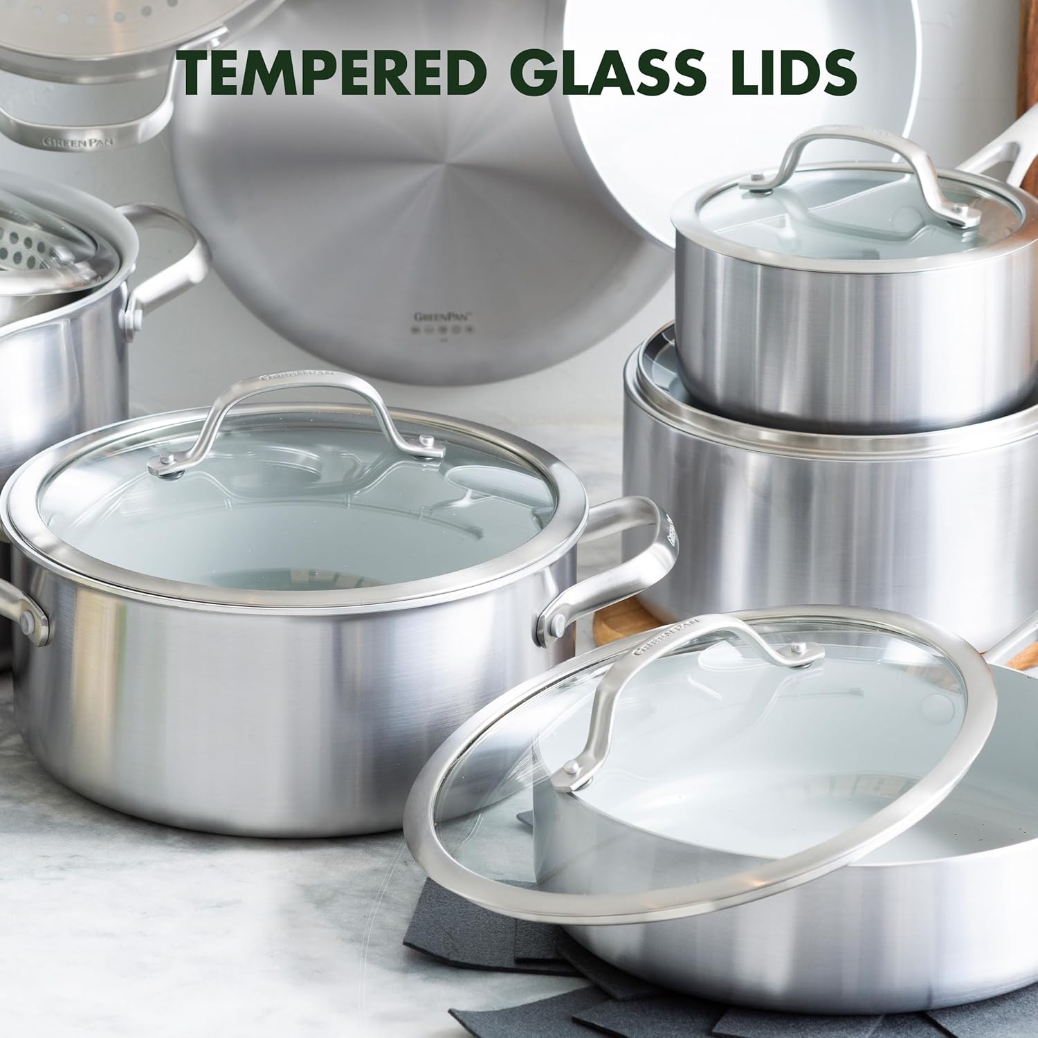 GreenPan Venice Pro Tri-Ply Stainless Steel Healthy Ceramic Nonstick 13 Piece Cookware Pots and Pans Set, PFAS-Free, Multi Clad, Induction, Dishwasher Safe, Oven Safe, Silver
