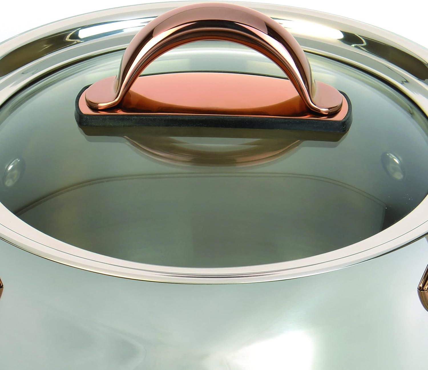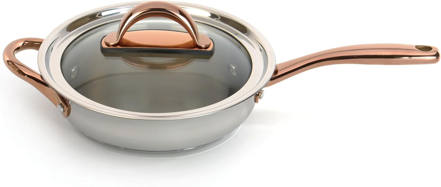 BergHOFF 11 Piece Ouro Cookware Set with Gold Handles and Glass Lids, Silver/Rose