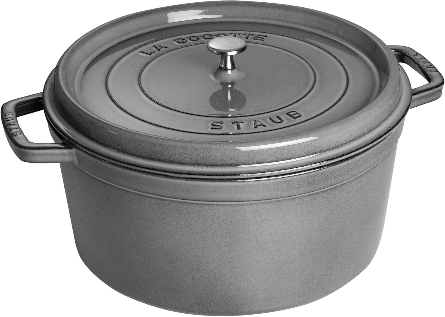 Staub Cast Iron 13.25-qt Round Cocotte - Graphite Grey, Made in France