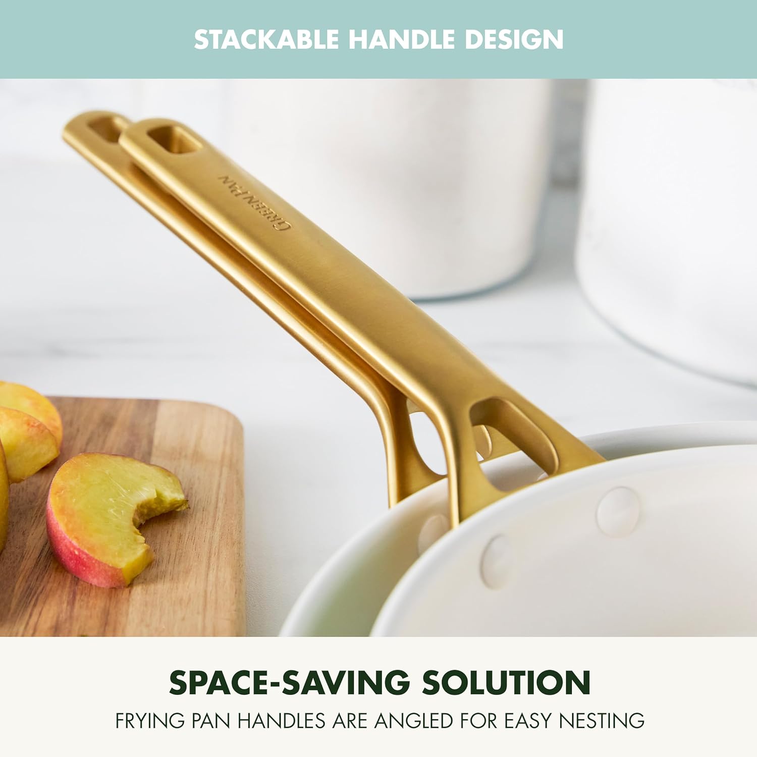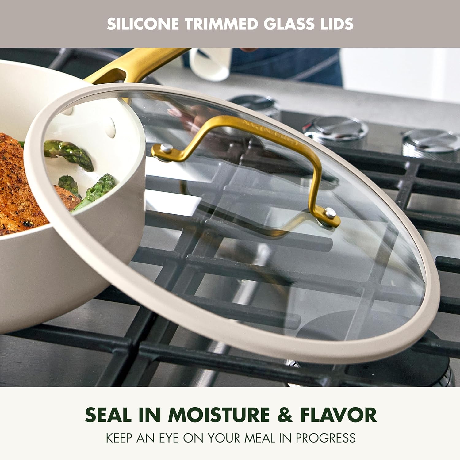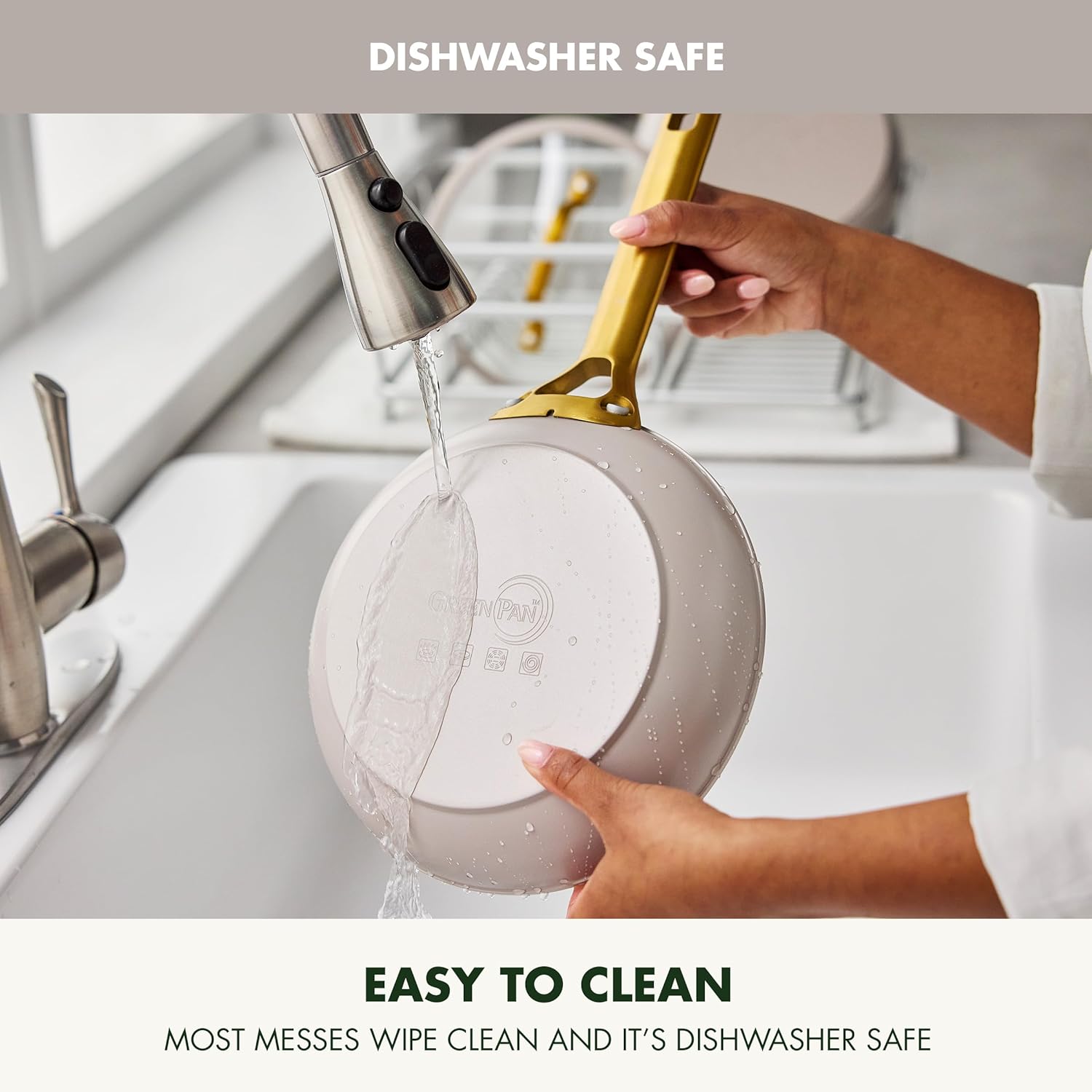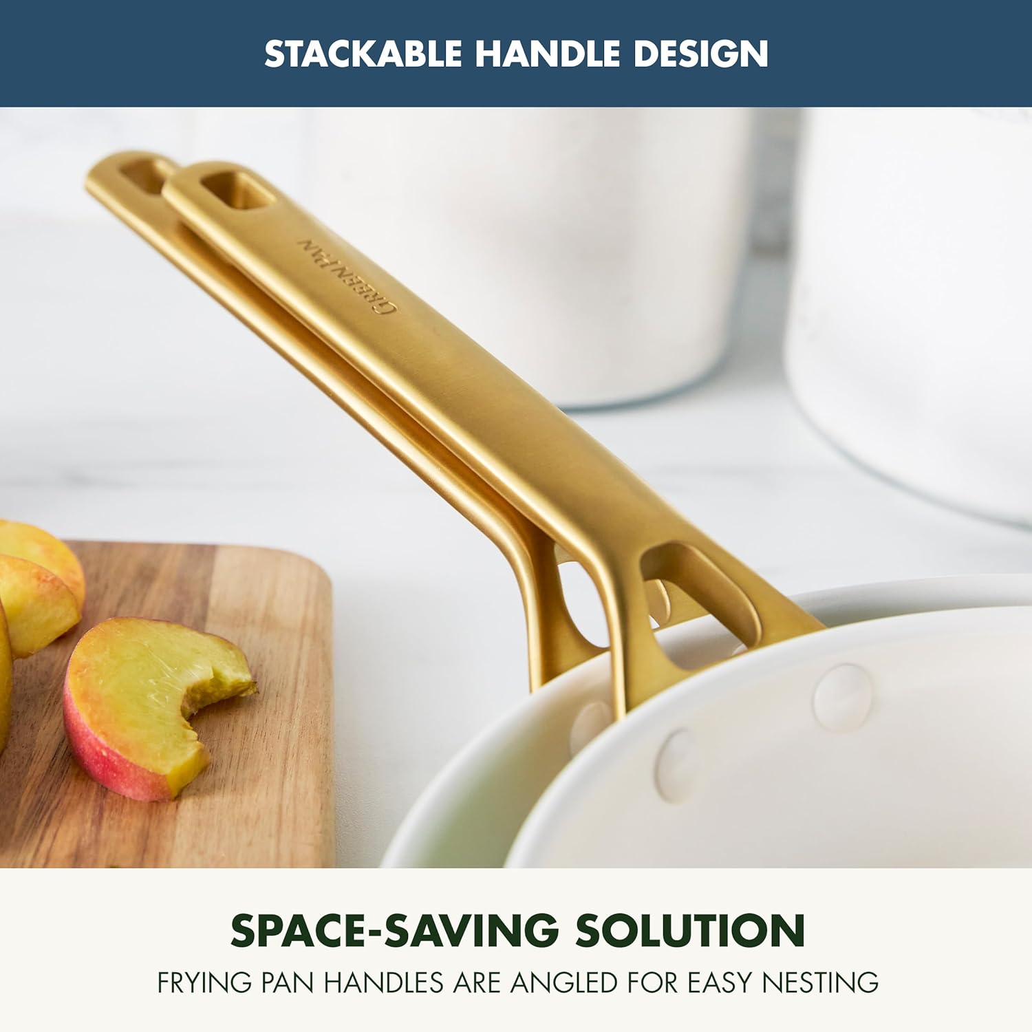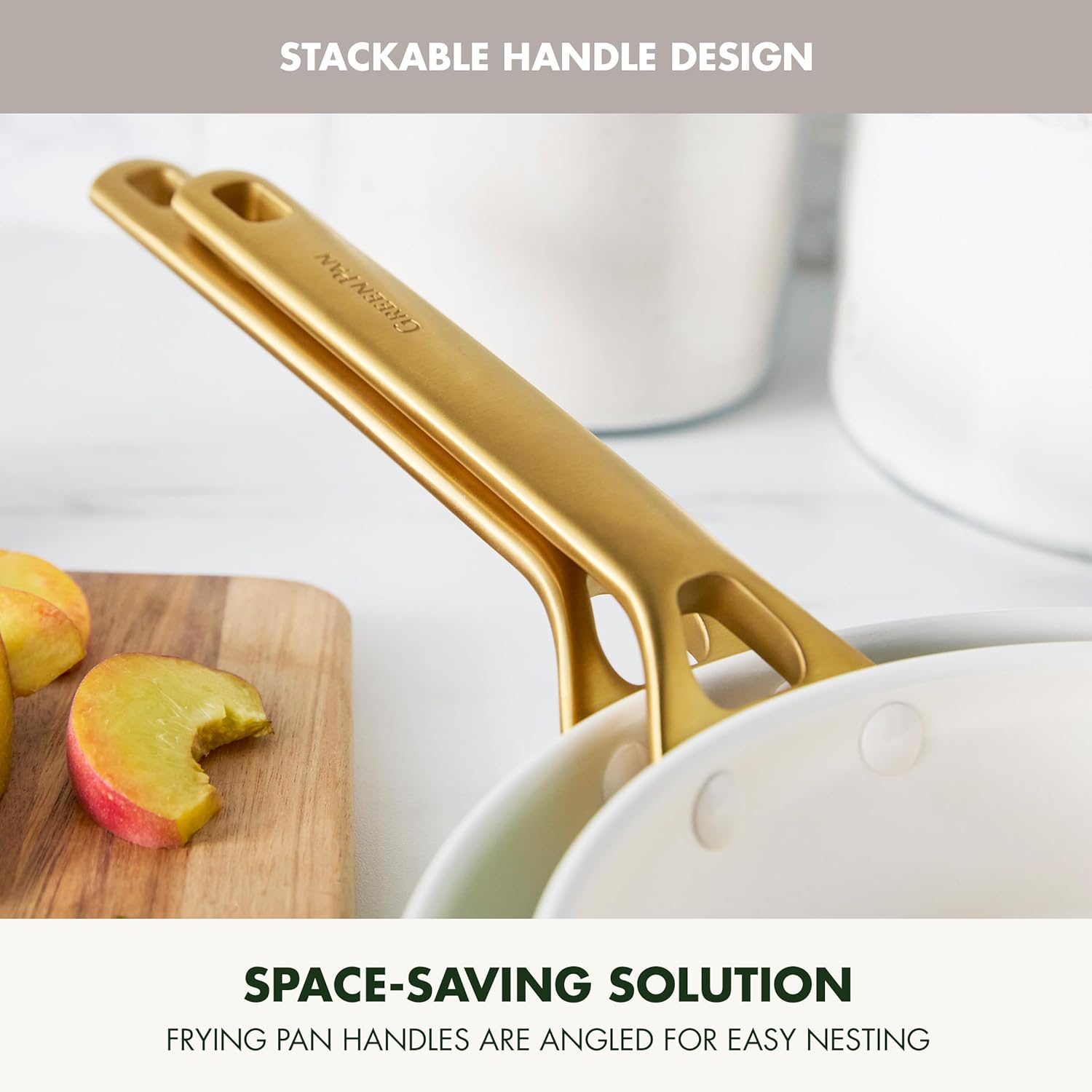 GreenPan GP5 14 Piece Cookware Pots and Pans Set, Hard Anodized Healthy Ceramic Nonstick PFAS-Free, Champagne Handles, Heavy Gauge, Stay-Flat Surface, Induction, Dishwasher and Oven Safe, Cream