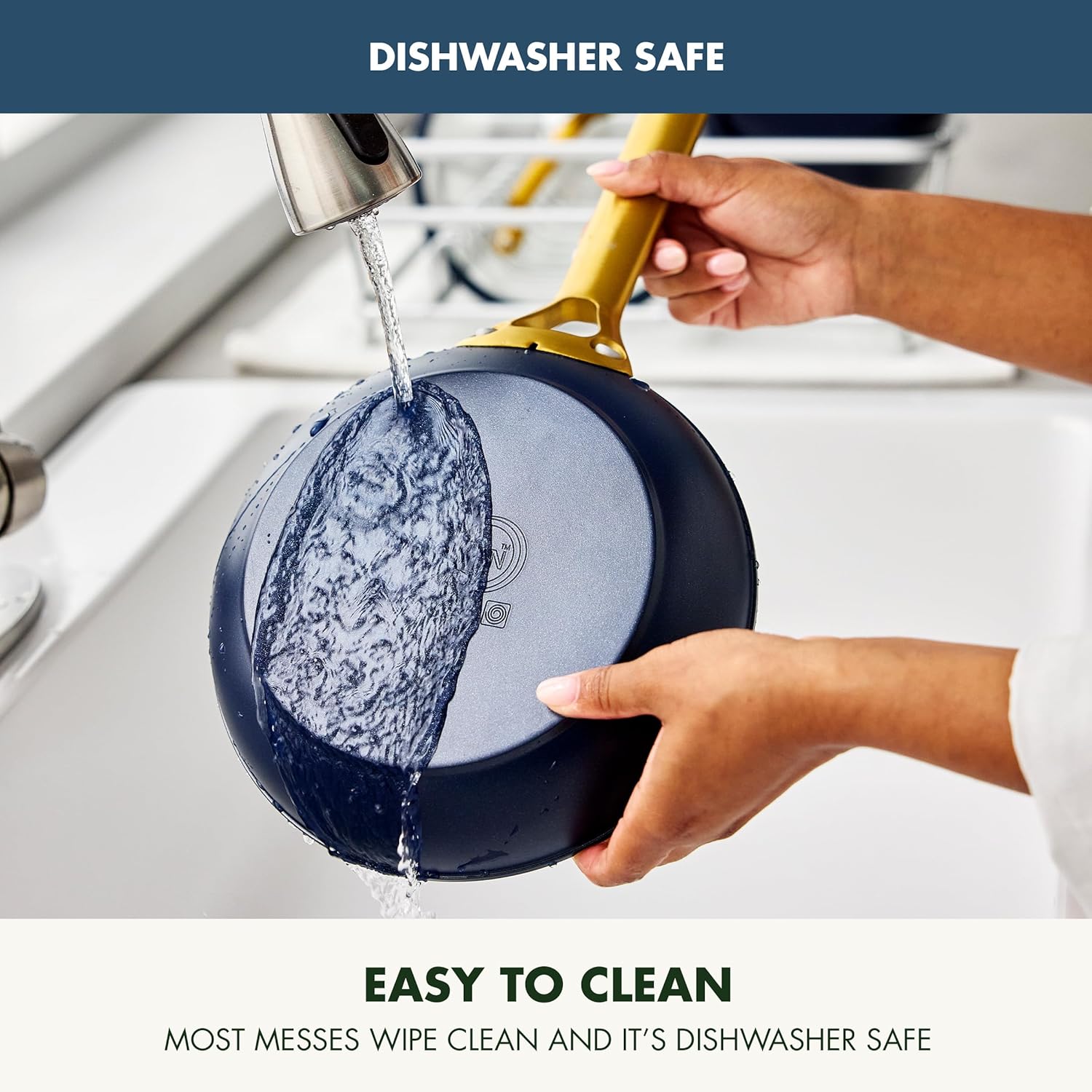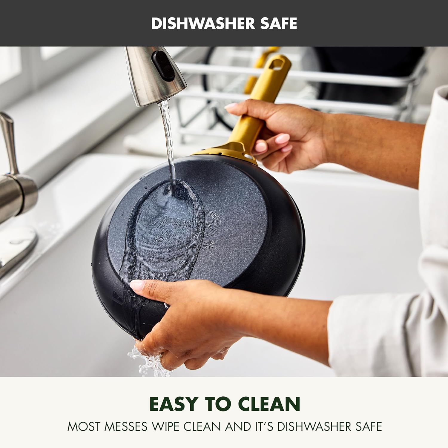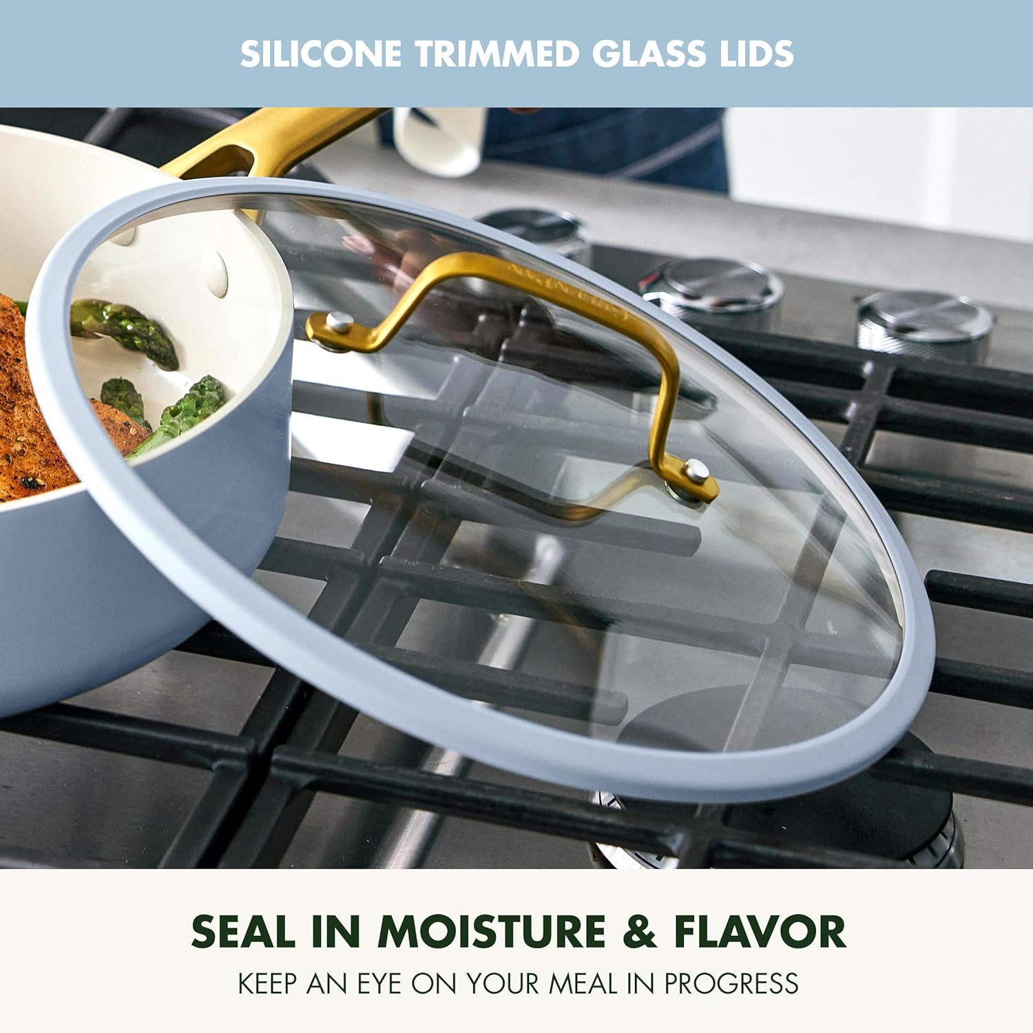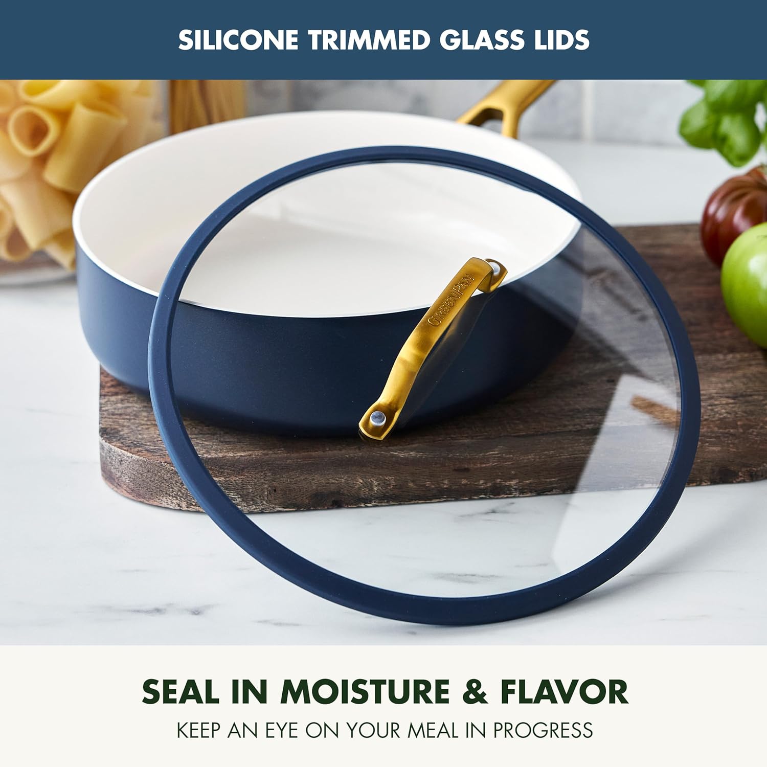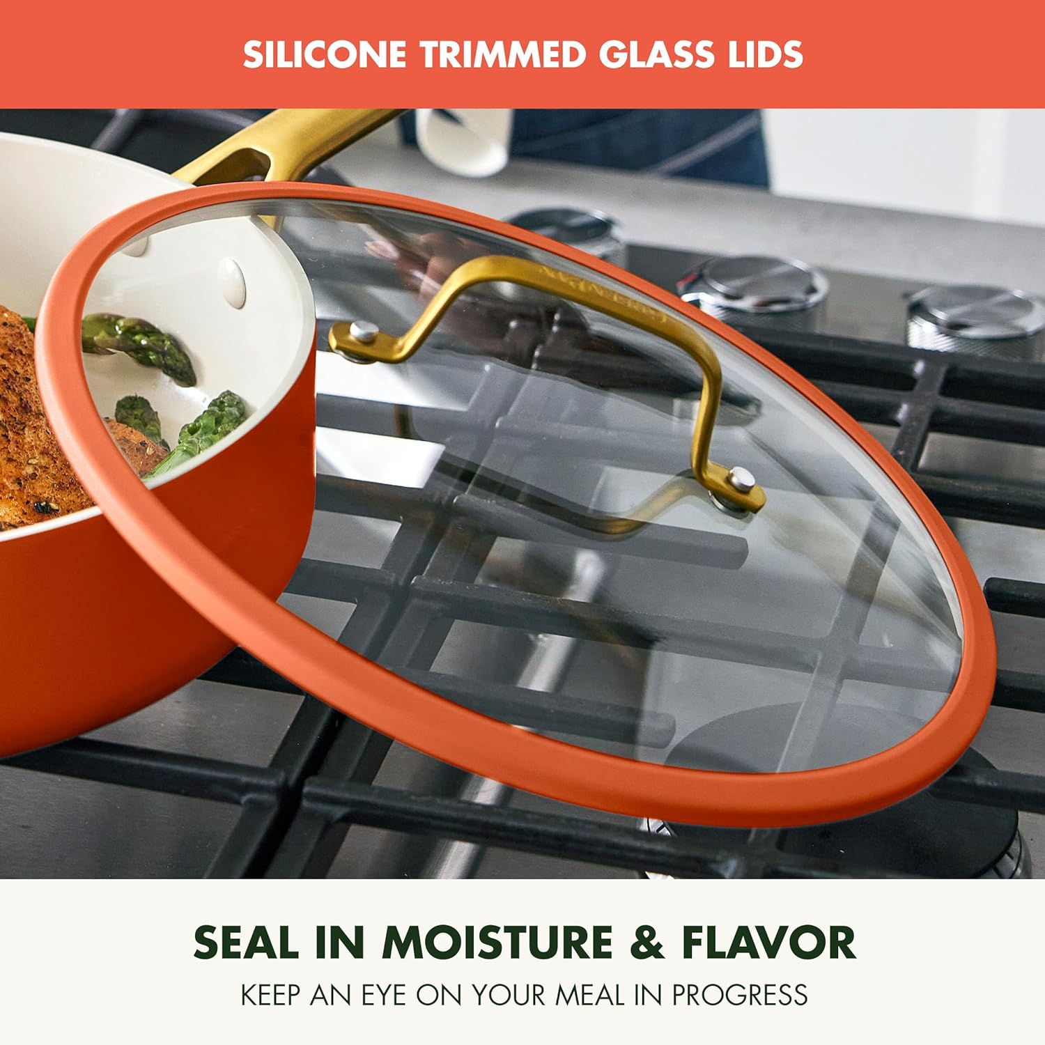 GreenPan GP5 14 Piece Cookware Pots and Pans Set, Hard Anodized Healthy Ceramic Nonstick PFAS-Free, Champagne Handles, Heavy Gauge, Stay-Flat Surface, Induction, Dishwasher and Oven Safe, Cream