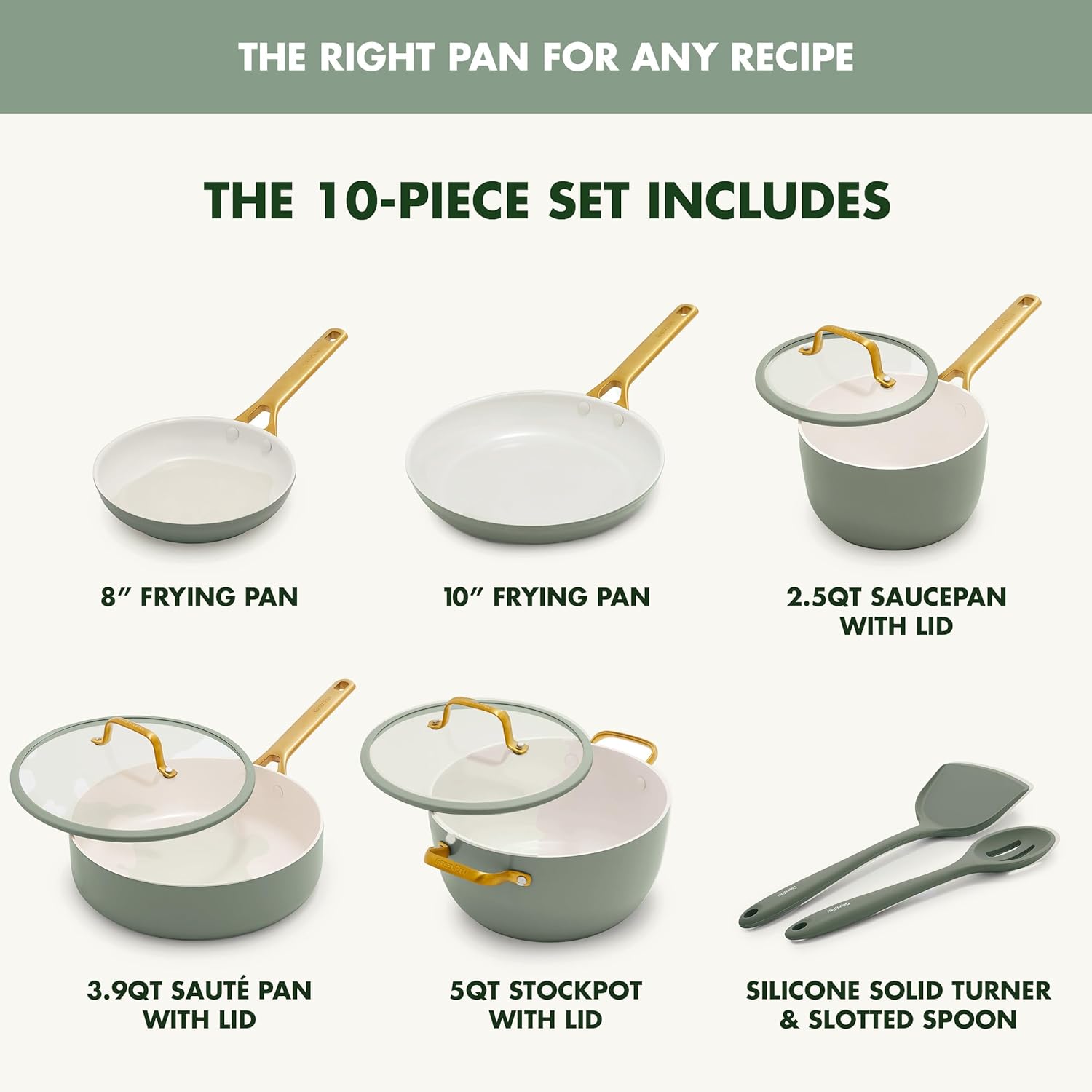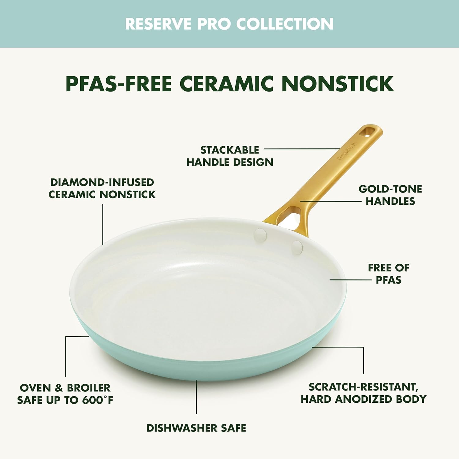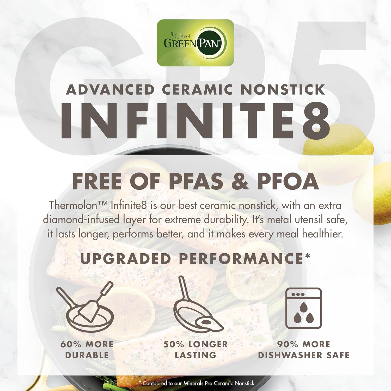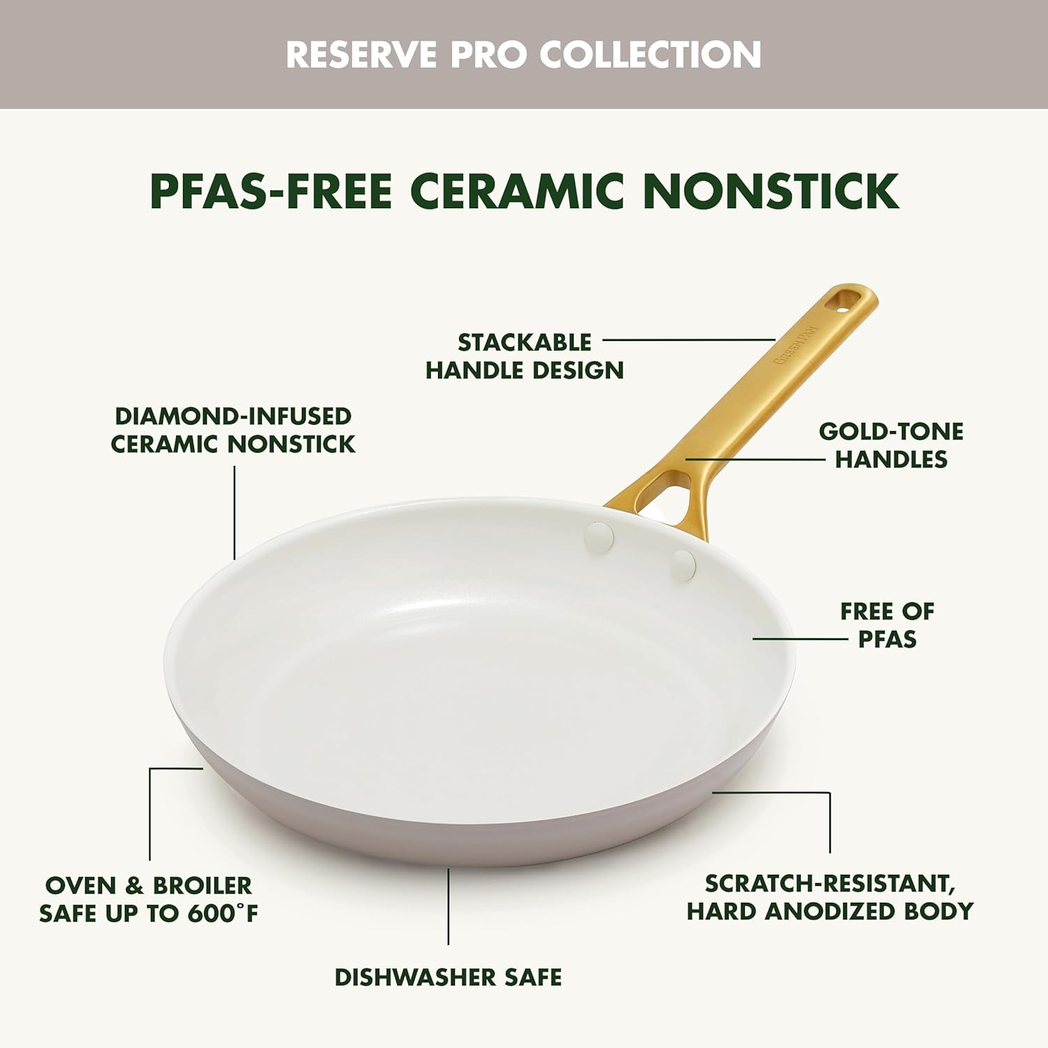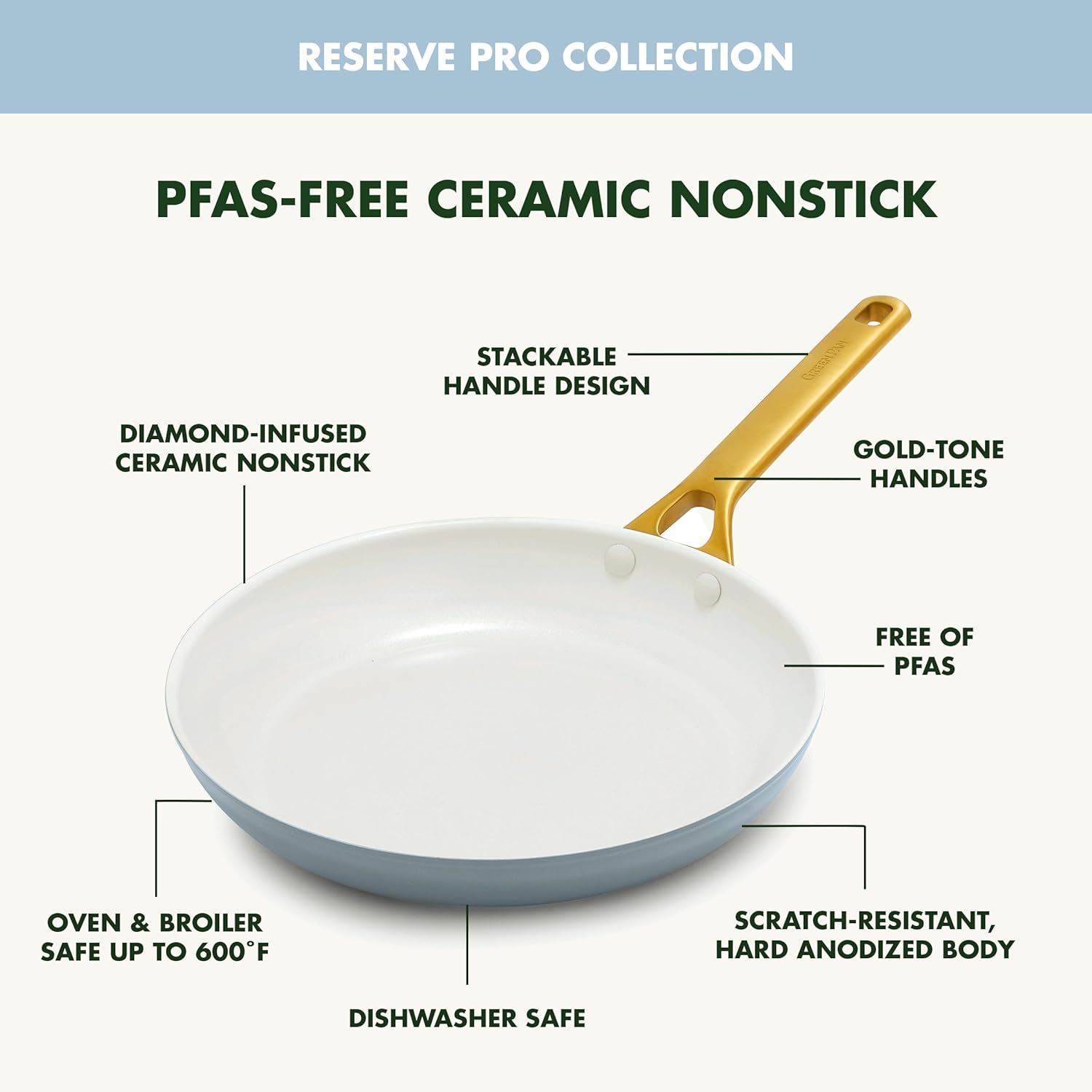 GreenPan Nonstick Reserve Pro 10 Piece Cookware Set, NSF Certified Ceramic, Hard Anodized PFAS-Free Pots & Pans Set with Lids, Stainless Steel Handles, Oven & Dishwasher Safe, Oyster Gray