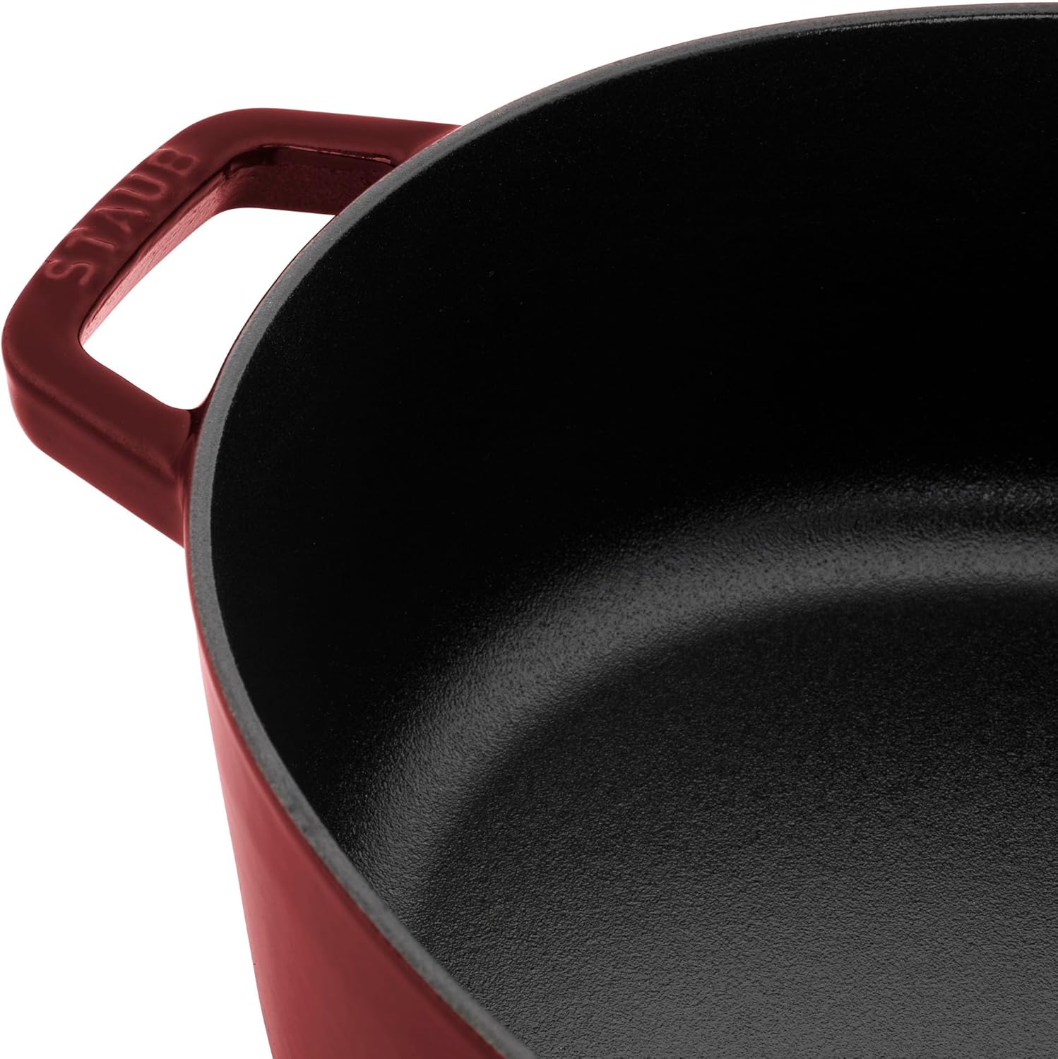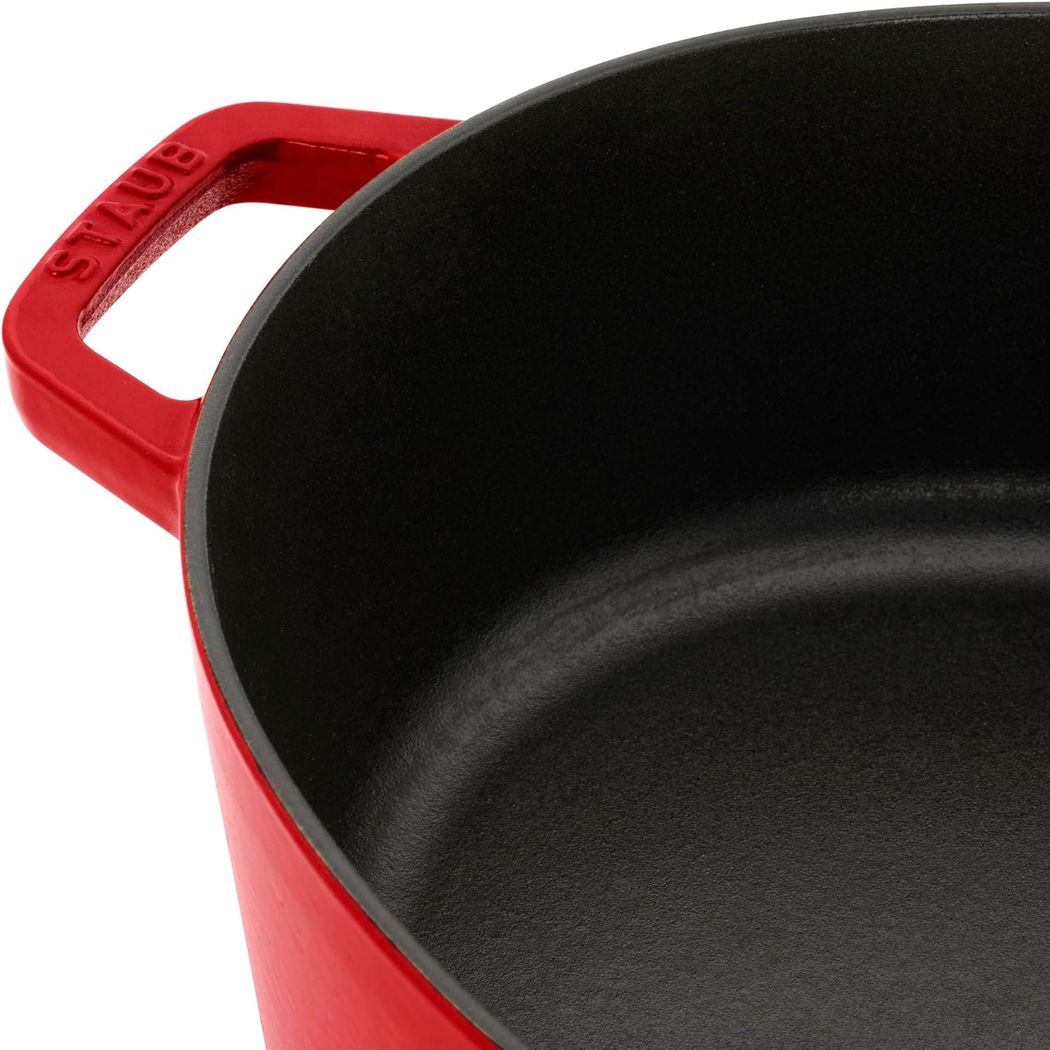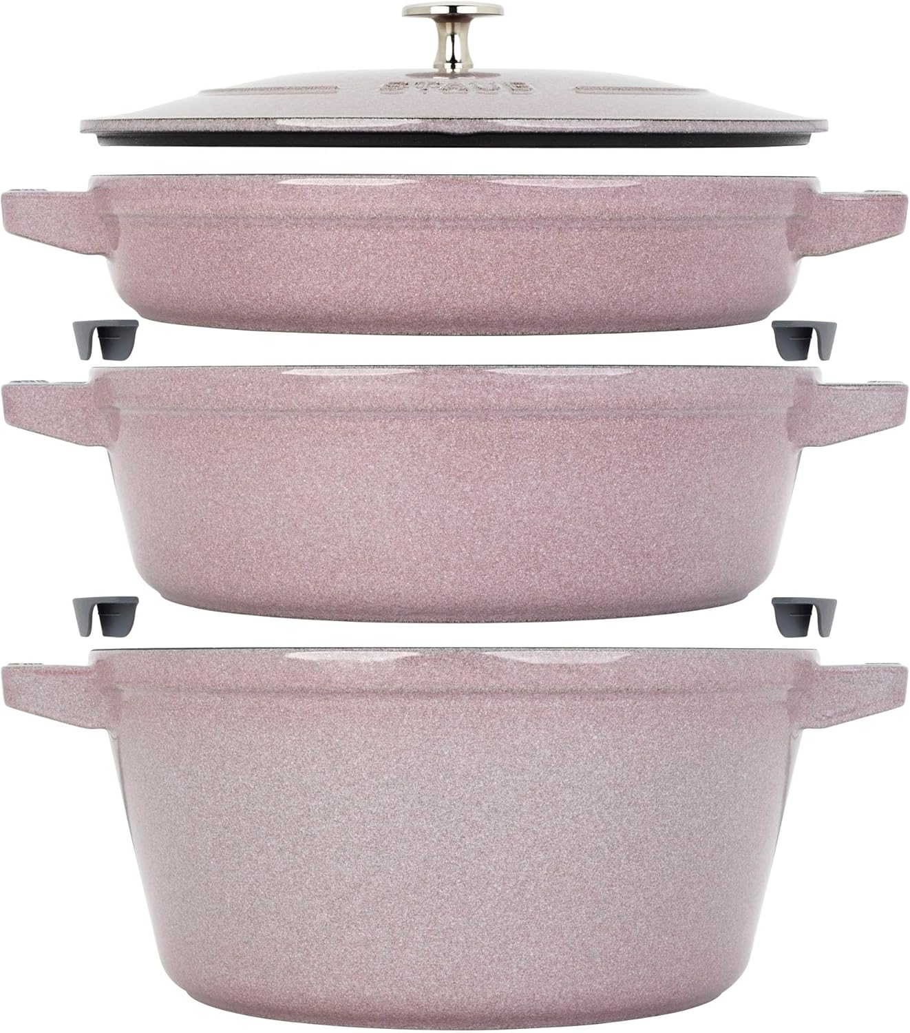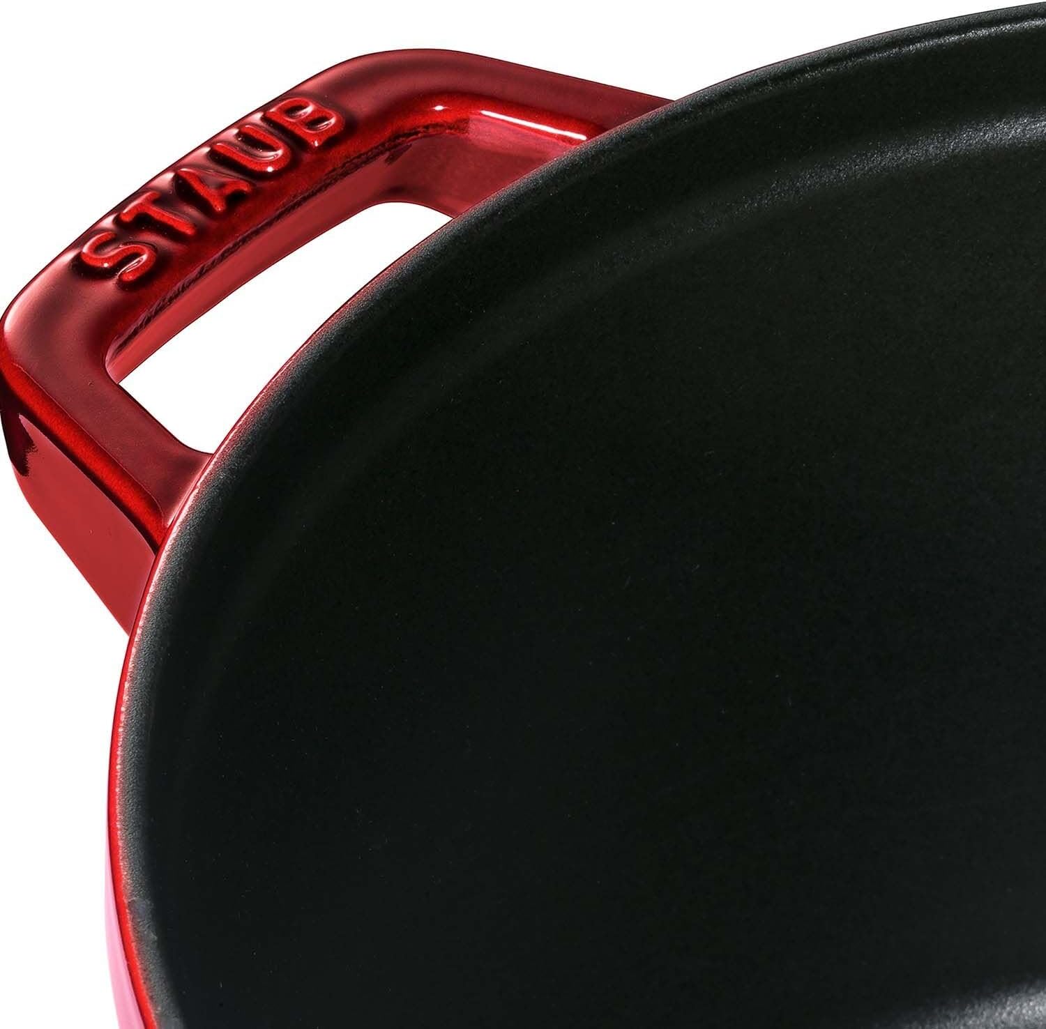 STAUB Cast Iron Set 4-pc, Stackable Space-Saving Cookware Set, Dutch Oven, Skillet, Grill Pan with Universal Lid, Made in France, Cherry