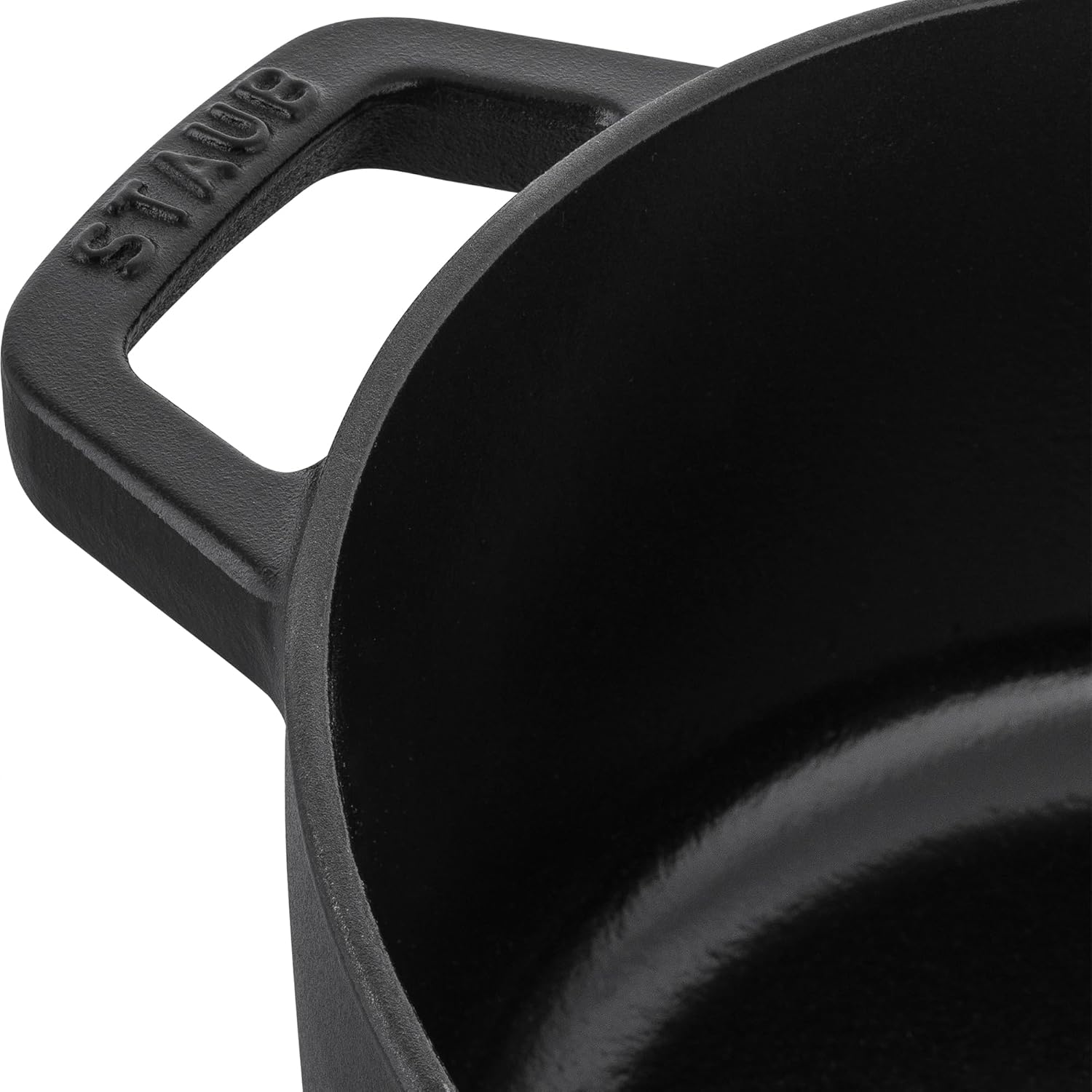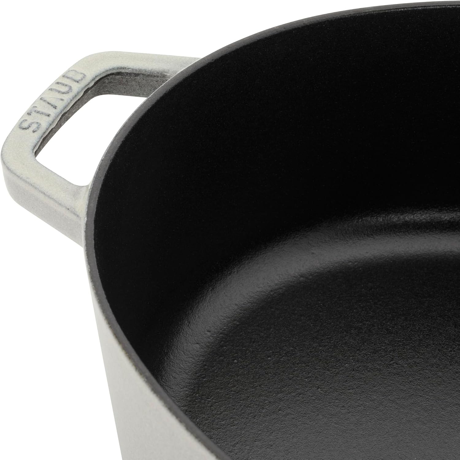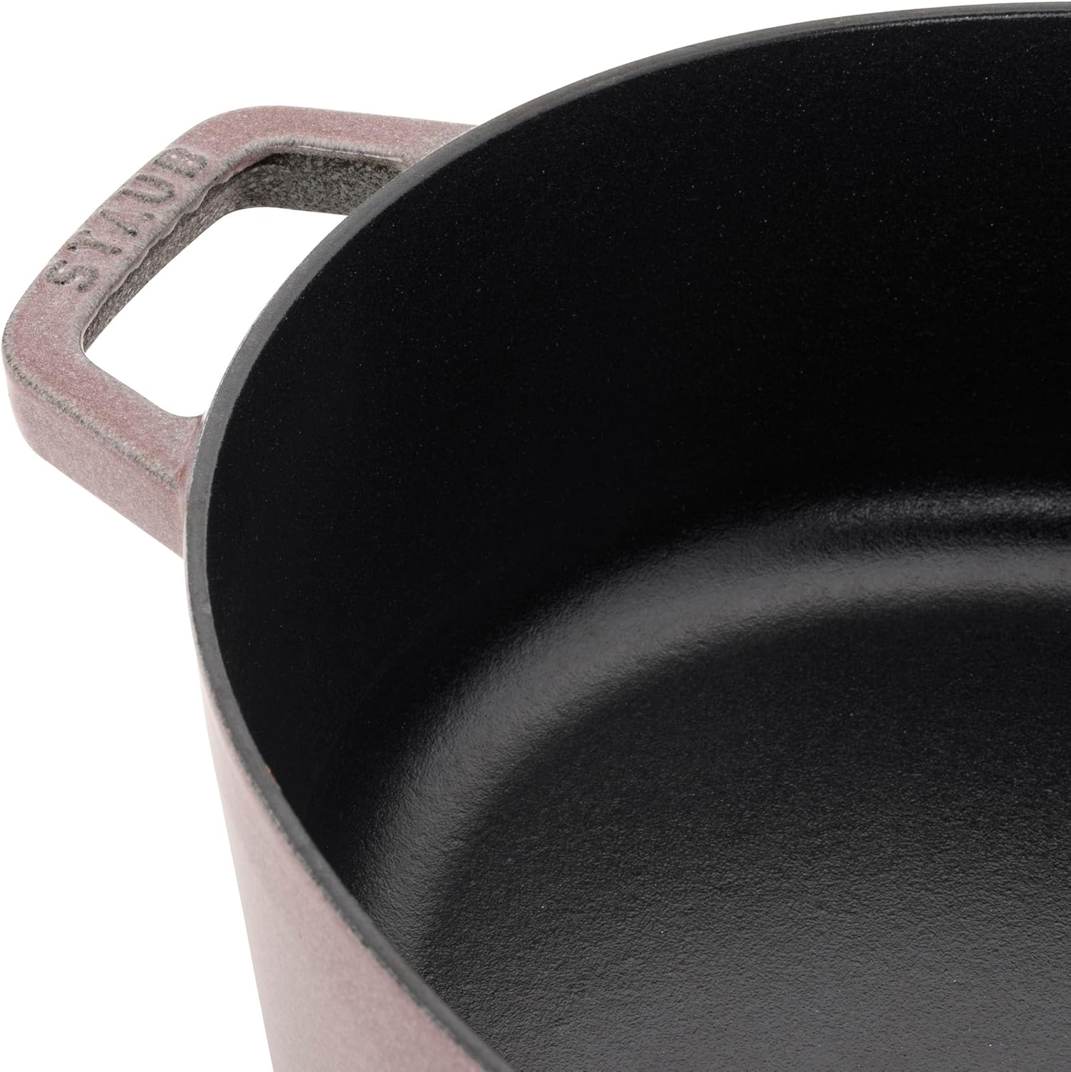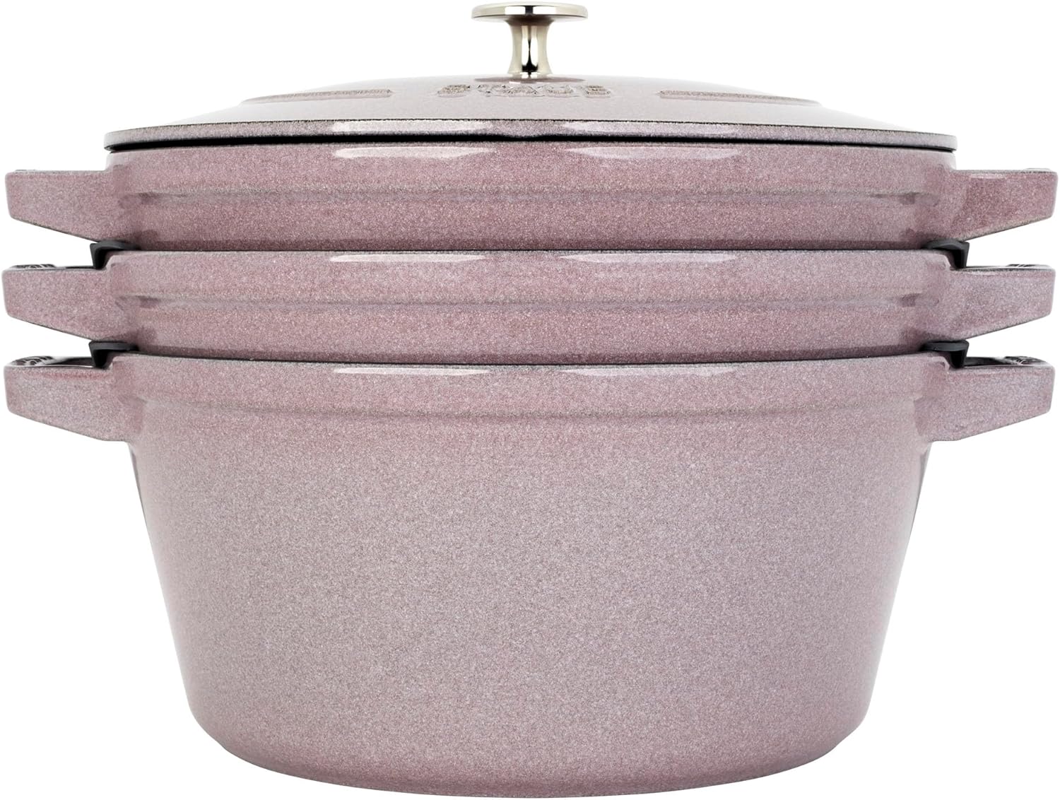 STAUB Cast Iron Set 4-pc, Stackable Space-Saving Cookware Set, Dutch Oven, Skillet, Grill Pan with Universal Lid, Made in France, Cherry