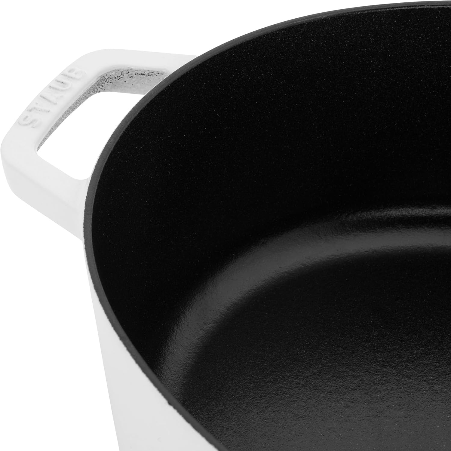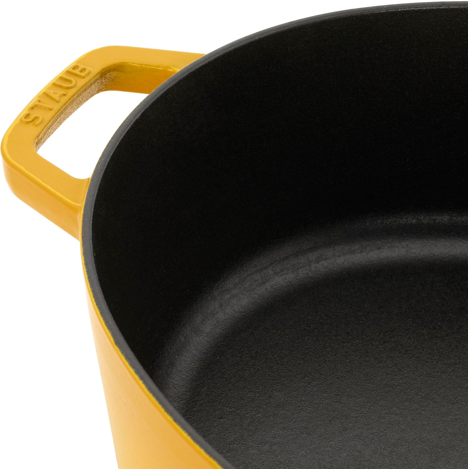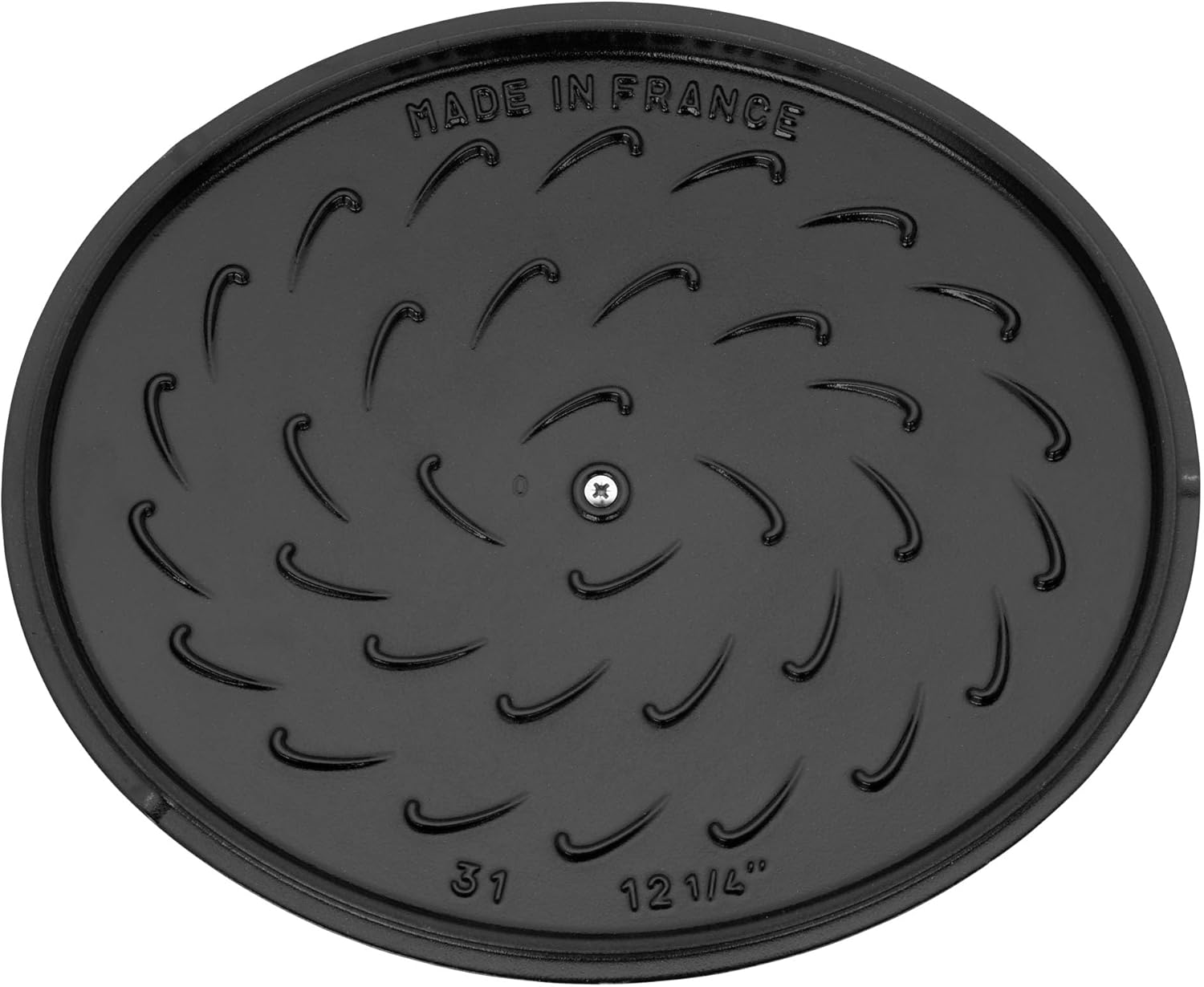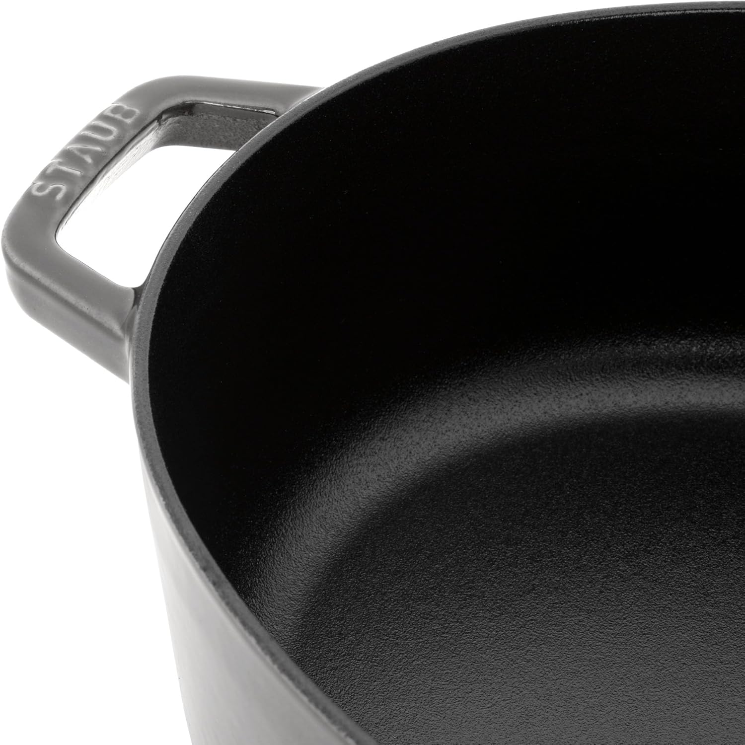 STAUB Cast Iron Set 4-pc, Stackable Space-Saving Cookware Set, Dutch Oven, Skillet, Grill Pan with Universal Lid, Made in France, Cherry