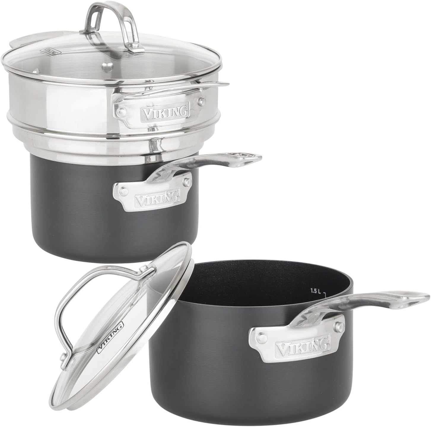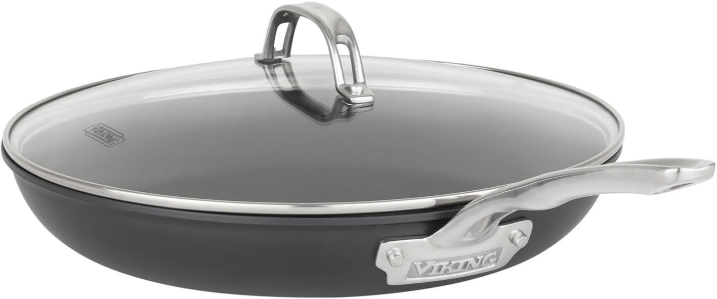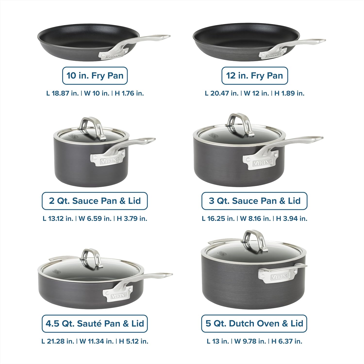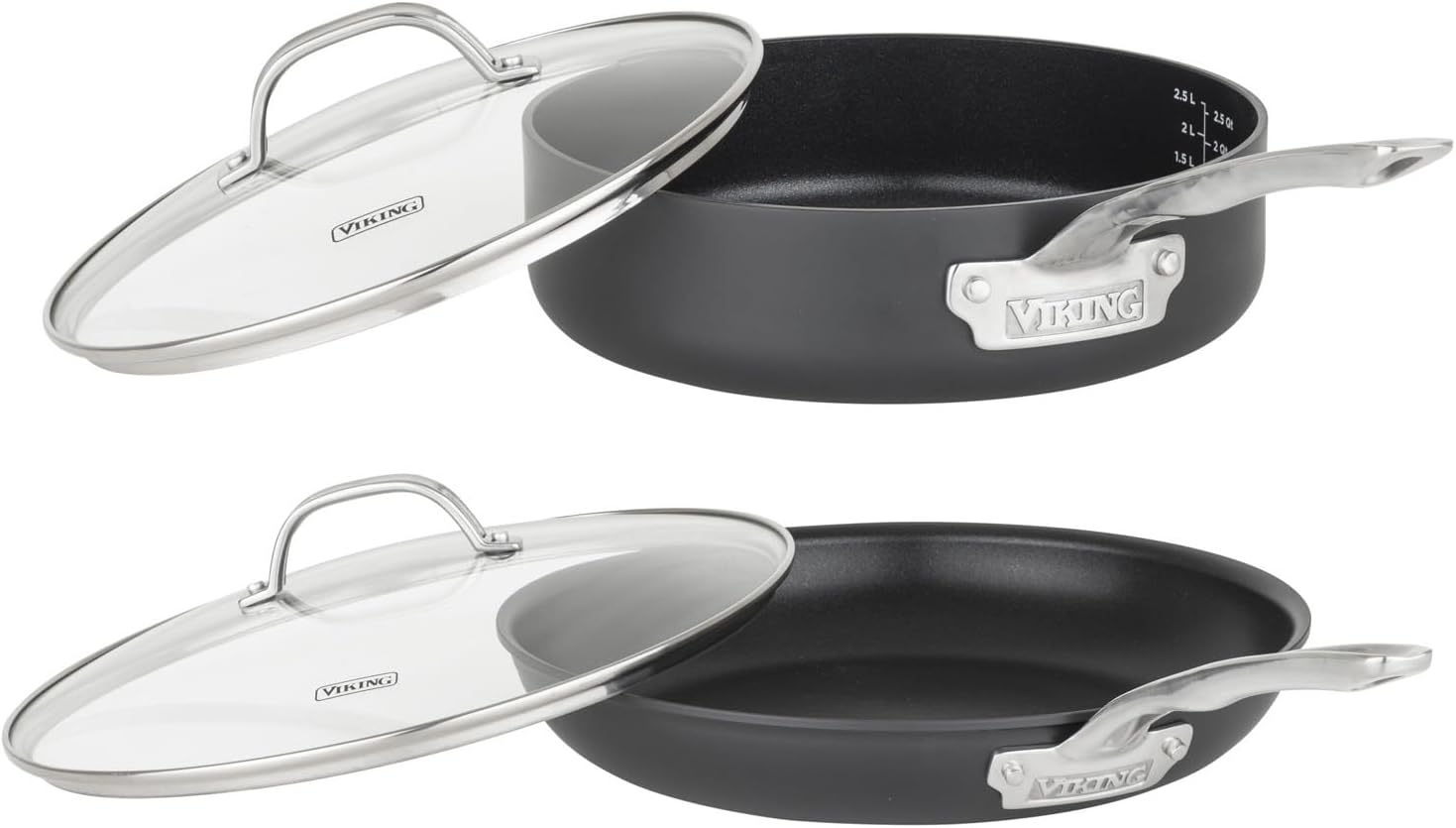 Viking Pots and Pans Set Non Stick, 10 Piece Hard Anodized Kitchen Cookware with Glass Lids, Black