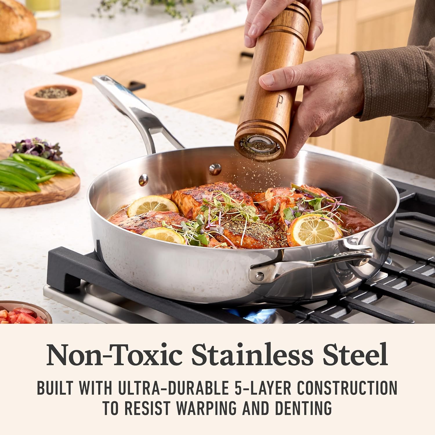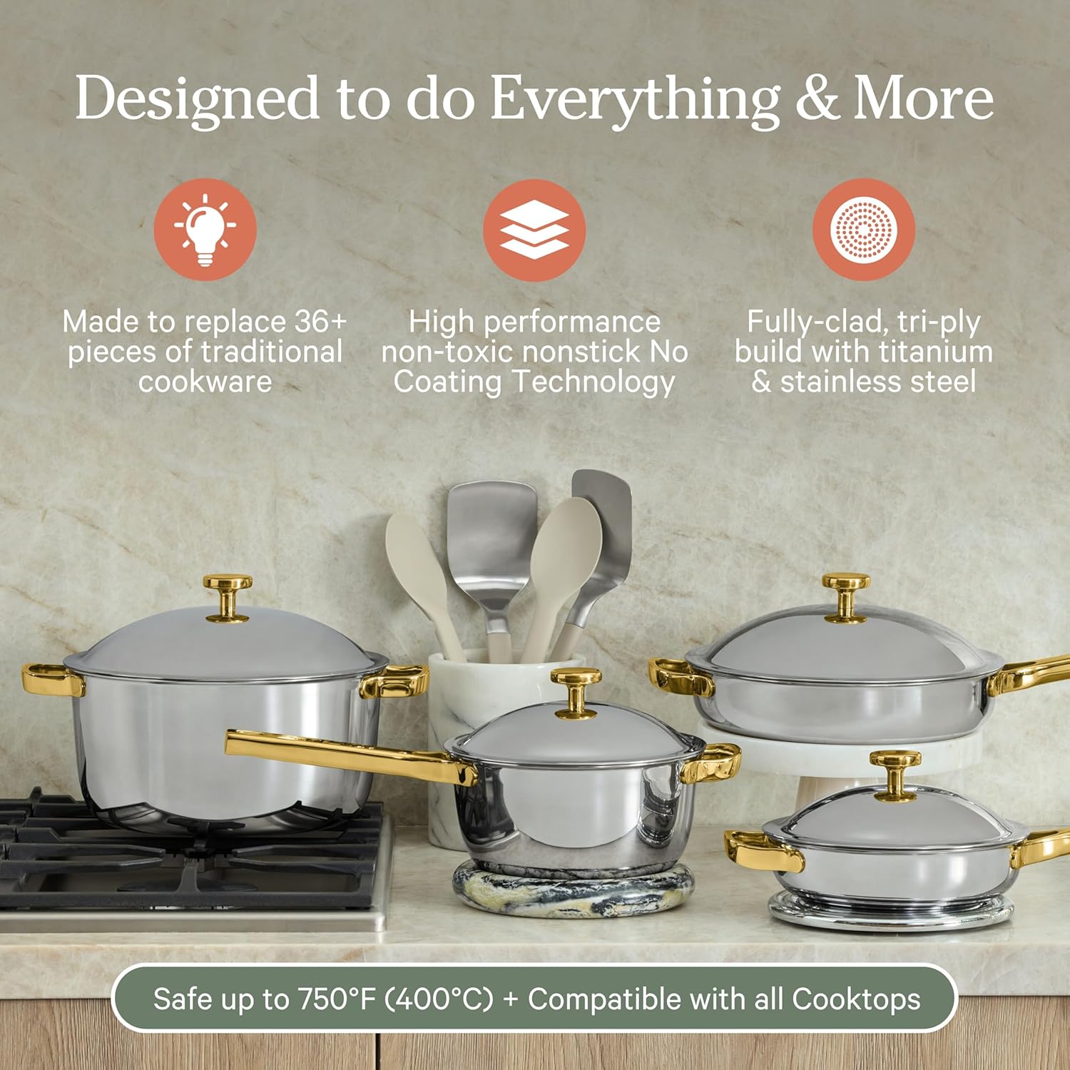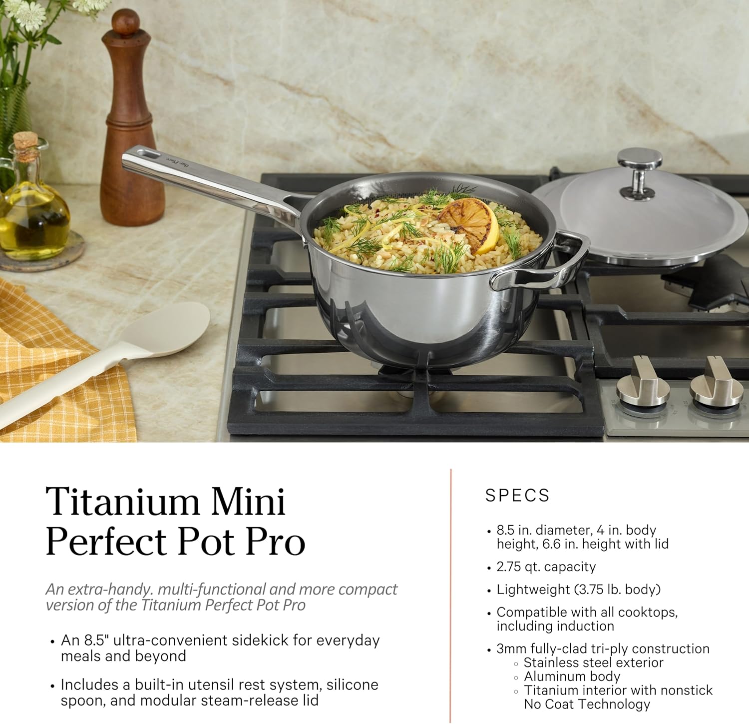 Our Place Titanium Pro Cookware Set (4-Piece) – Always Pan & Perfect Pot | Nonstick No-Coat Technology | Tri-Ply Titanium & Stainless Steel | Safe for Oven, Induction & Cooktops up to 1000°F | Chrome