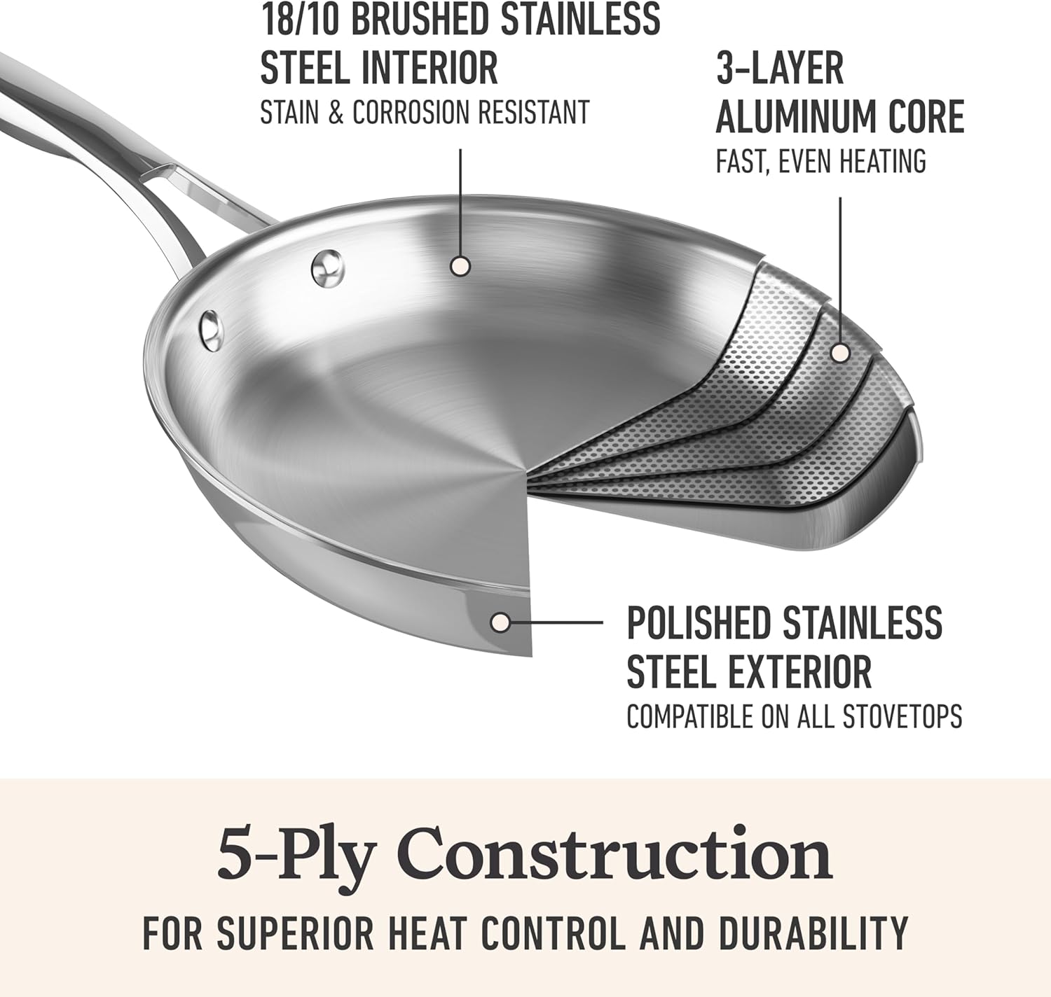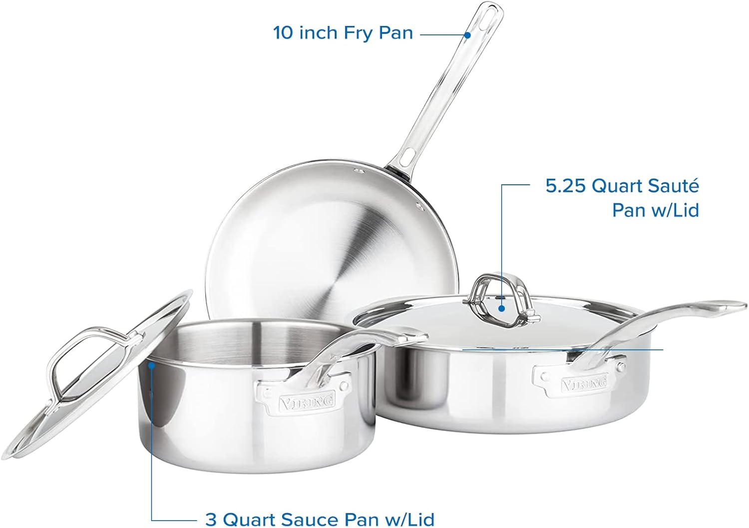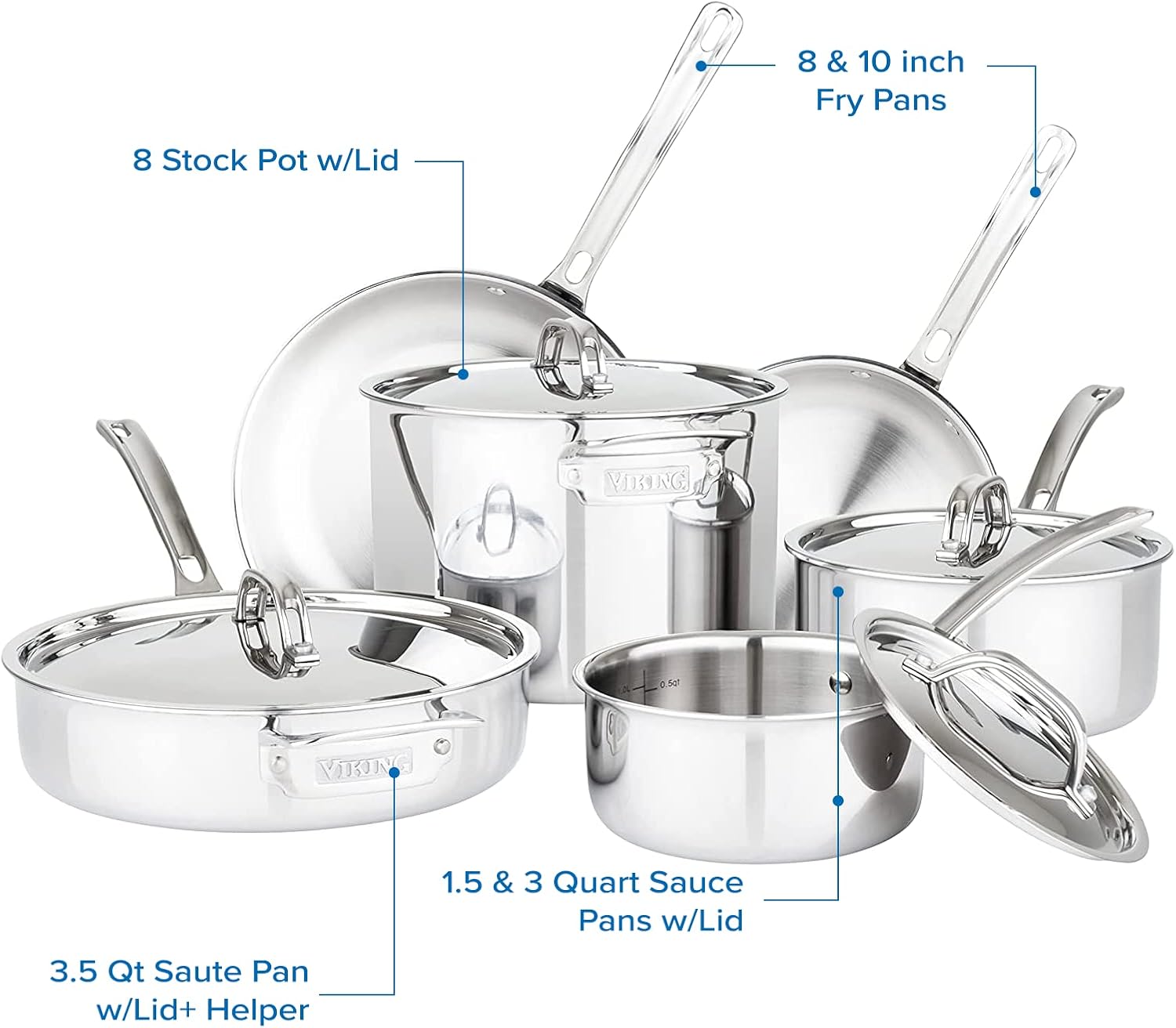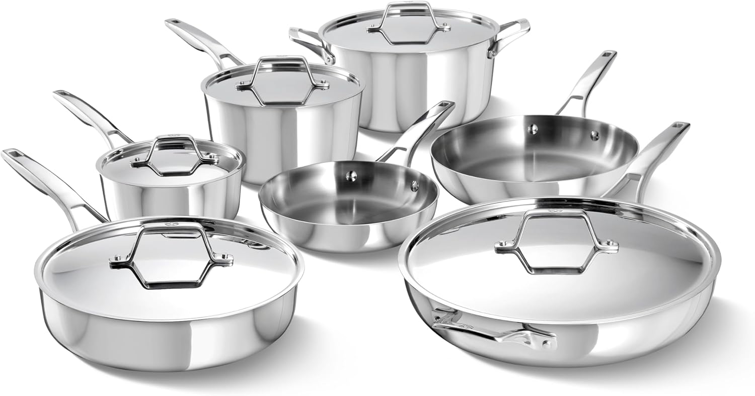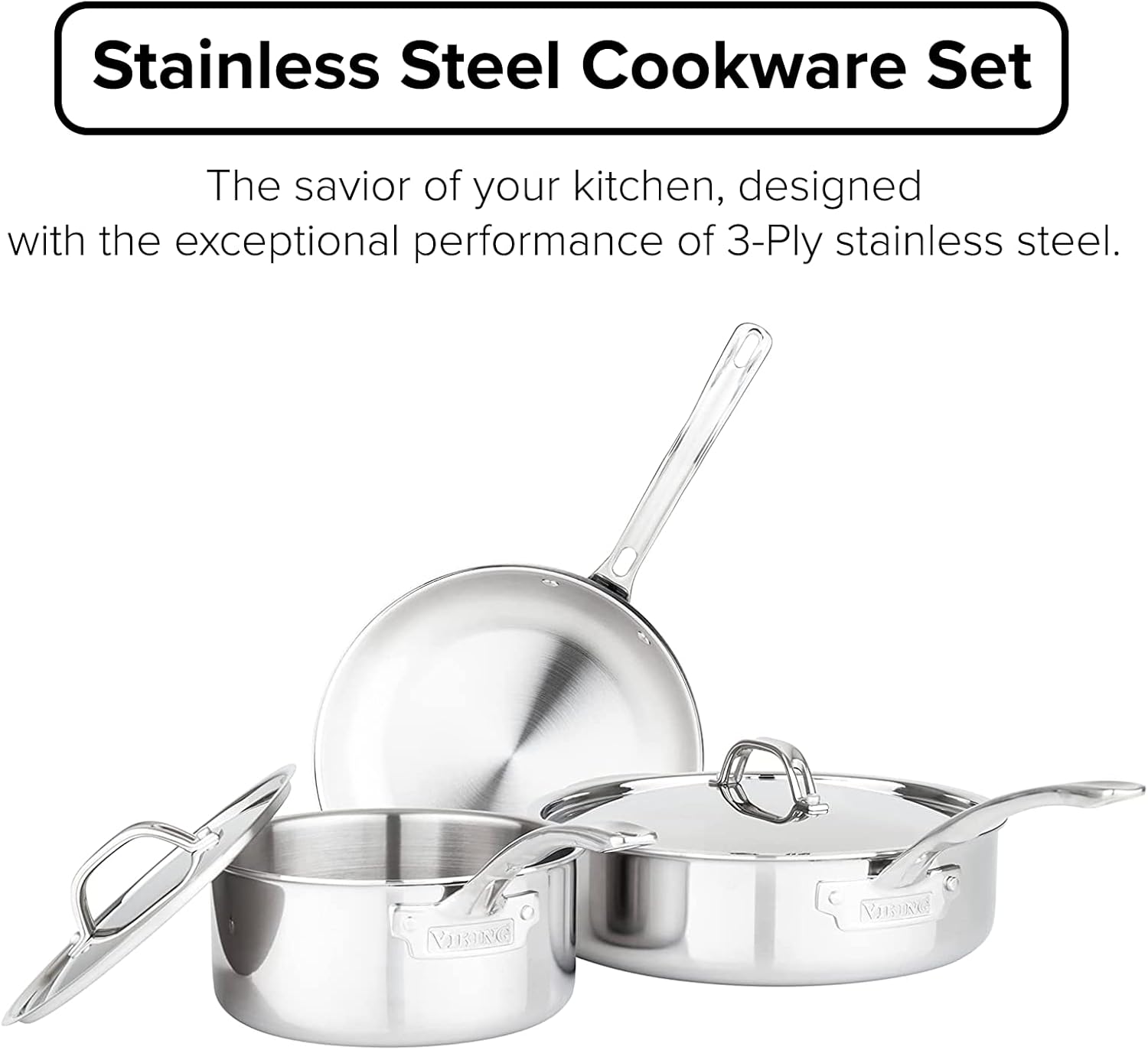 Viking Culinary 3-Ply Stainless Steel Cookware Set with Metal Lids, 10 Piece, Dishwasher, Oven Safe, Works on All Cooktops including Induction,Silver