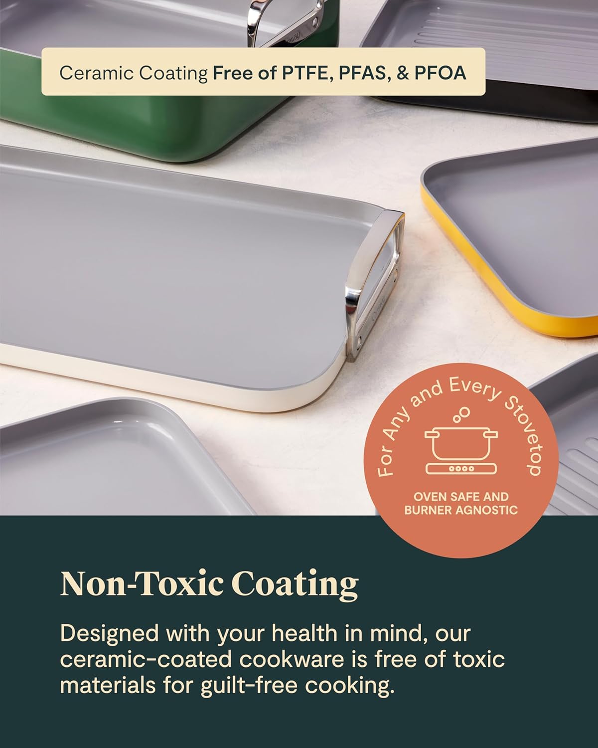 Caraway Square Cookware Set - Square Pans Set - Perfect for Griddling, Toasting, Searing, Roasting, and More - Non-Stick Ceramic Coated Pans - Non Toxic, PTFE & PFOA Free - White