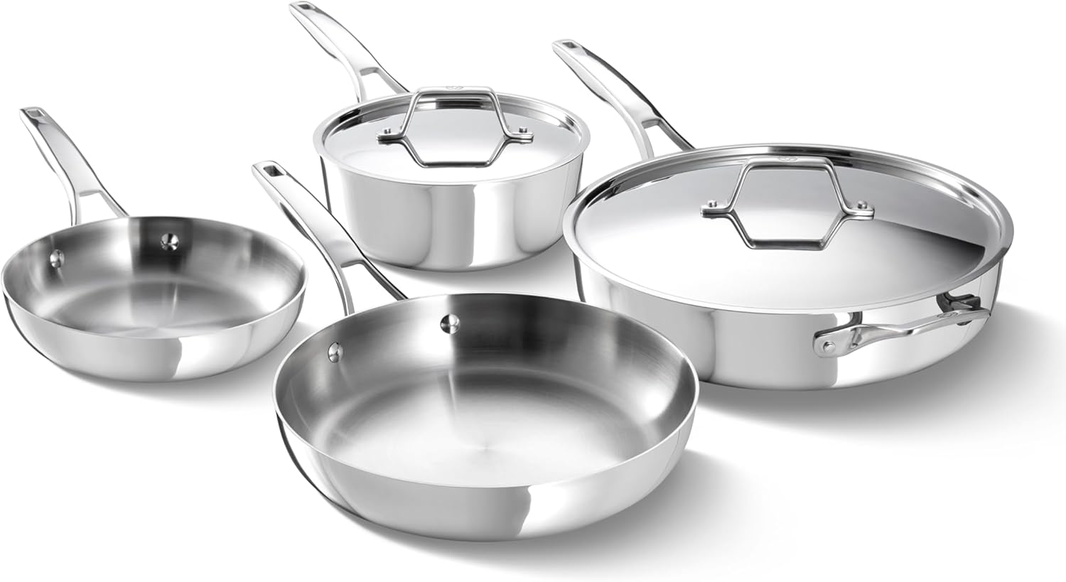Made In Cookware - 7-Piece Ceramic Non Stick Pot and Pan Set (Stainless Handle) - 5-Ply Stainless Clad - Professional Cookware - Crafted in Italy - Induction Compatible
