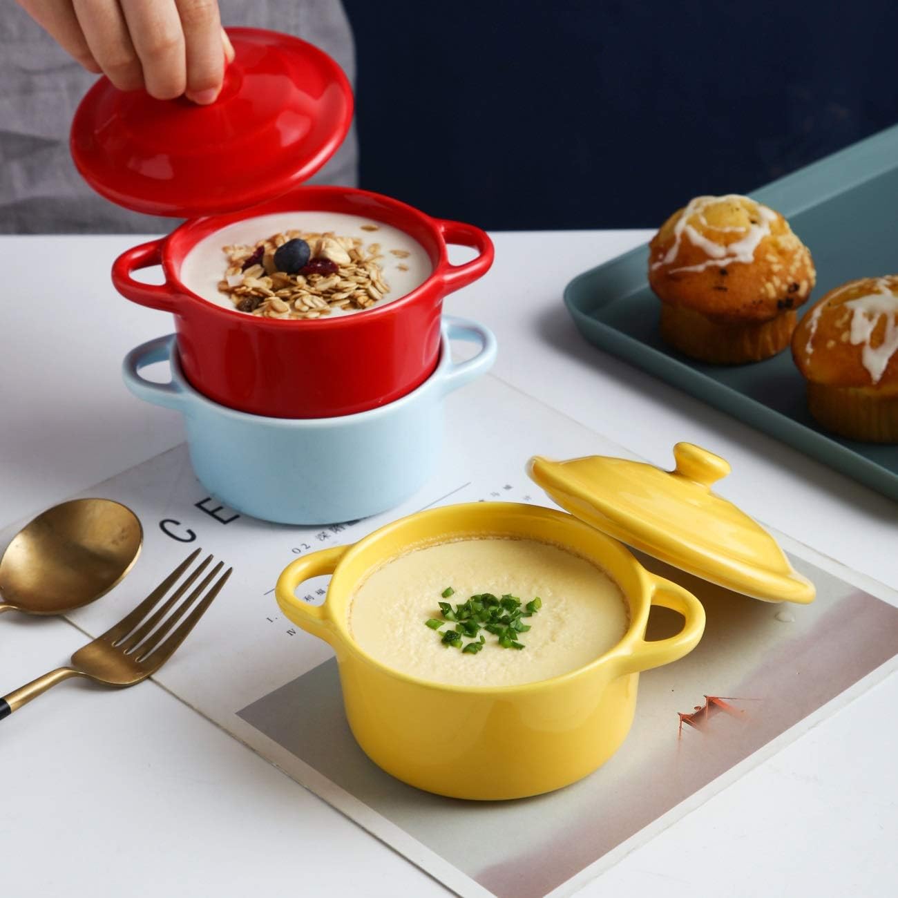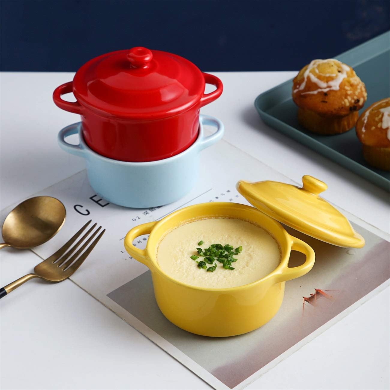 Small Ceramic Casserole Soup Pot with Handle Ceramic Cooking Pot Milk Egg Stew Pan Kitchen Cookware Pots Cooker Colourful