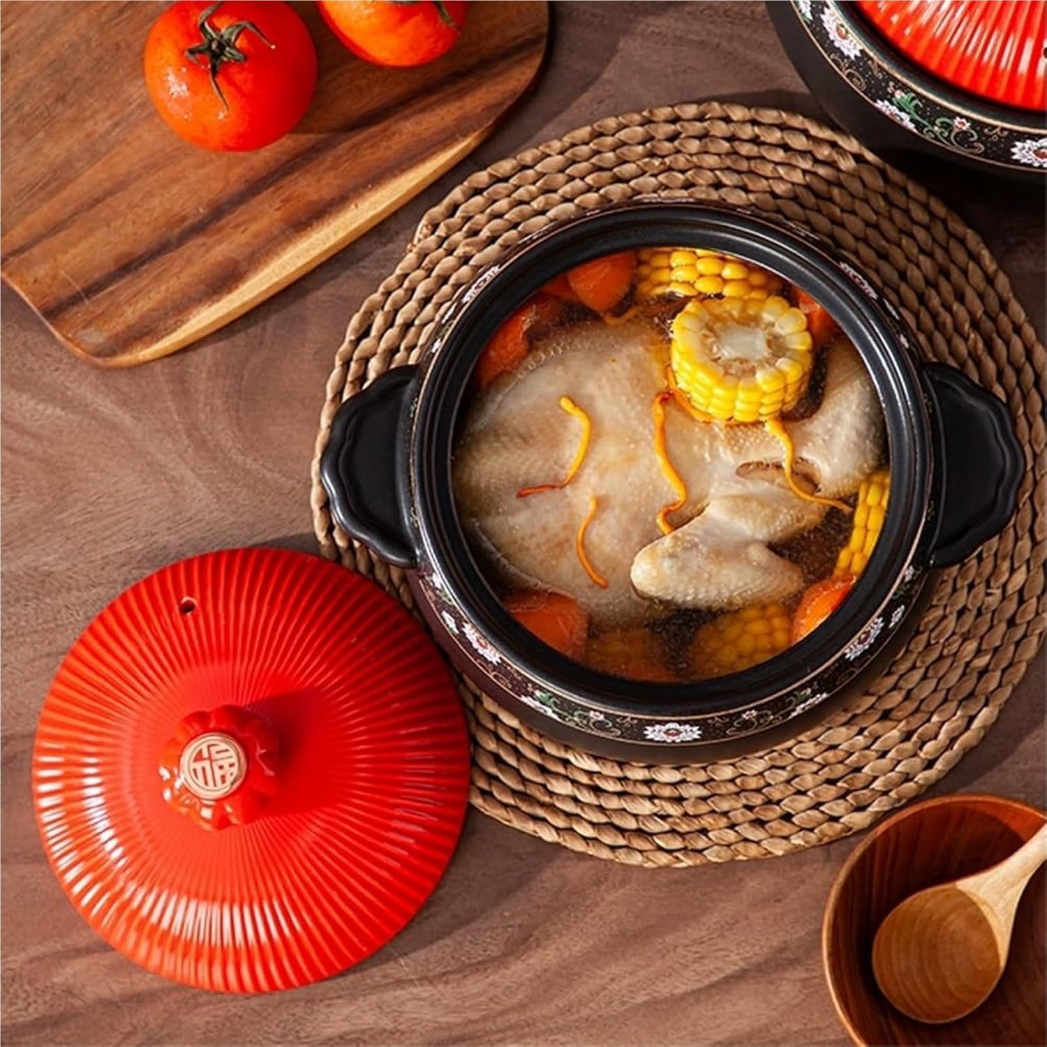 Ceramic Clay Pot for Cooking with Lid Chinese Stew Hot Pot Earthenware Pot for Cooking Rice Noodle and Porridge Milk Soup Casserole Nonstick Cookware Heat-Resistant Stockpot(5L)