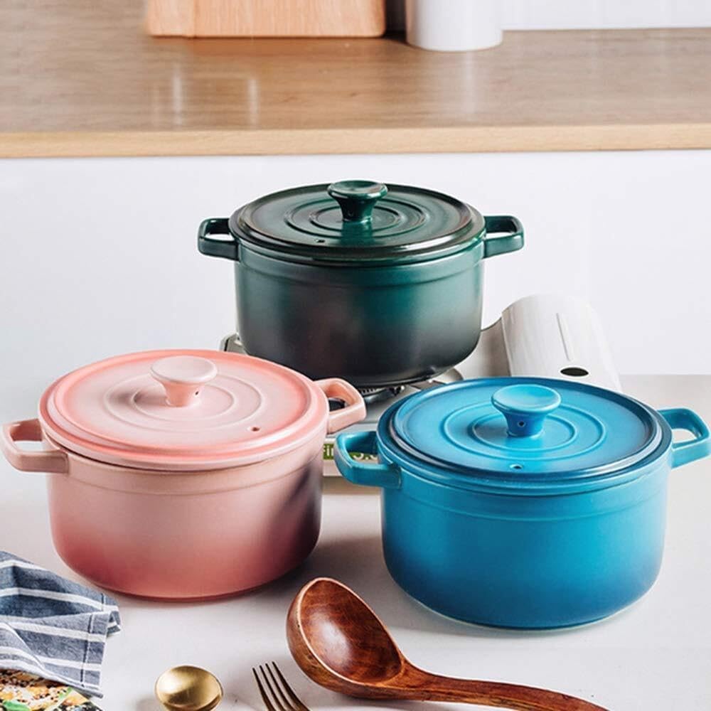 Green Ceramic Casserole Pot with Lid, Heat-Resistant Clay Dutch Oven for Stews, Soups Slow Cooking, Oven Microwave Safe(0.87L)