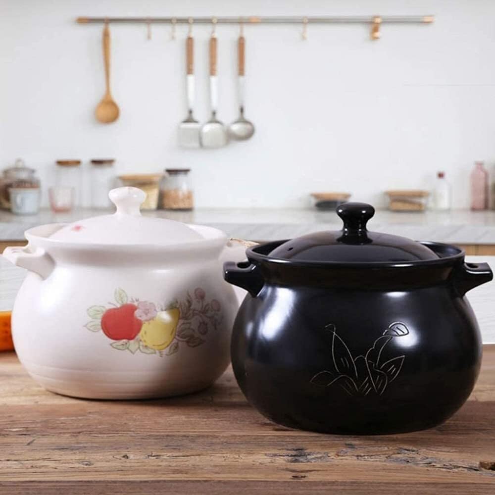Black Casserole Pot, Heat-Resistant Mineral Clay Stew & Soup Pot, Suitable for Gas Stoves & Ovens, 1.5L-4L Capacity, Non-Induction Compatible