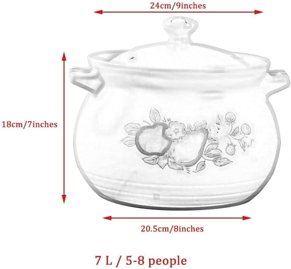 7L Ceramic Casserole Stew Pot, Large-Capacity White Ceramic Soup & Porridge Pot with Vent Holes, for 5-8 People(White,6L)
