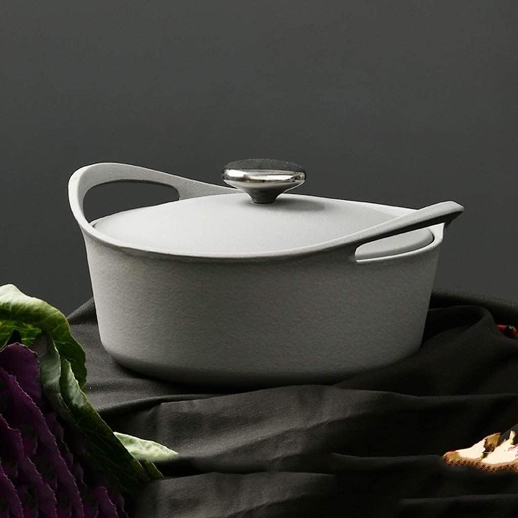 Kitchen Pre Seasoned Cast Iron Dutch Oven with Handle and Cover Casserole Dish(Gray)