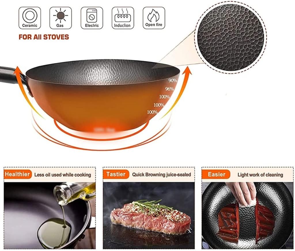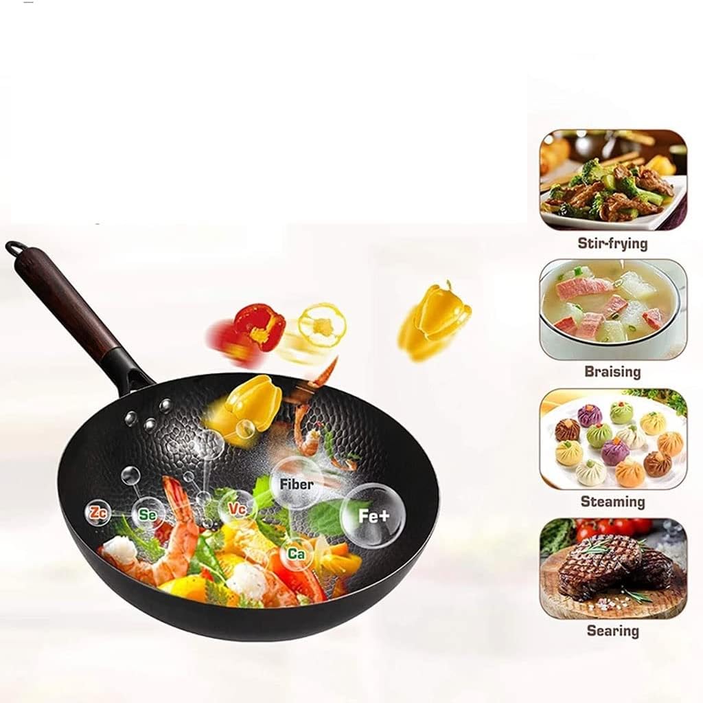 Iron Wok Traditional Handmade Non-stick Pan Non-coating Gas Cooker Cookware