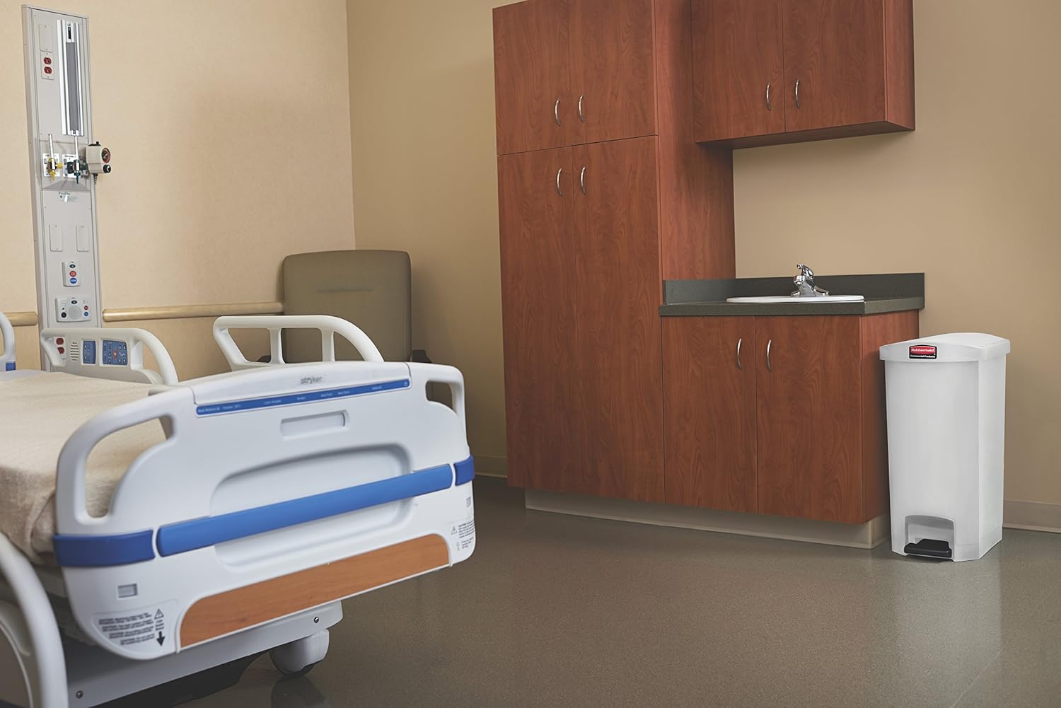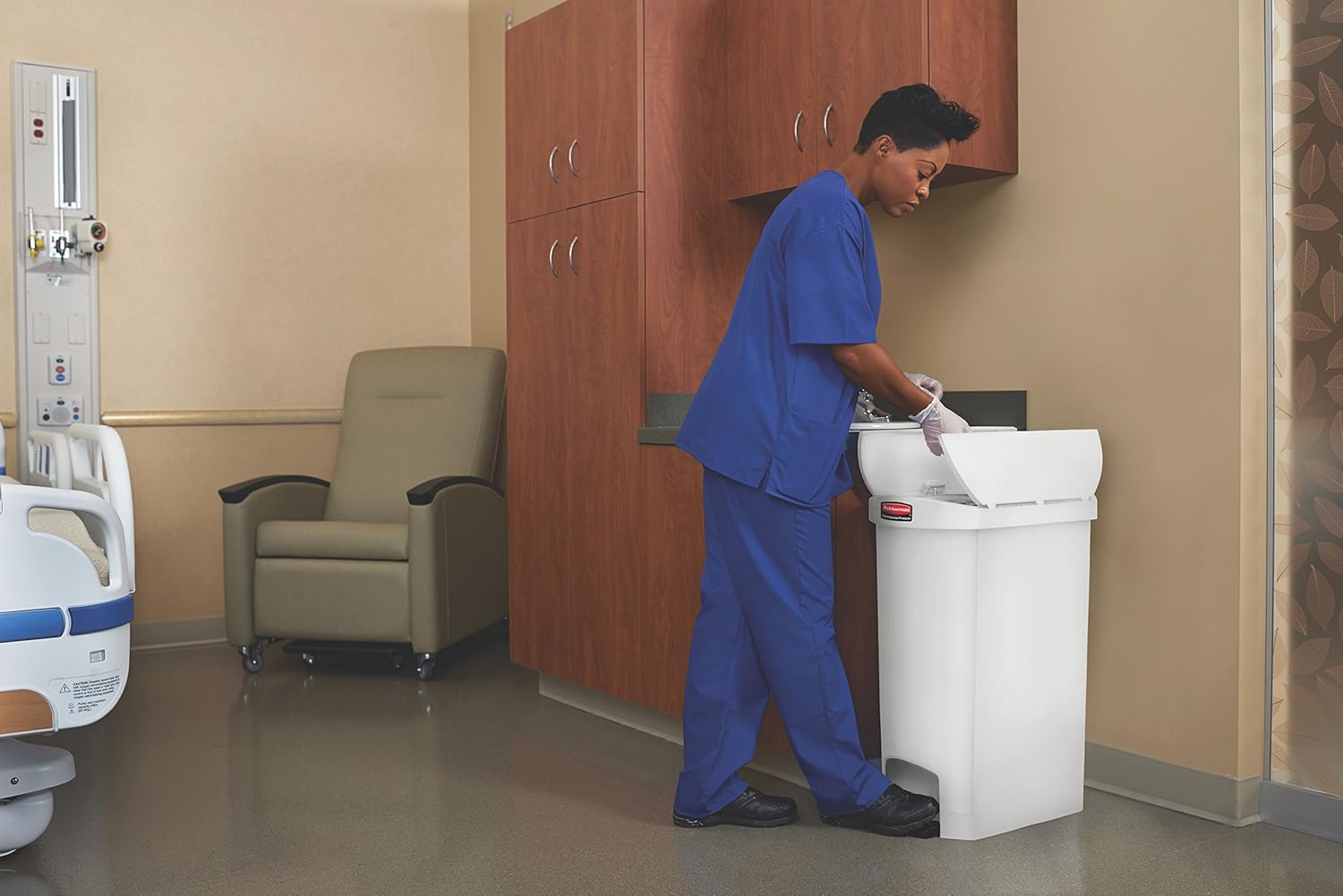 Rubbermaid Commercial Products Step-On Trash Can with Lid 12-Gallon White Hands-Free Sanitary Use Garbage Can for Medical Waste in Hospitals/Lab/Emergency/Patient Rooms