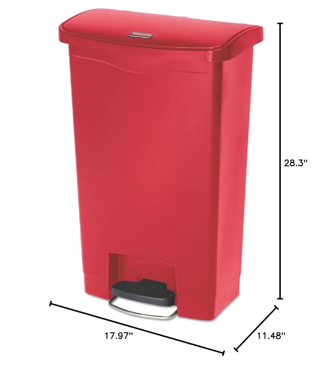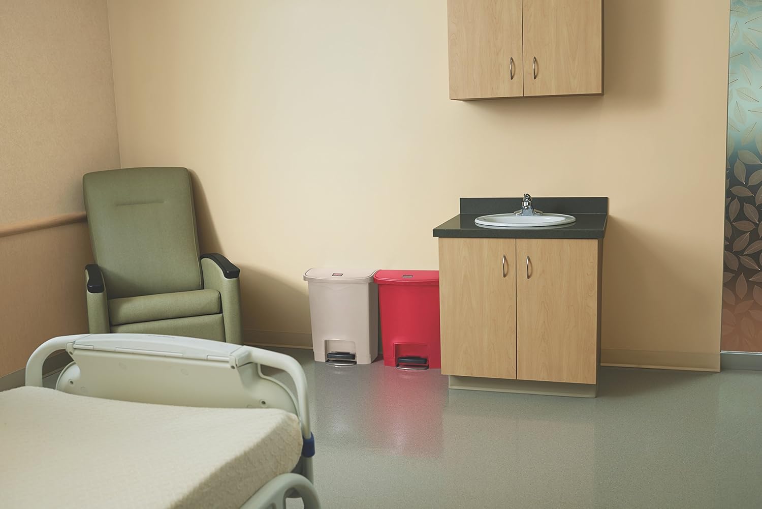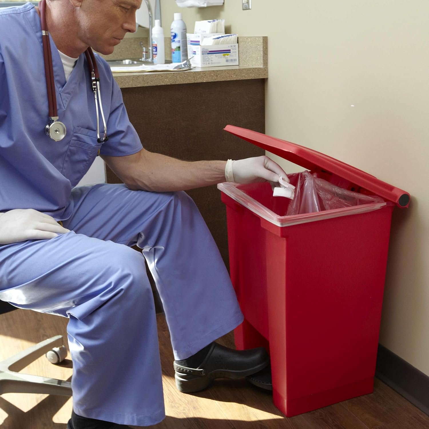 Rubbermaid Commercial Products Streamline Slim Step-On Plastic Trash Can, 13 Gallon, Red, Hands-Free Garbage Can for Medical Waste in Hospitals/Lab/Emergency/Patient Rooms