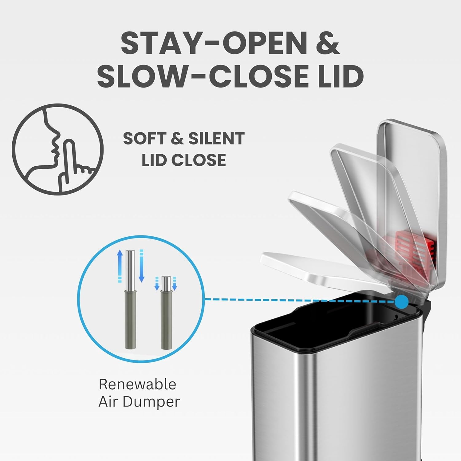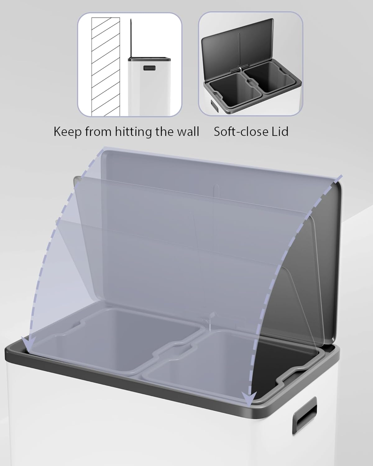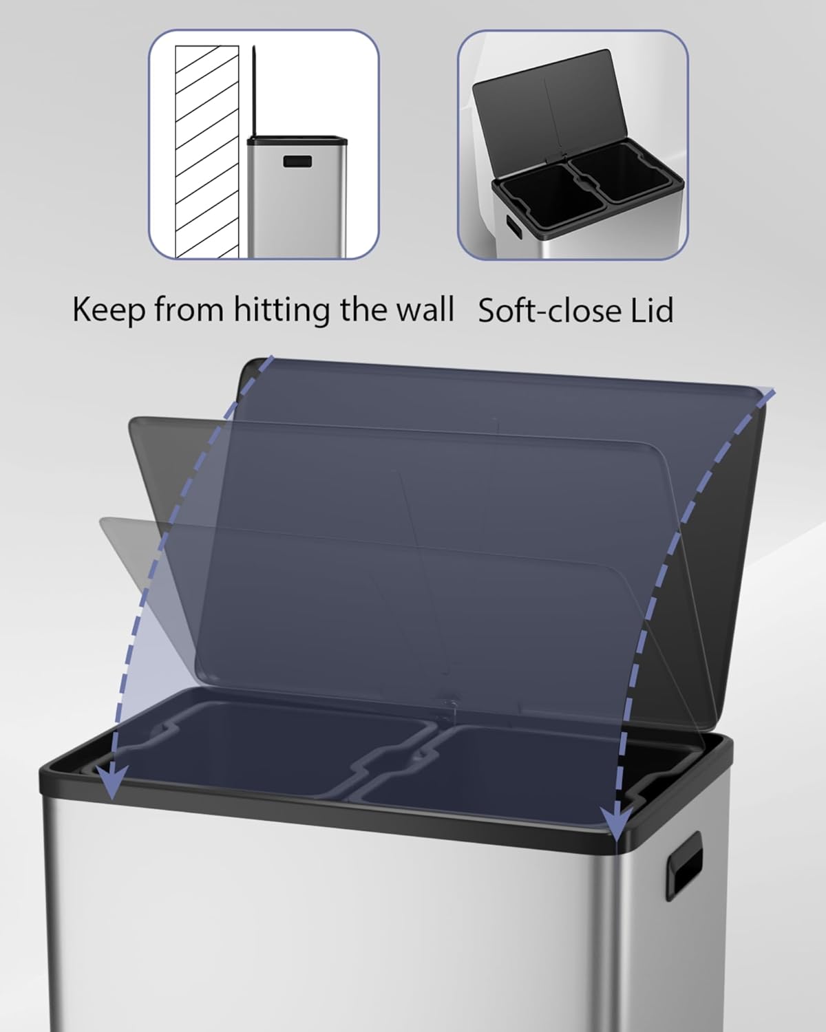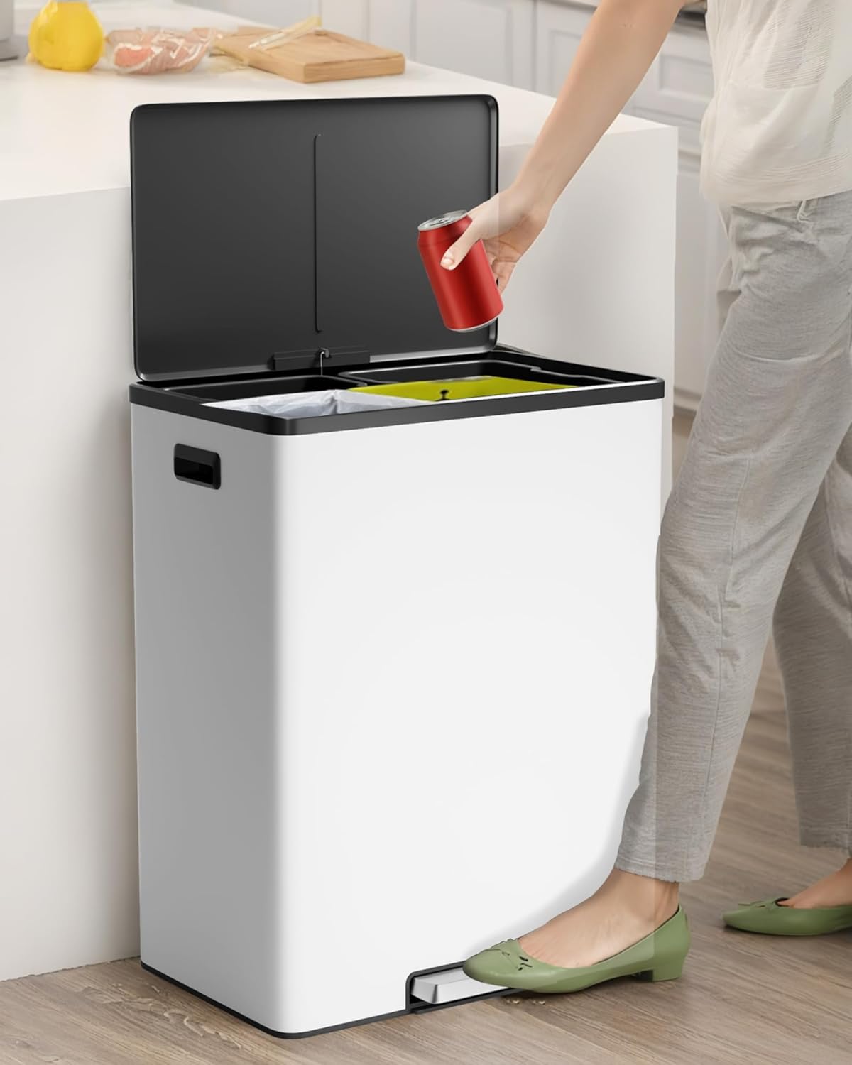 Garvee Dual Trash Can for Recycling and Trash, Stainless Steel Kitchen Trash Can with Lid and Foot Pedal, Double Compartment Garbage Can, with Recycling Bin