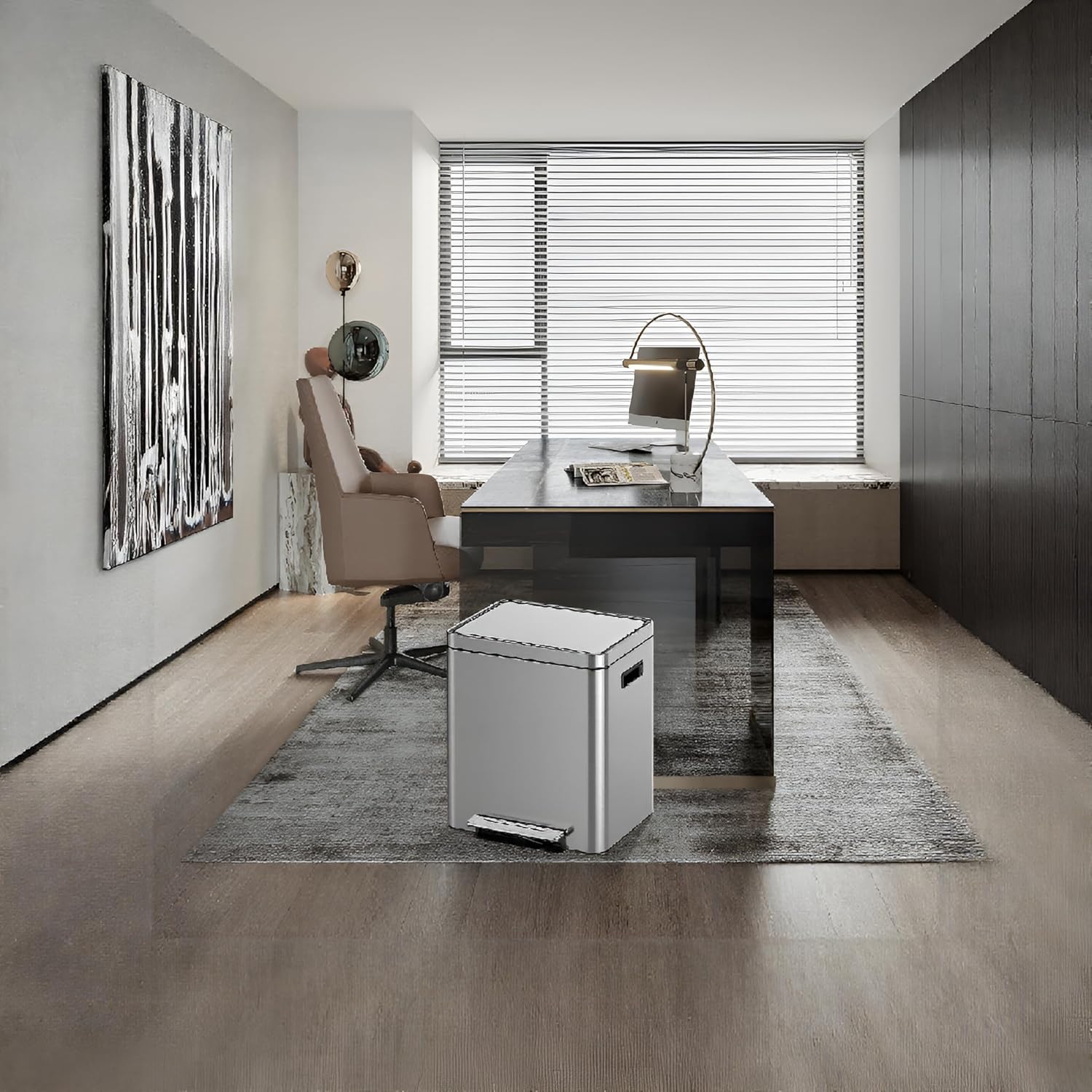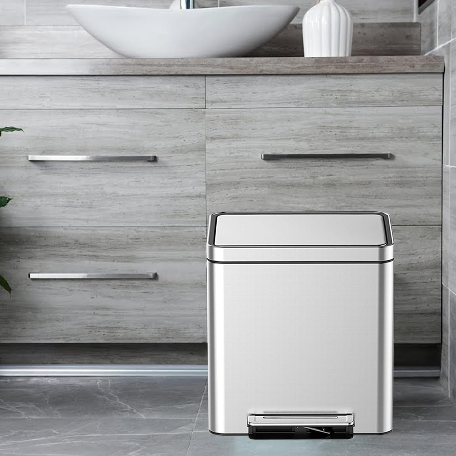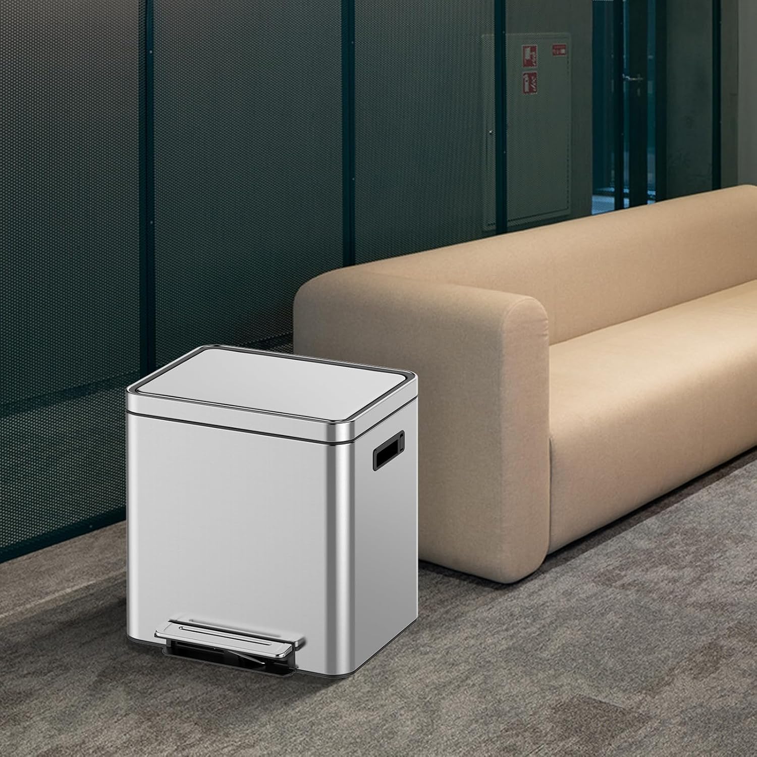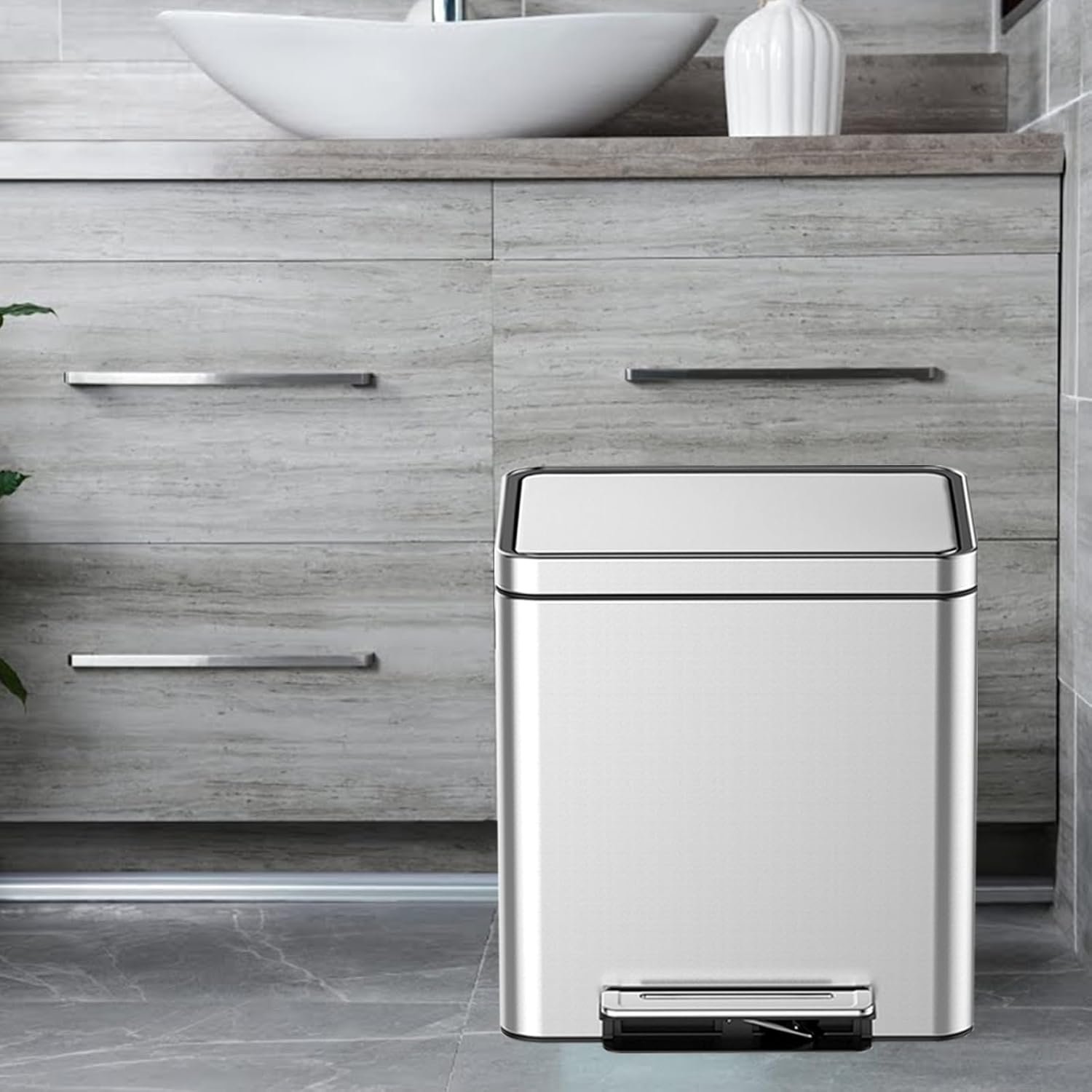 60L/16 Gal Trash Can, Double Compartment Stainless Steel Trash Bin with Removable Basket, Dual Garbage Can with Lid & Step Foot Pedal, Rubbish Bins Kitchen Waste Basket for Office Restaurant