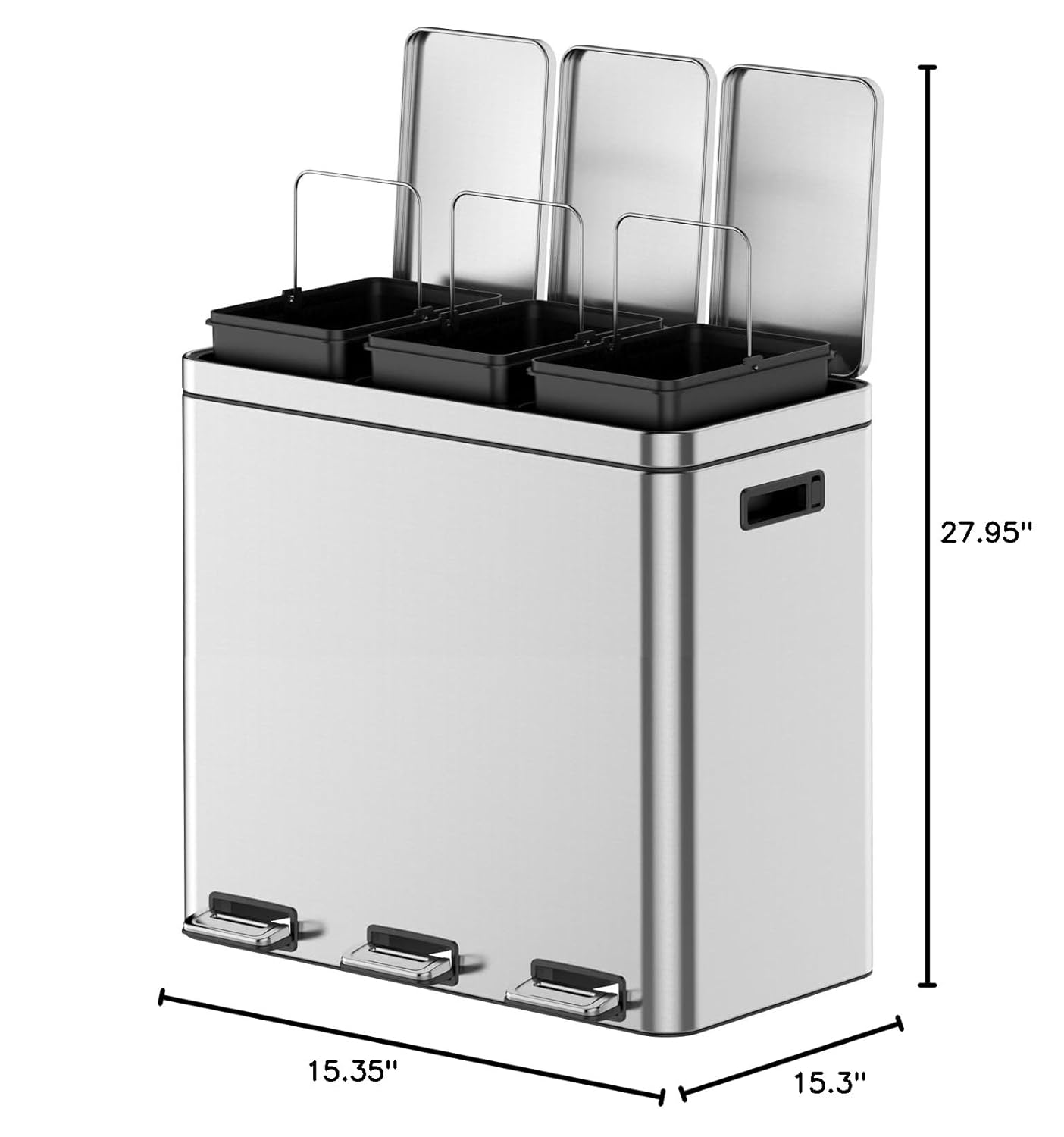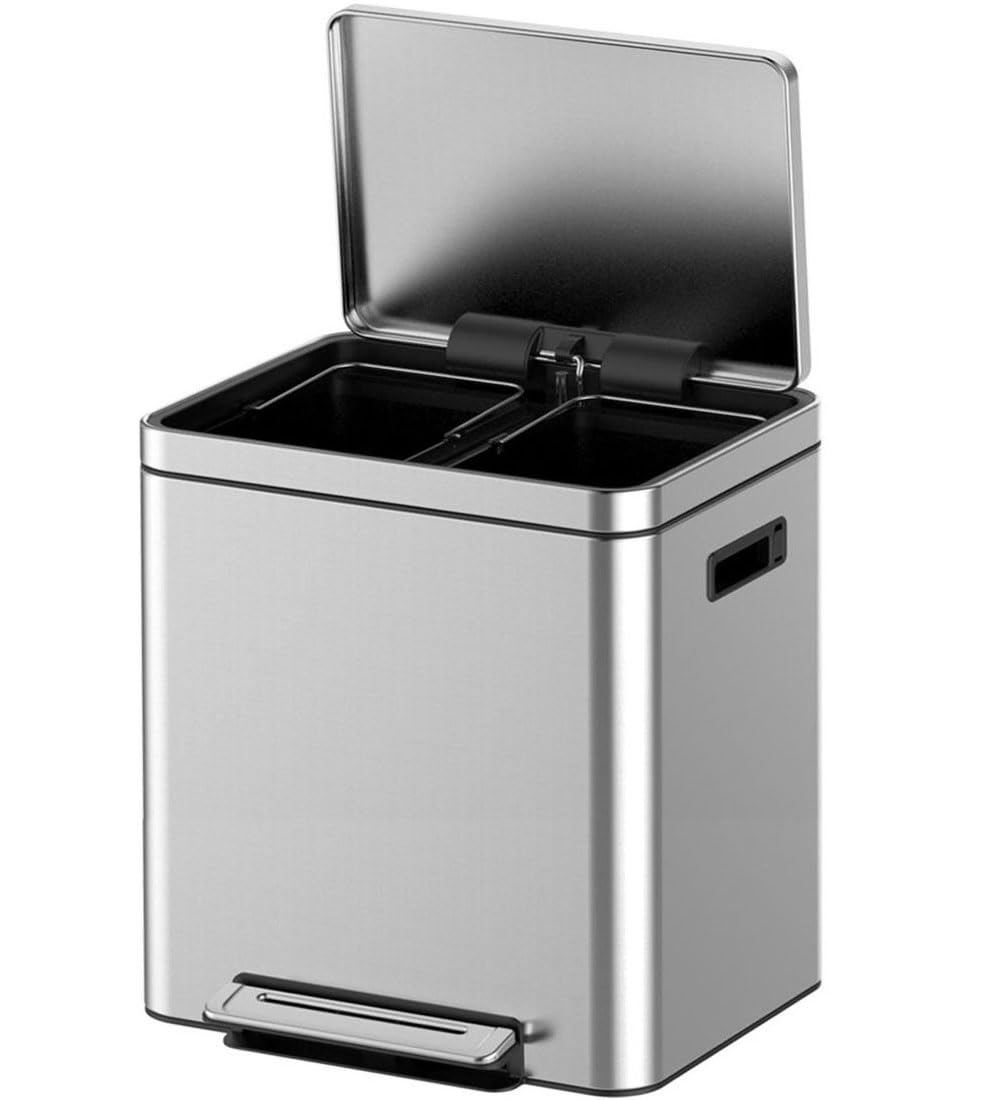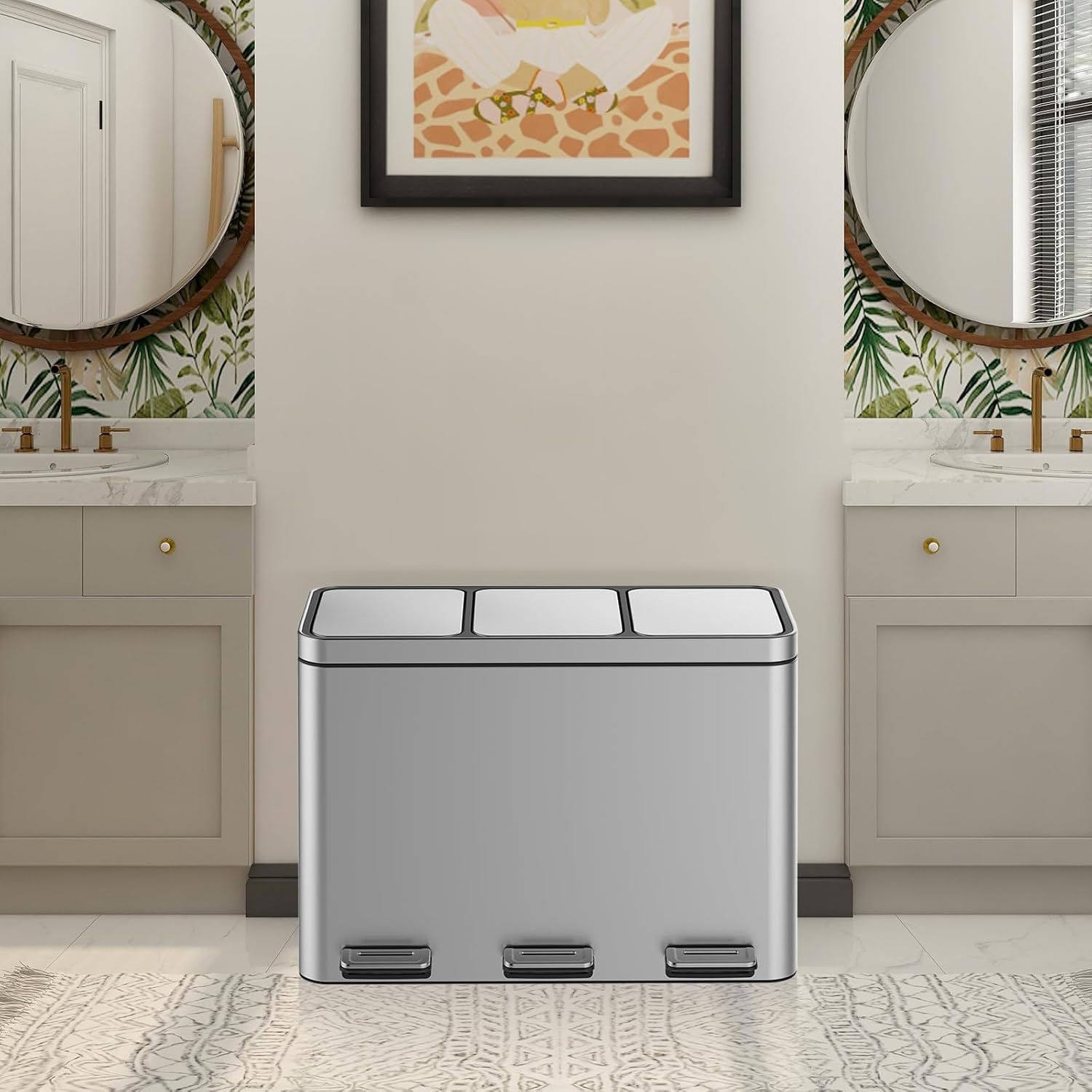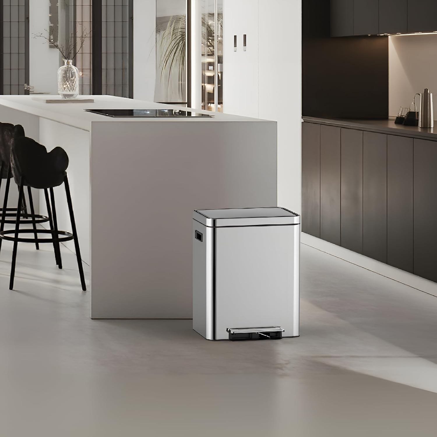 Garvee 16 gal Dual Trash Can, Stainless Steel Kitchen Garbage Can with Soft-Close Lid, Double Compartment Recycle Bin with 2 Removable Inner Buckets and Foot Pedal for Kitchen Home Office