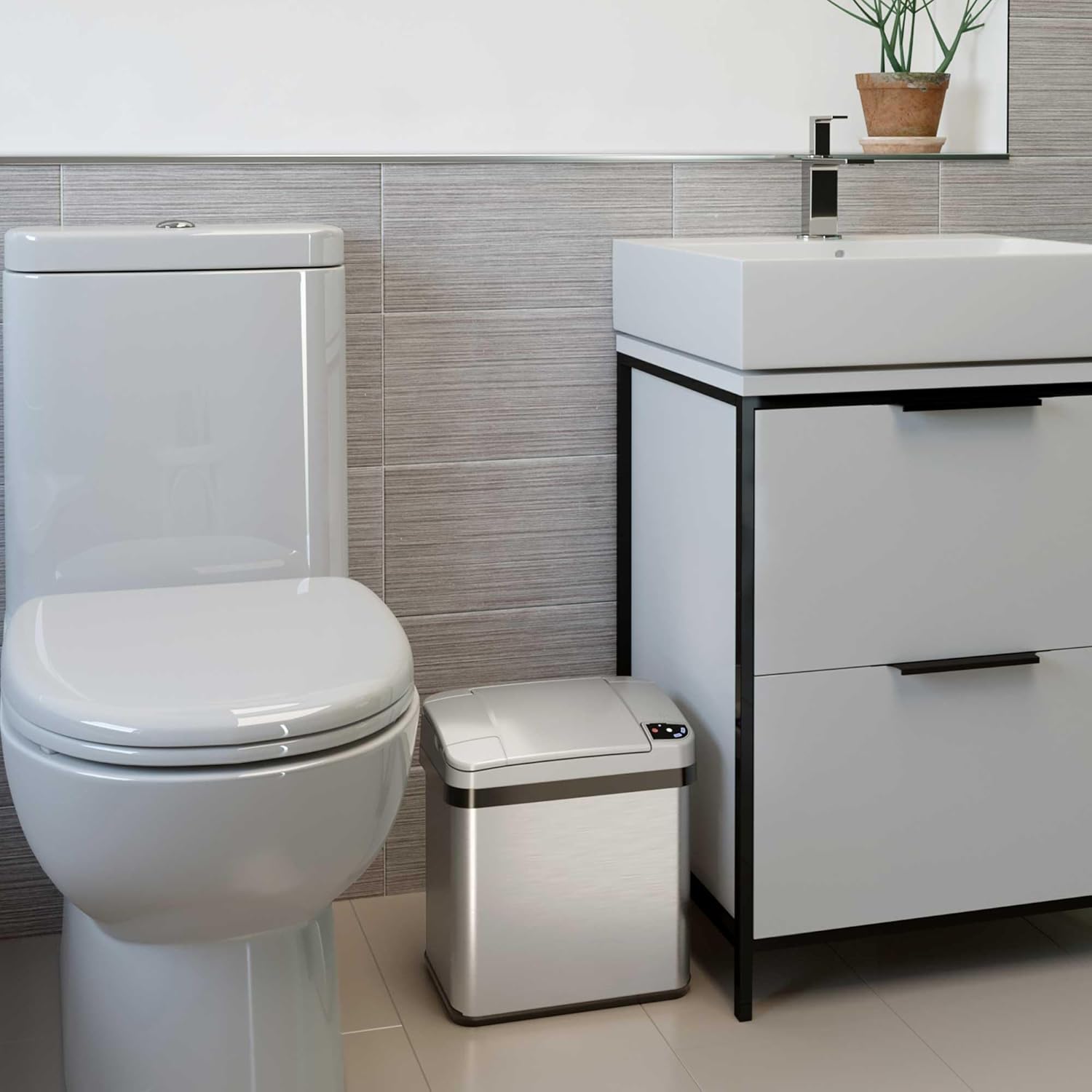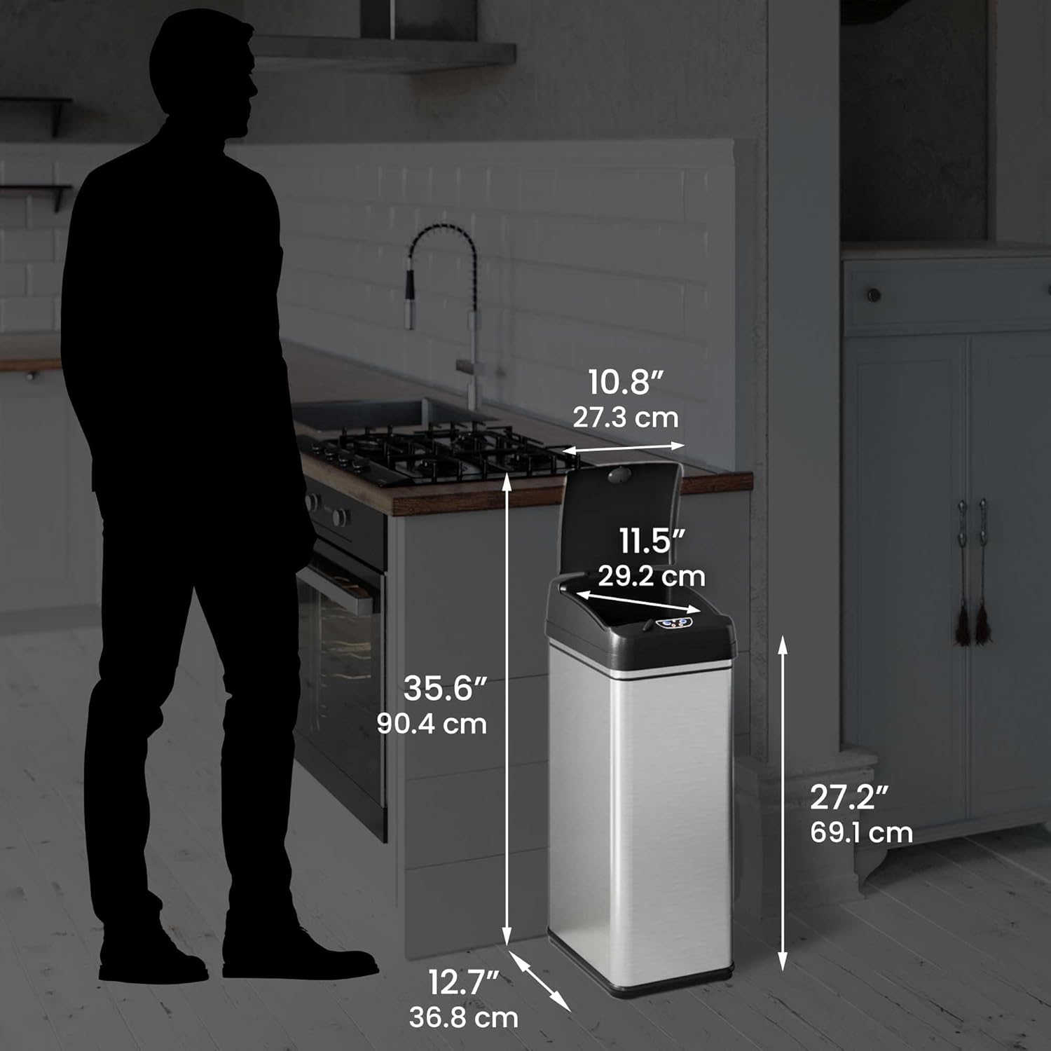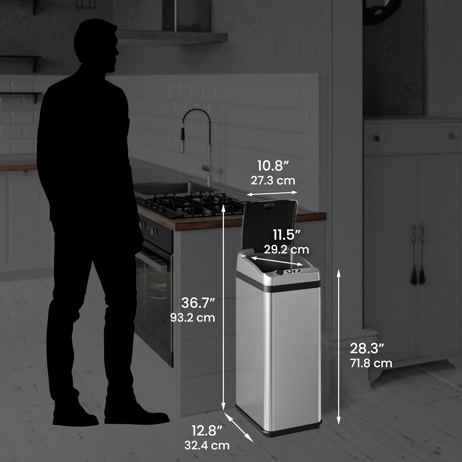 iTouchless 13 Gallon and 2.5 Gallon Automatic Touchless Sensor Kitchen Cans with Odor Control System, Includes 1 Waterproof Reusable “TRASH” Vinyl Sticker, Stainless Steel/02 Gal and 03 Gal