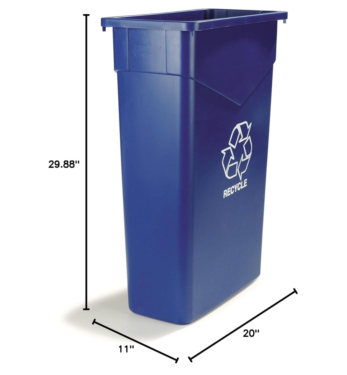 Carlisle FoodService Products Trimline Rectangular Recycle Container, Plastic, 23 Gallons, Blue, (Pack of 4)