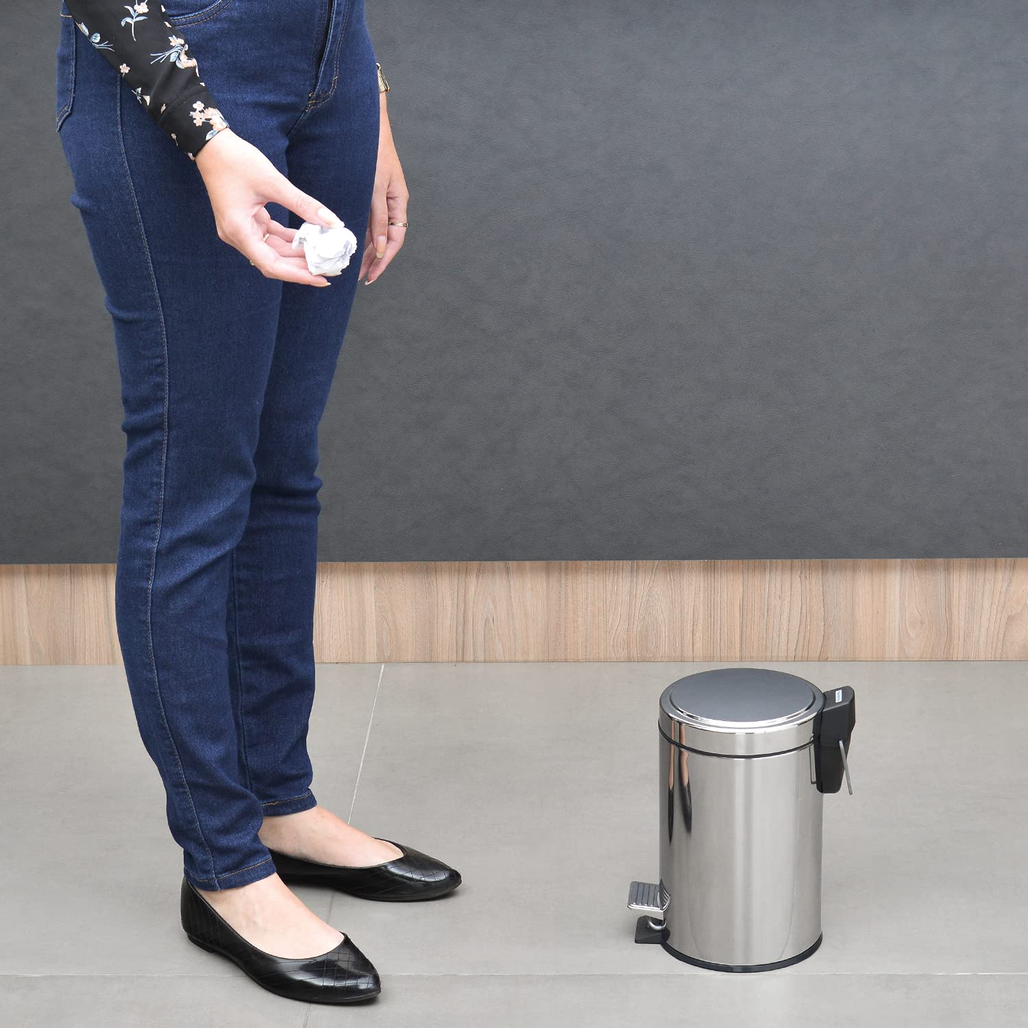 Tramontina 3L Pedal Bin – Stainless Steel Bathroom Bin with Lid, 17 cm Diameter x 27 cm Height, 94538103