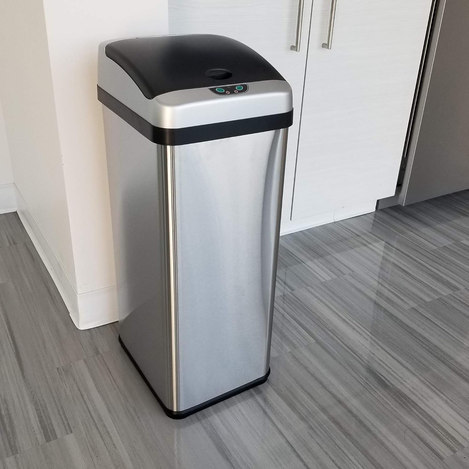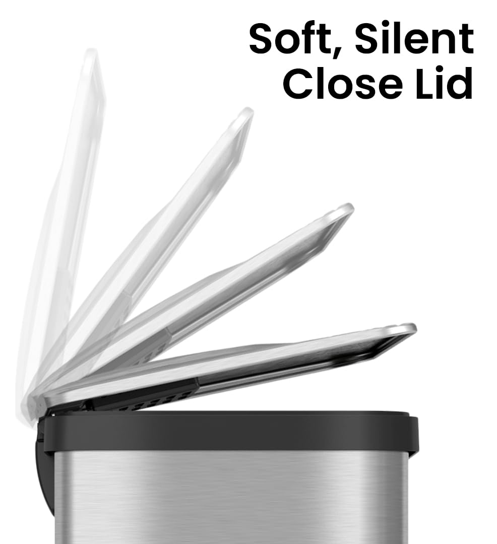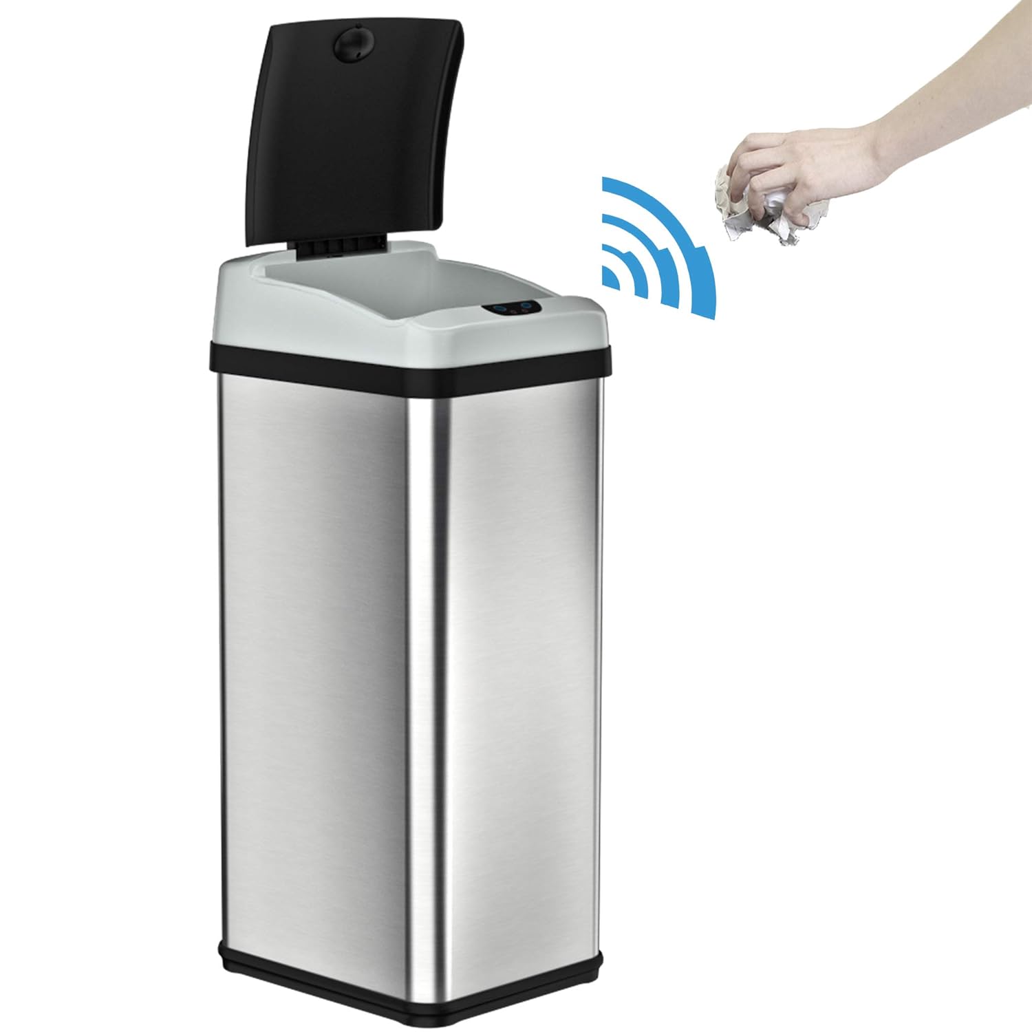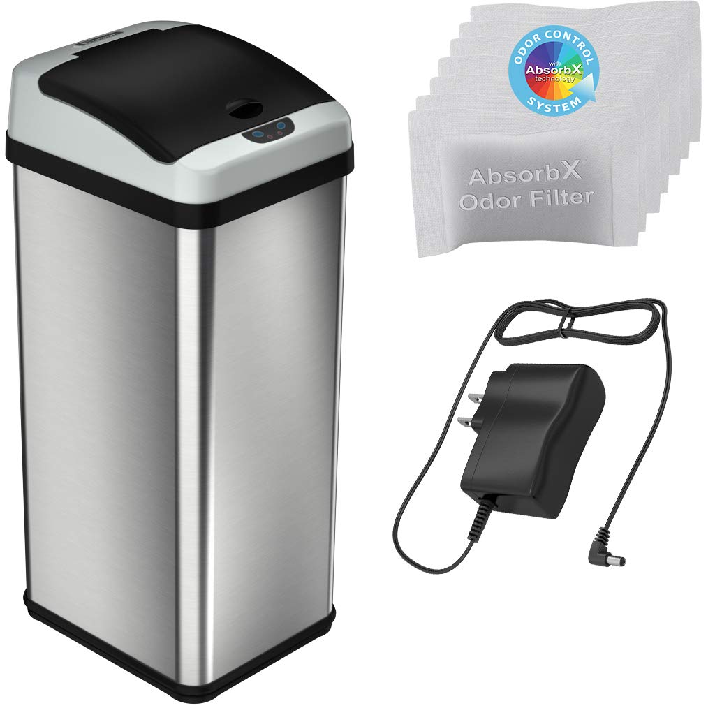 iTouchless Touchless Trash Can with AC Adapter, 3 Odor Filters Big Lid Opening Sensor Kitchen Garbage Bin, 13 Gallon, Stainless Steel, Platinum