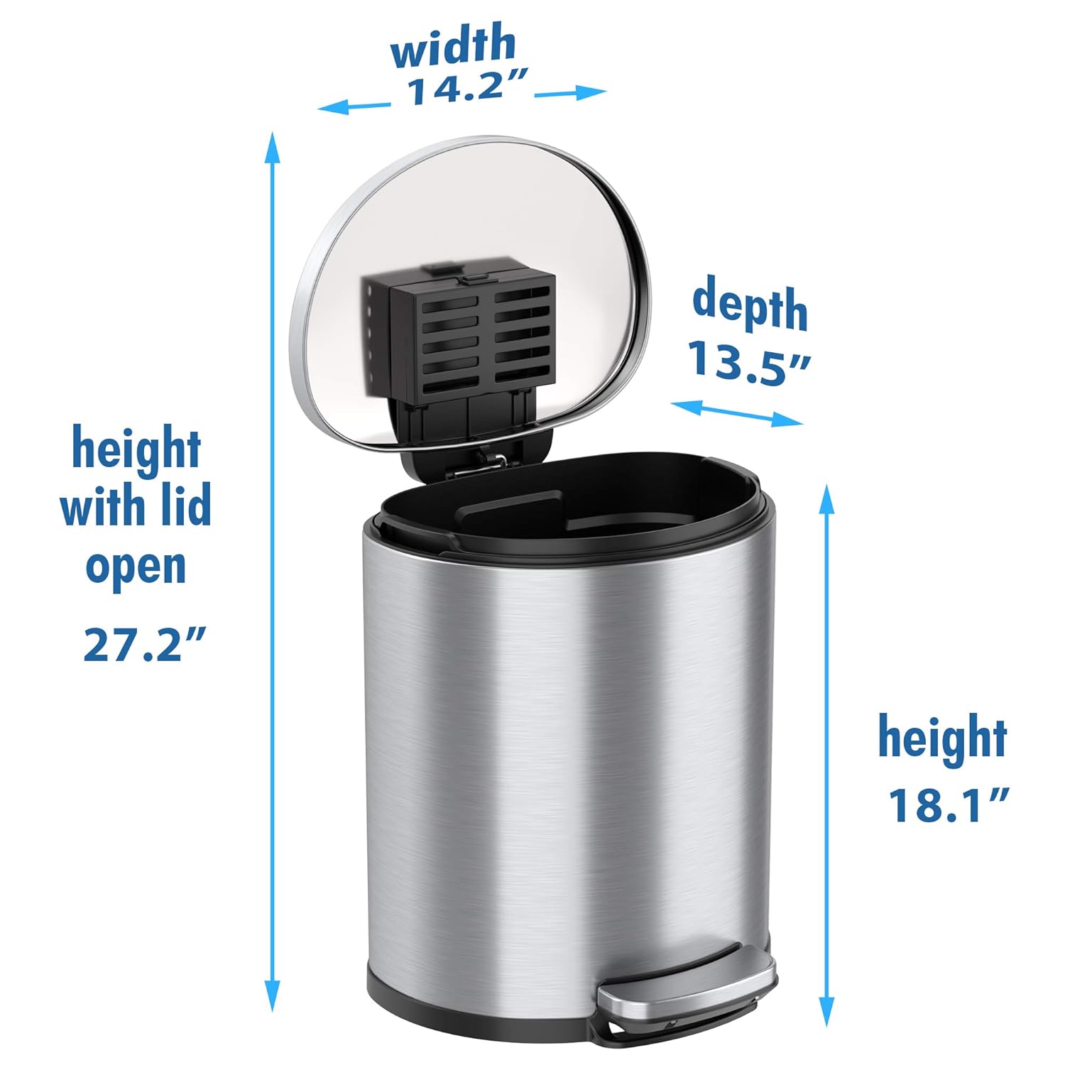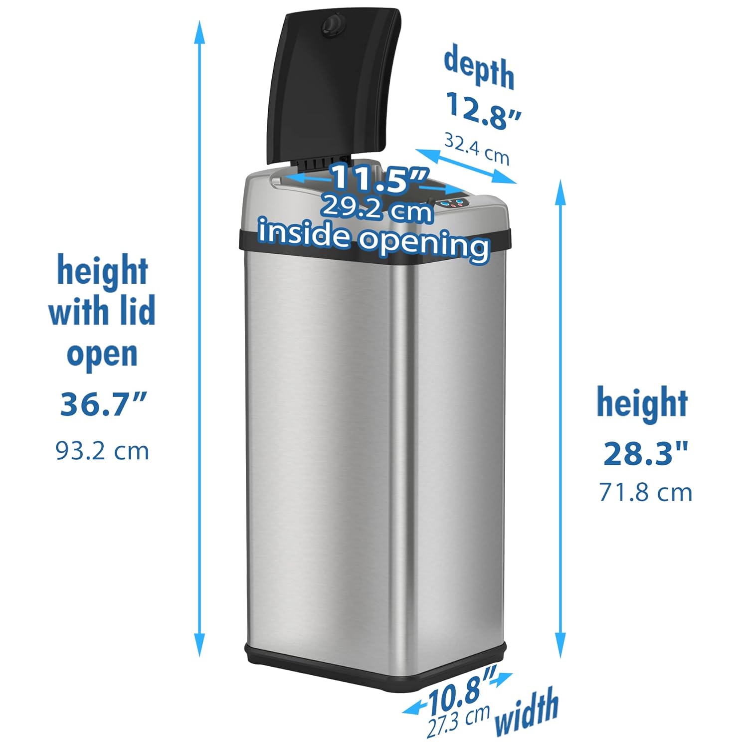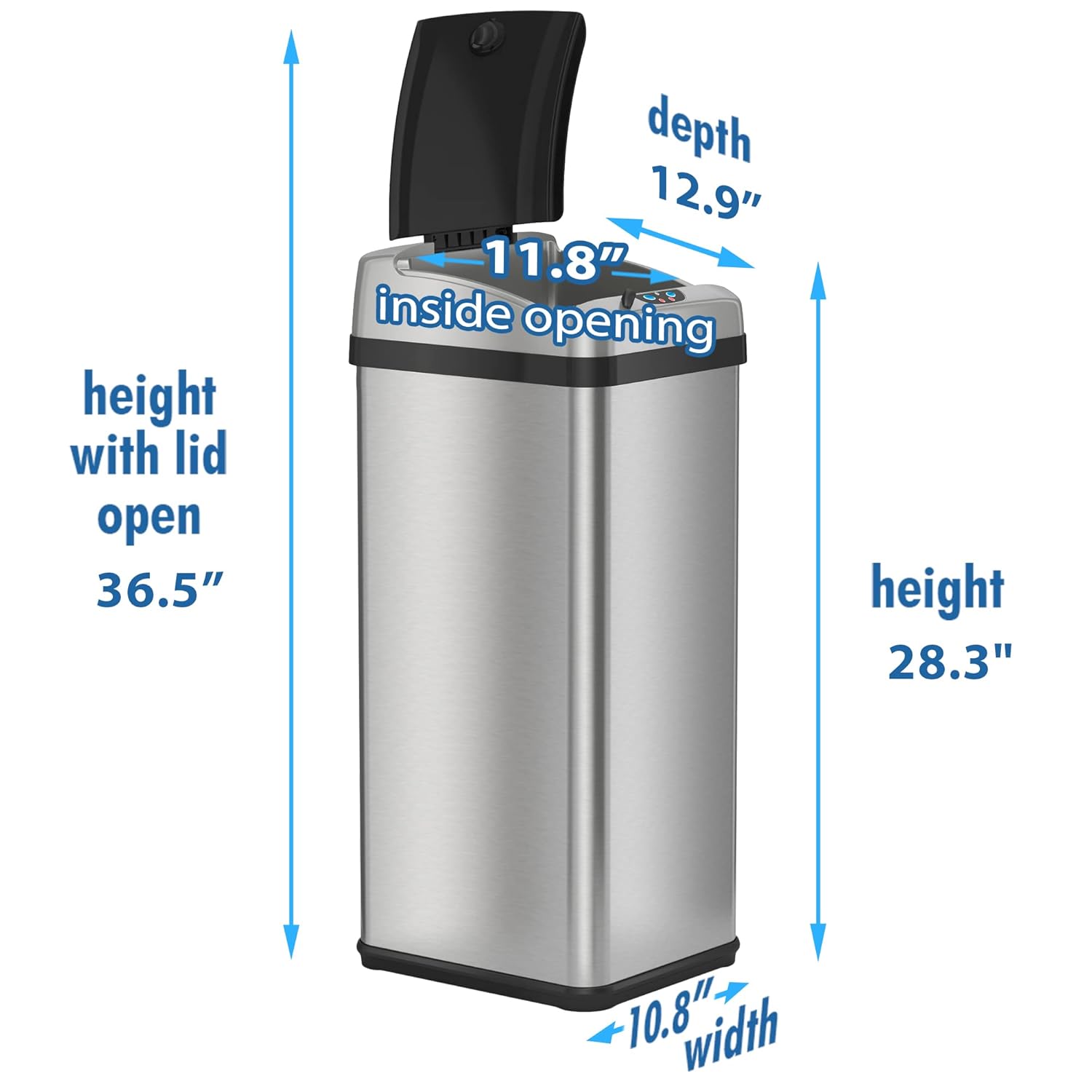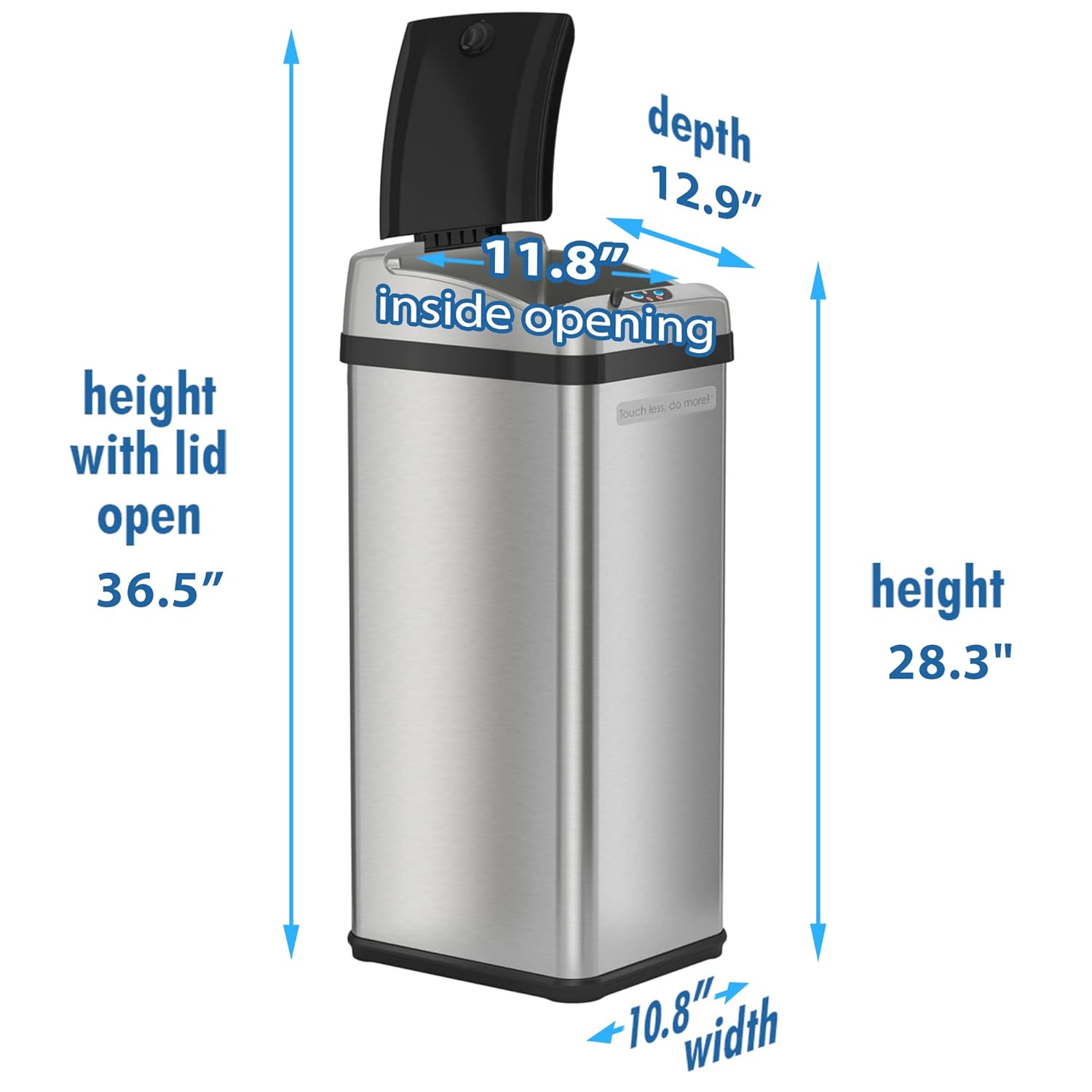 iTouchless Touchless Trash Can with AC Adapter, 3 Odor Filters Big Lid Opening Sensor Kitchen Garbage Bin, 13 Gallon, Stainless Steel, Platinum