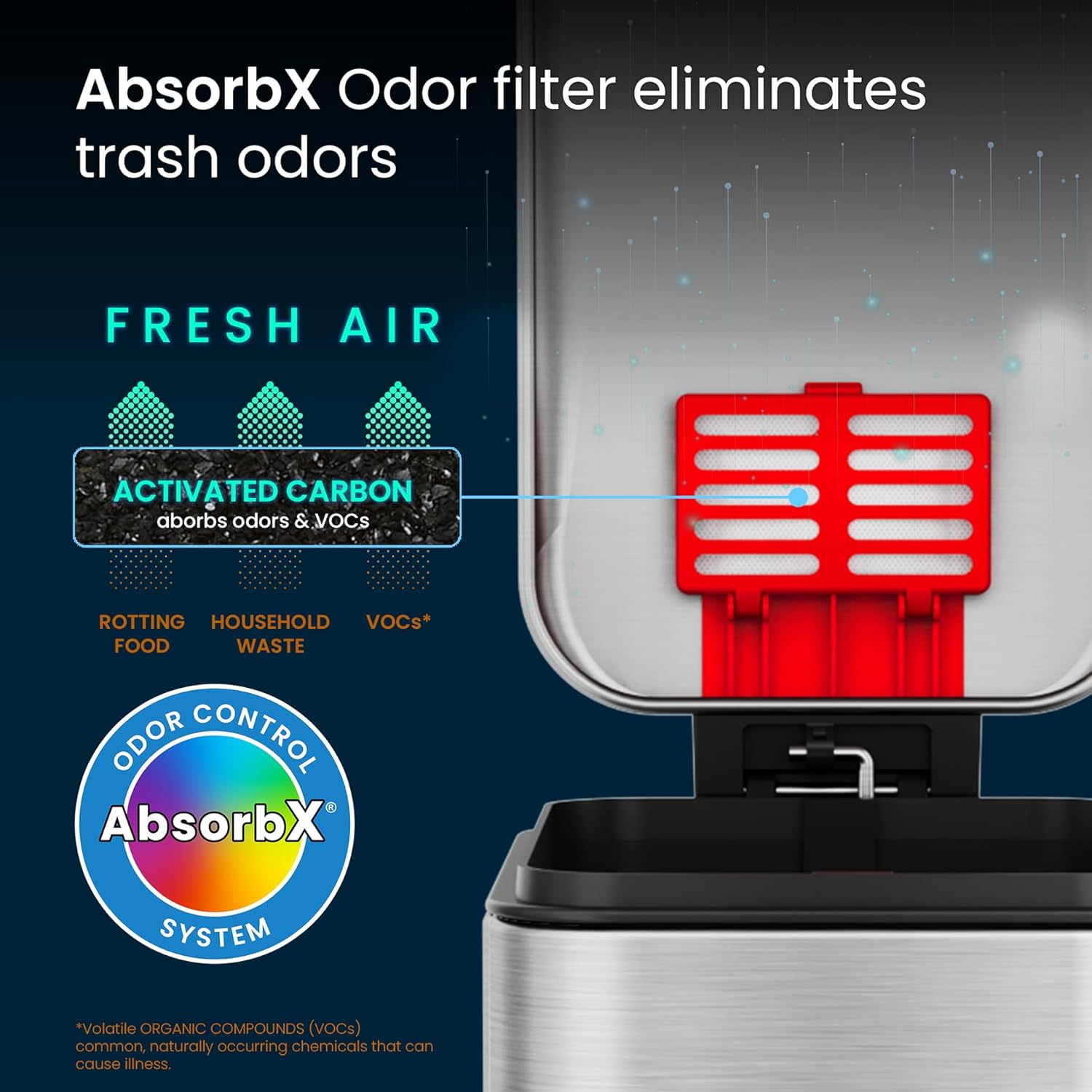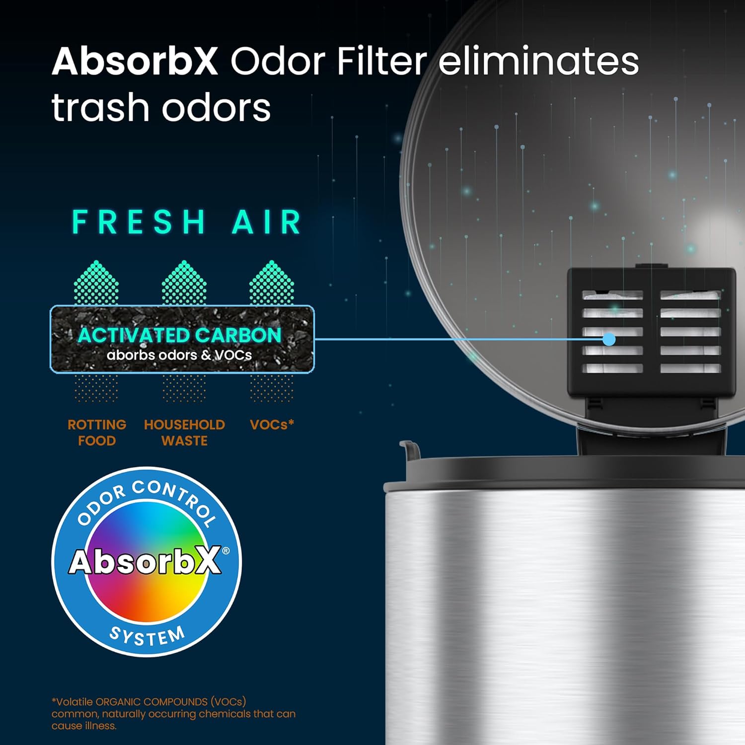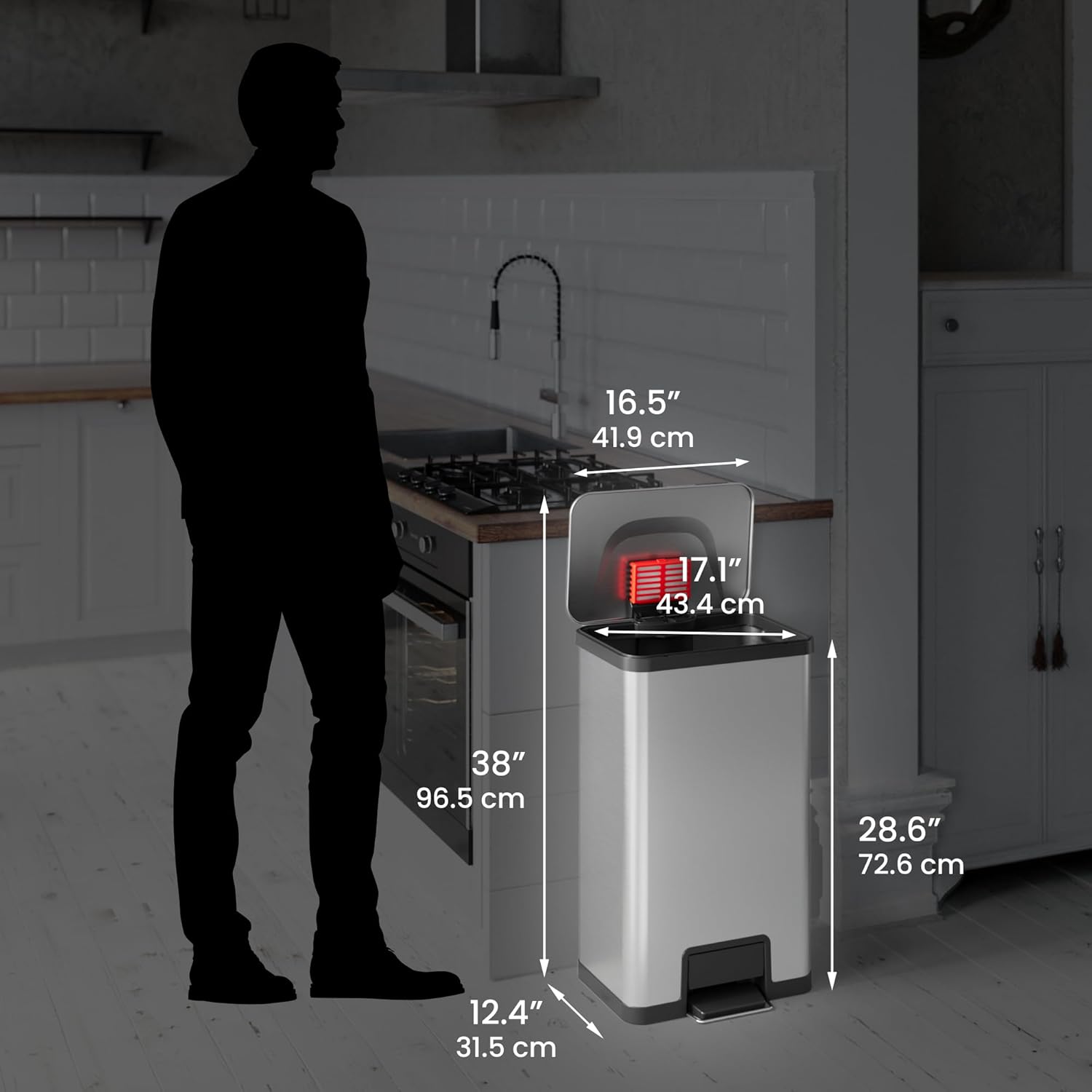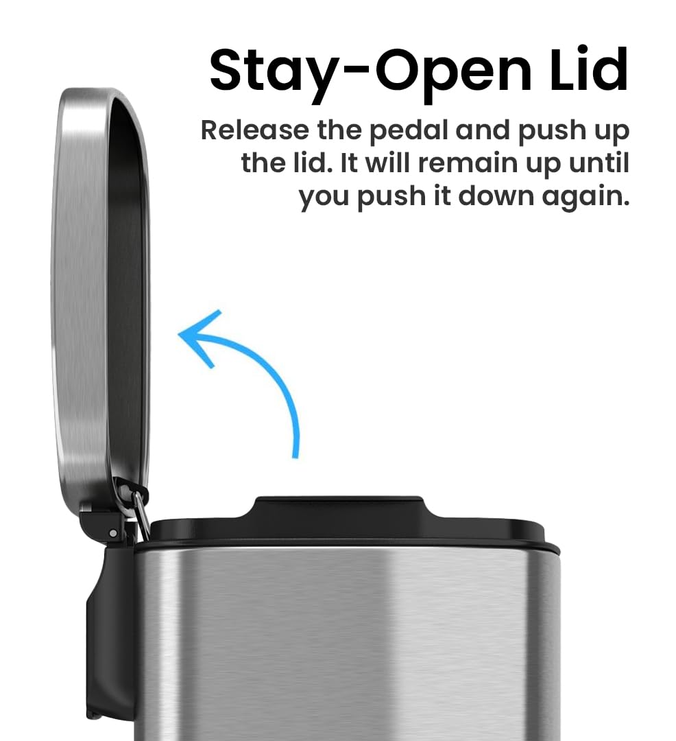 iTouchless Touchless Trash Can with AC Adapter, 3 Odor Filters Big Lid Opening Sensor Kitchen Garbage Bin, 13 Gallon, Stainless Steel, Platinum