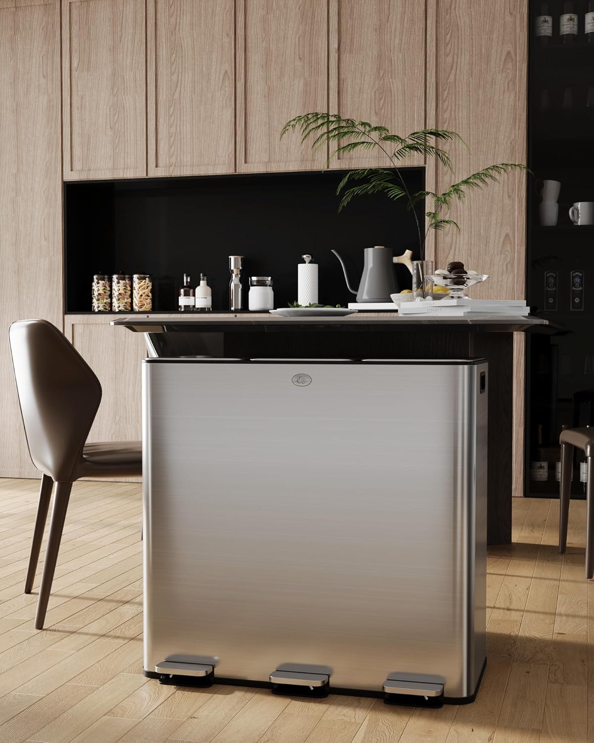 Organize It All Neu Home 60 L Dual Compartment Recycling Bin | Dimensions: 22.8" x 13.8" x 24.4" | Dual Compartment | Finger Print Proof | Removeable Liners | Grey | Kitchen Accessories