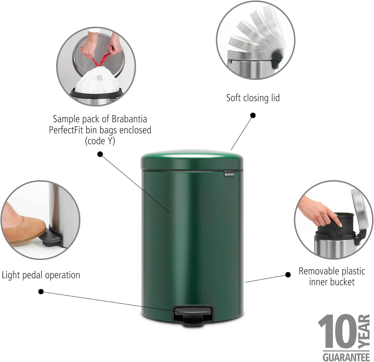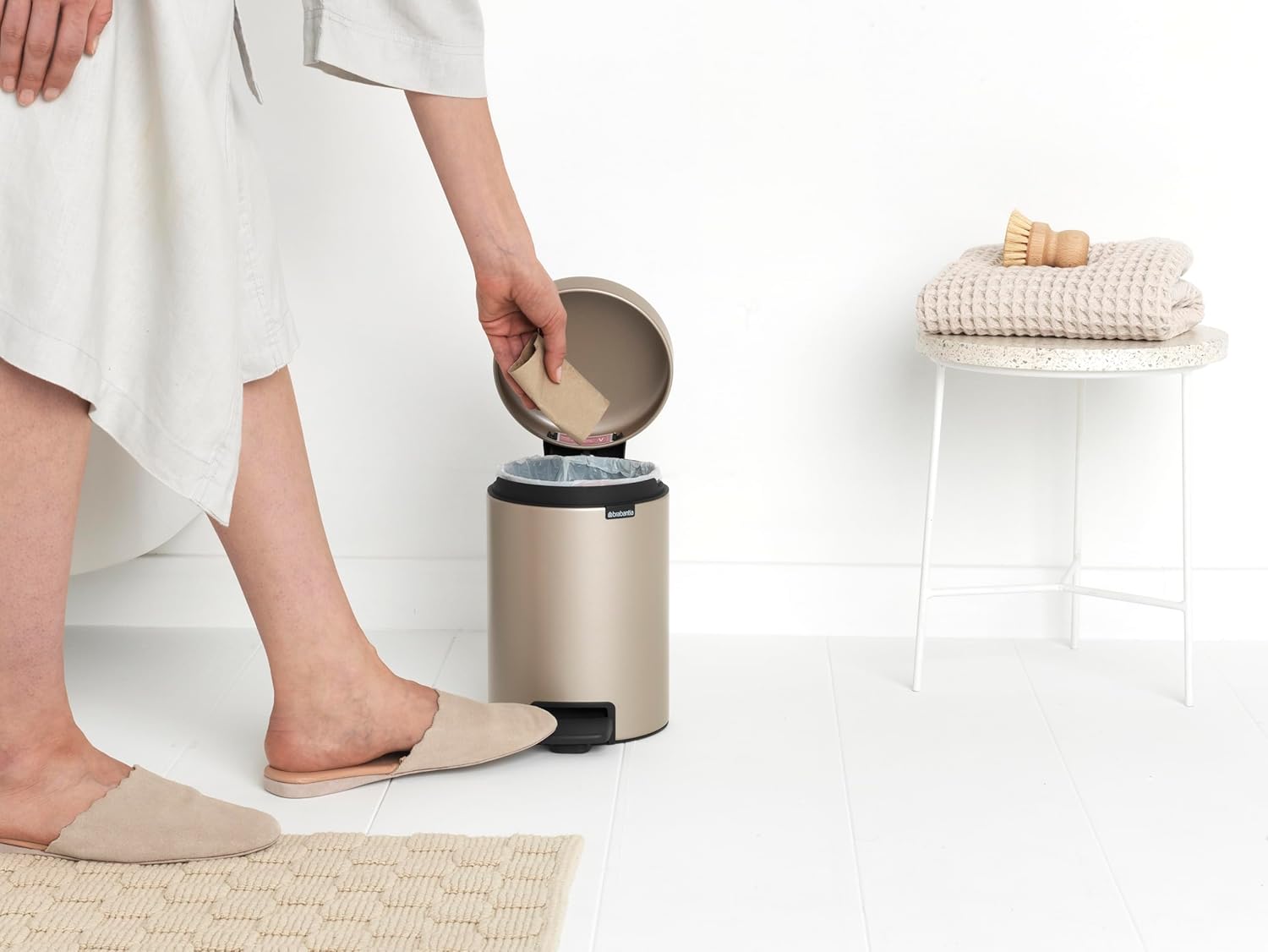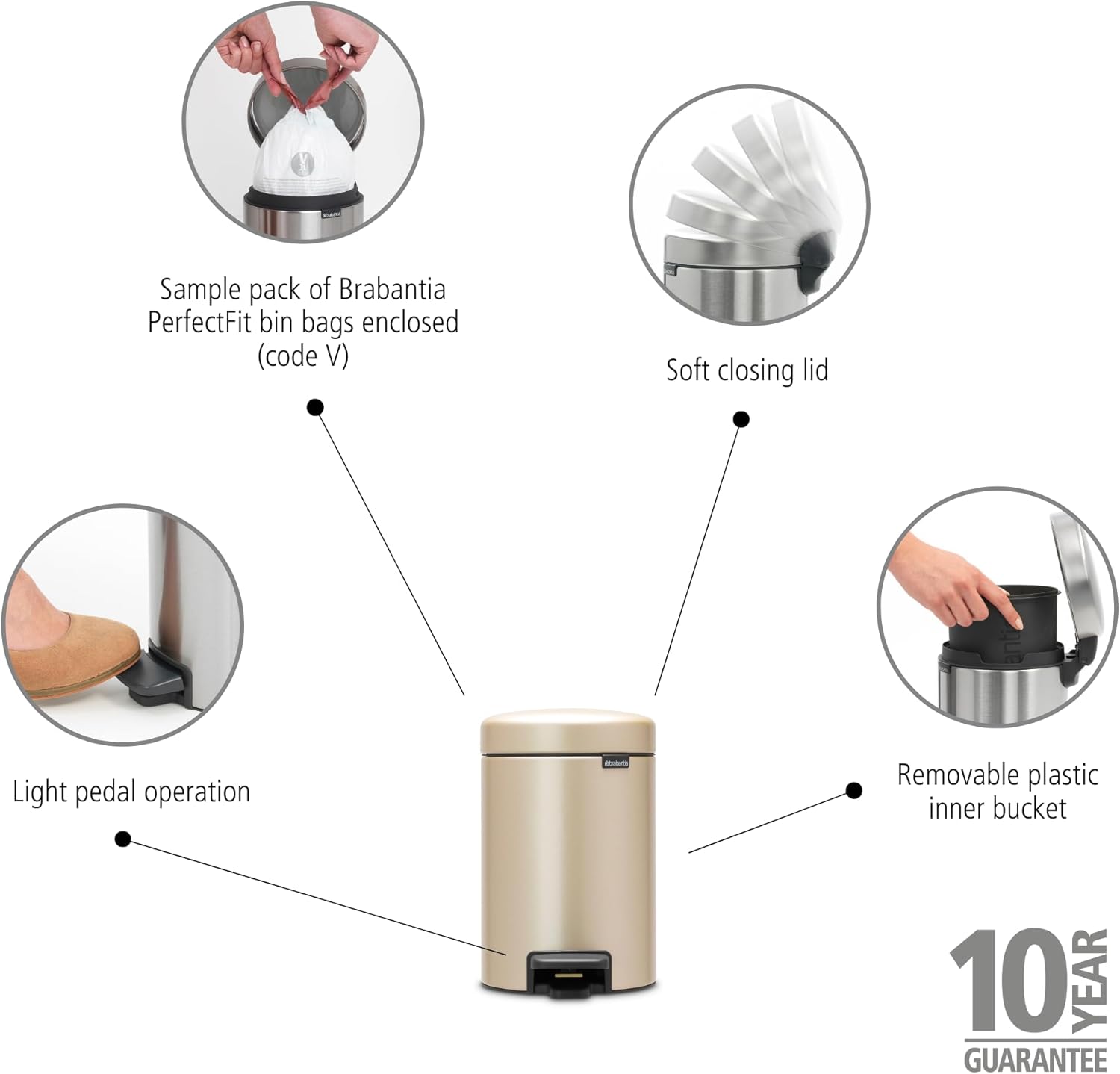 Brabantia New Icon Step Trash Can (5.3 Gal/Metallic Gold) Soft Closing Kitchen Garbage/Recycling Can with Removable Bucket