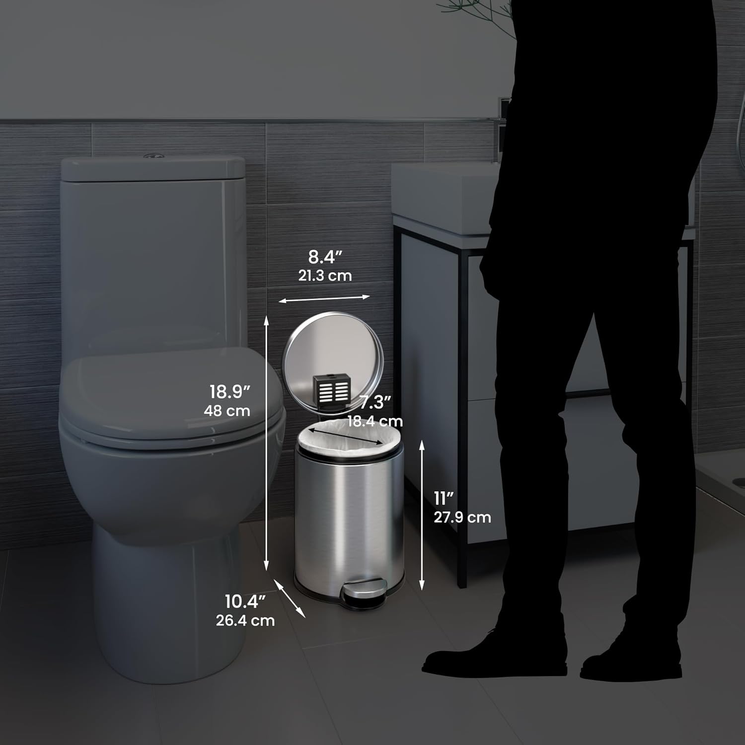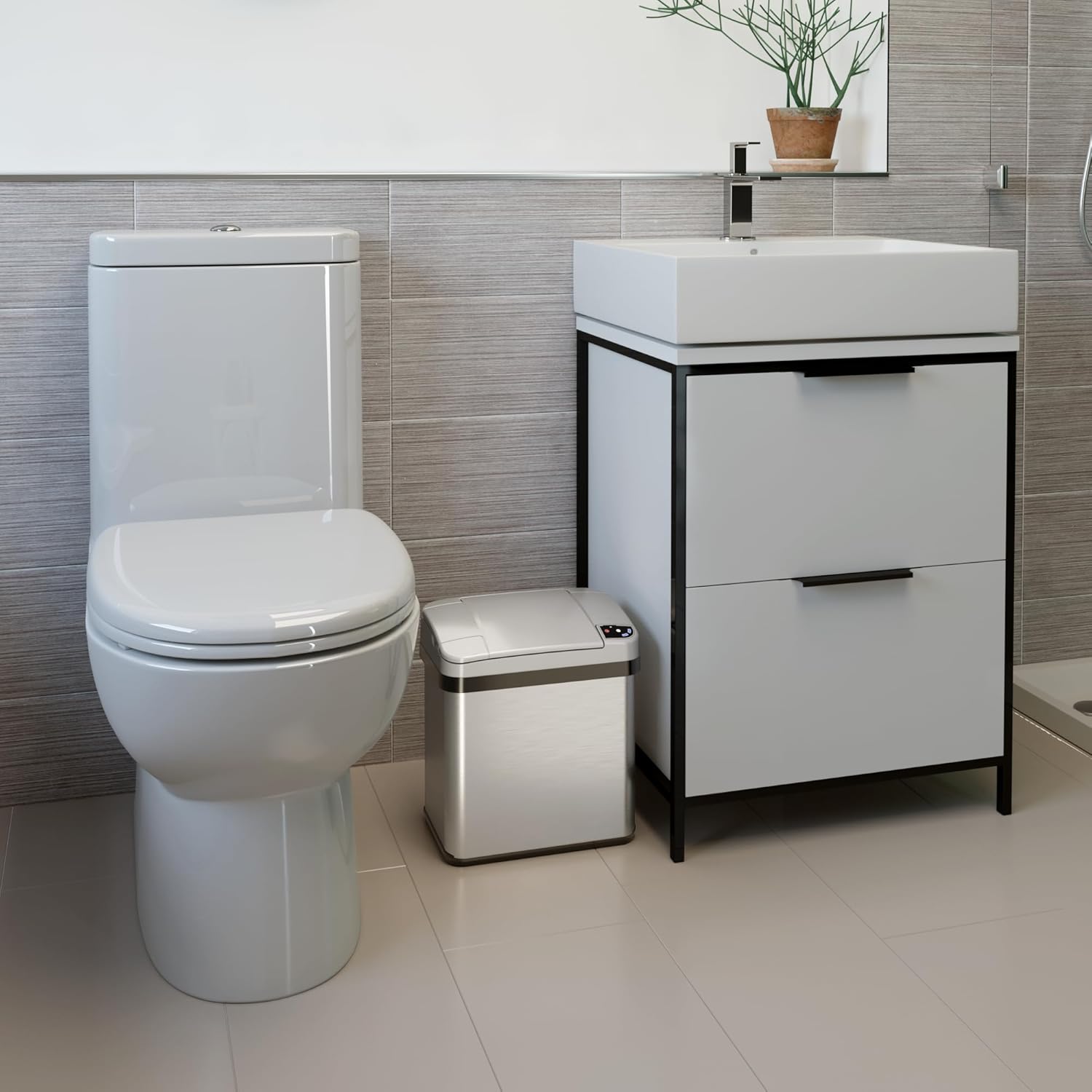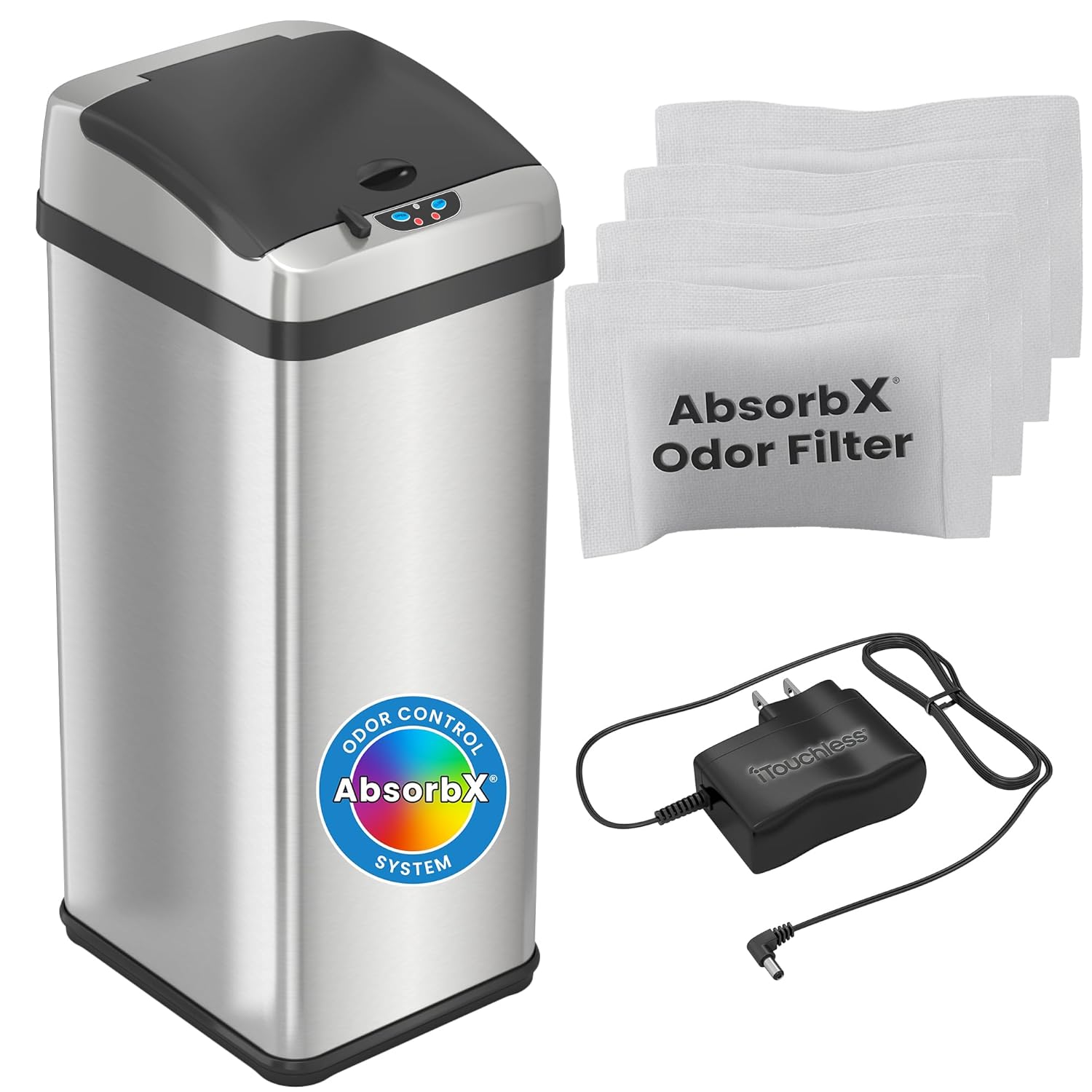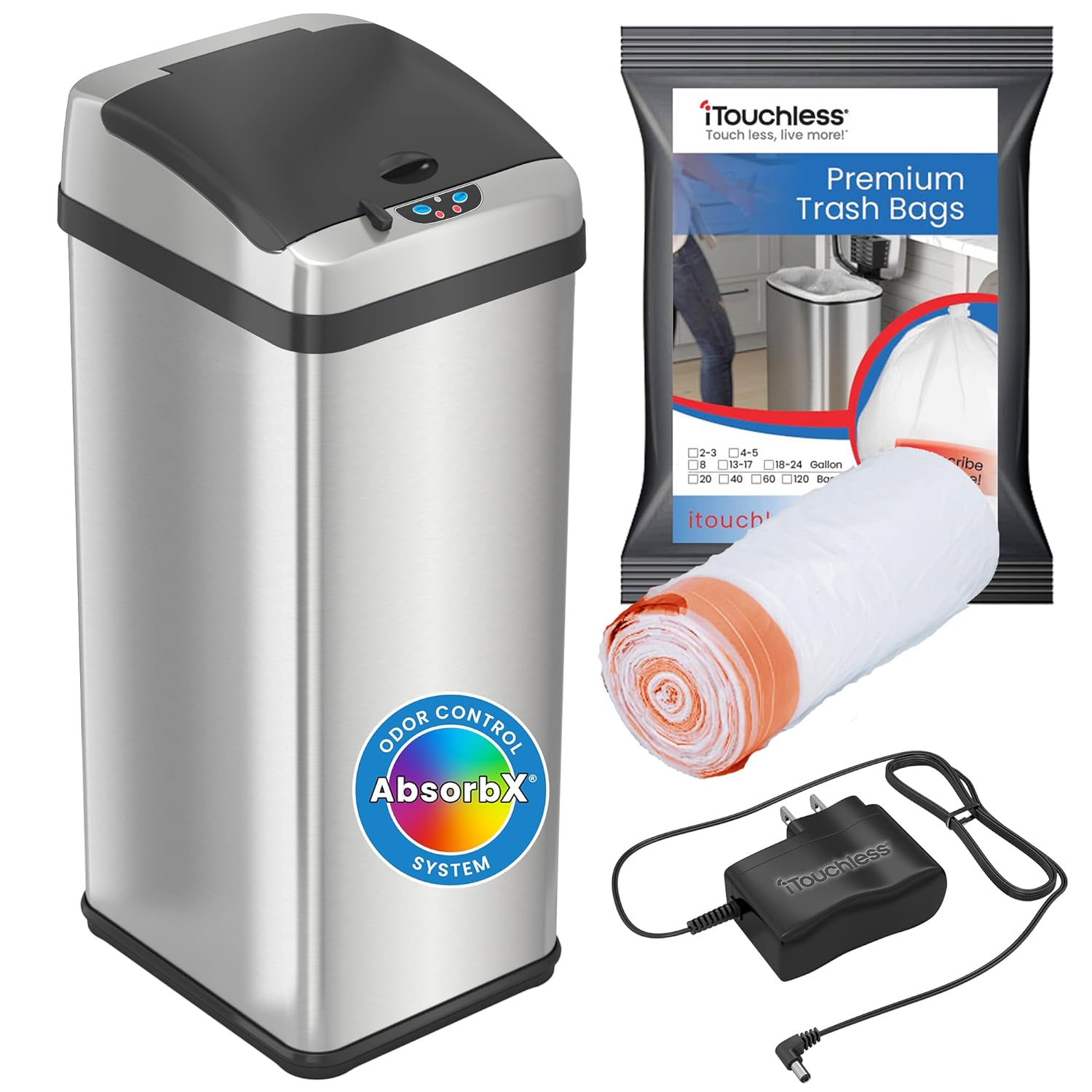 iTouchless Touchless Trash Can Combo Pack - 13 Gal & 2 Gal, Odor Control System, Stainless Steel, Kitchen and Bathroom Set