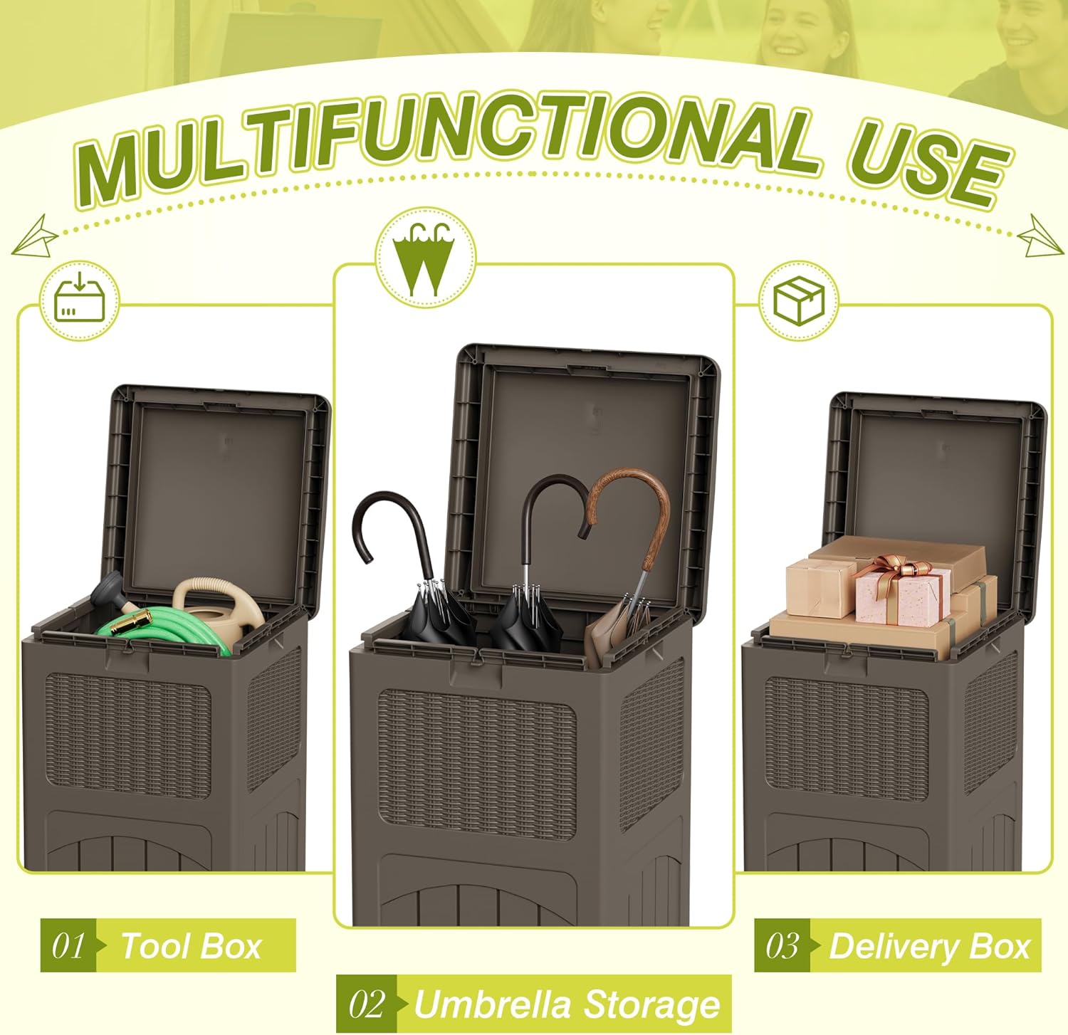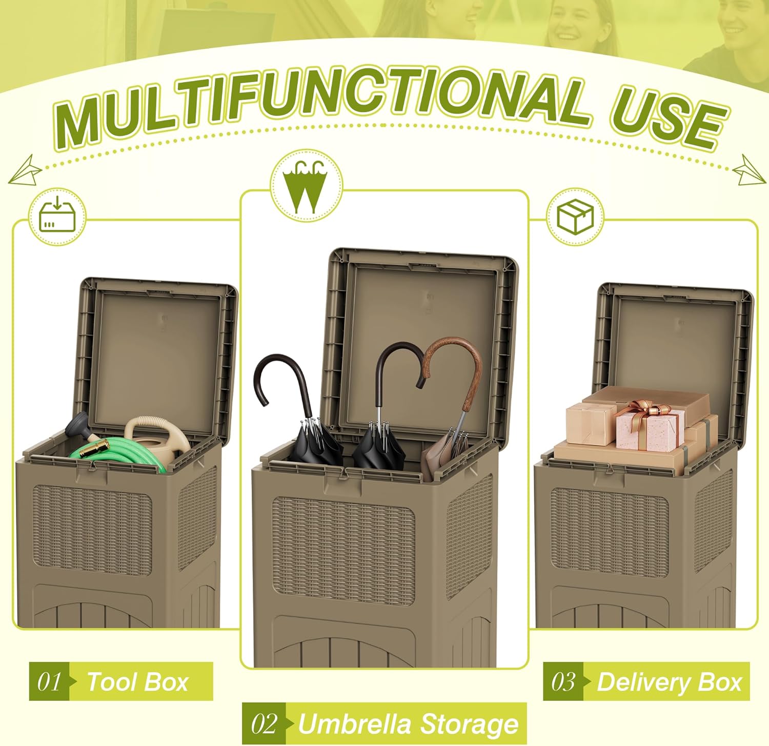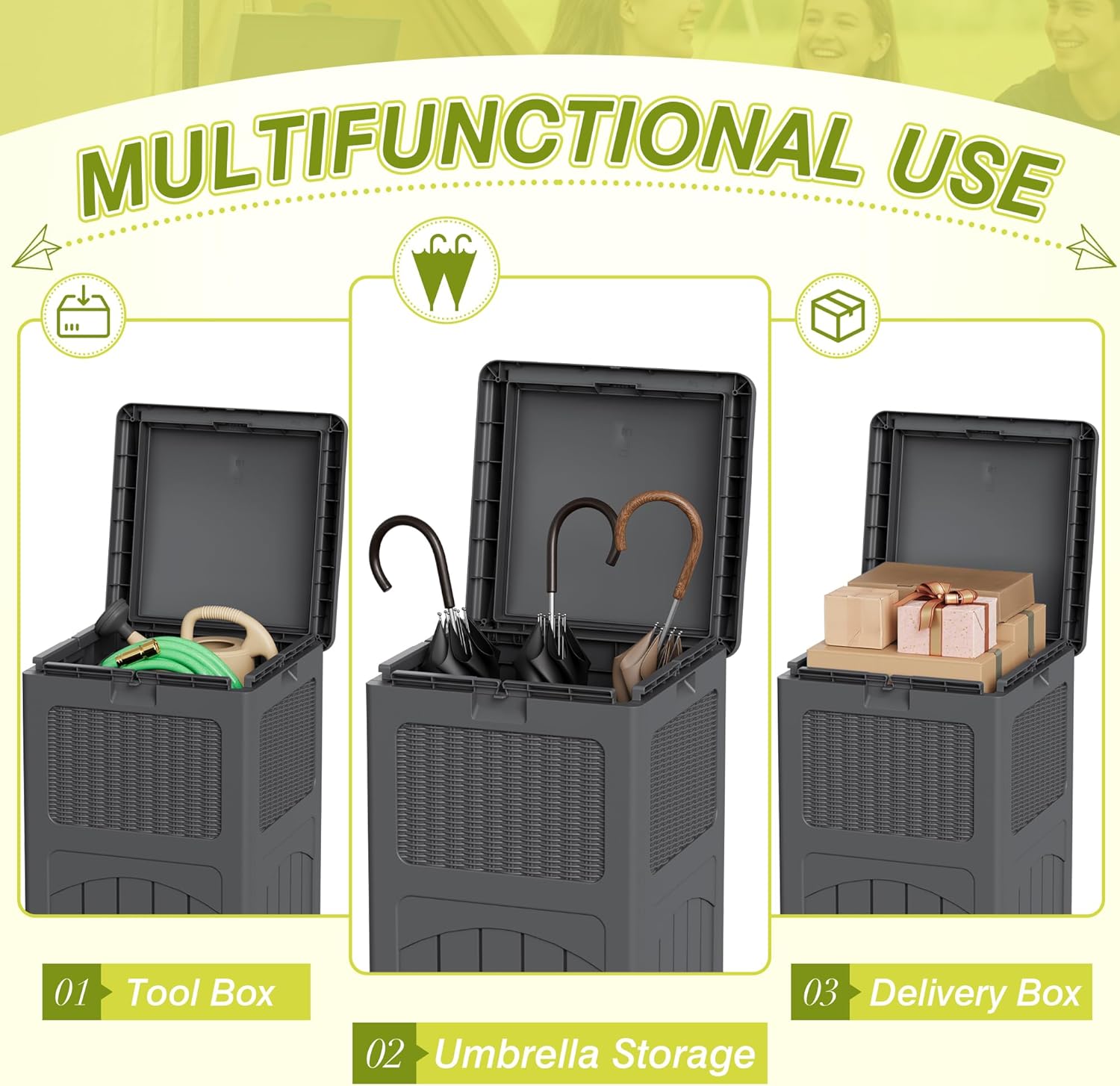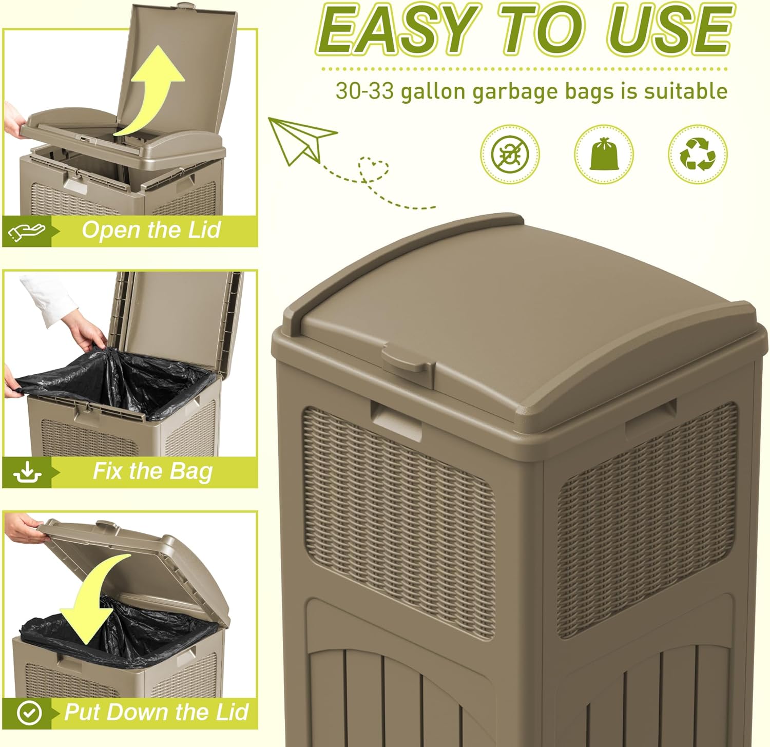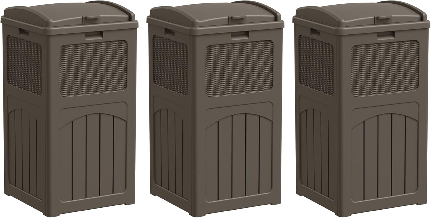 Greesum 33 Gallon Outdoor Trash Can with Lid, Waterproof Resin Garbage Bin for Hideaway, Deck, Patio, 3 Pack, Gray