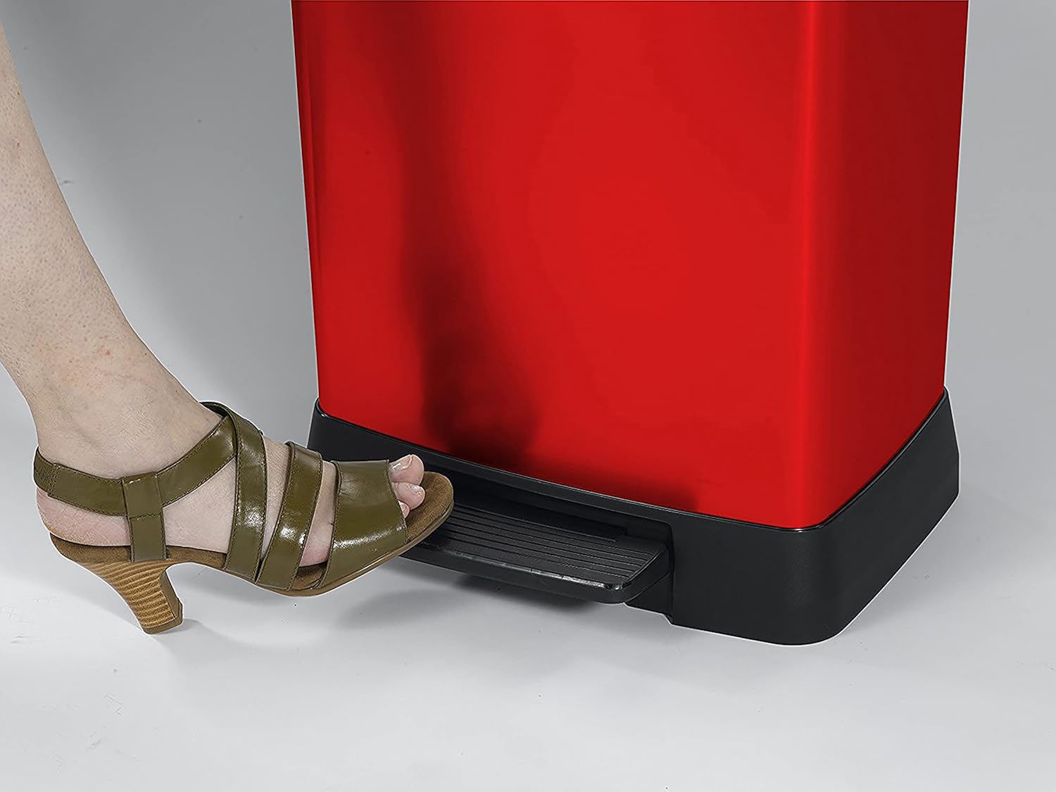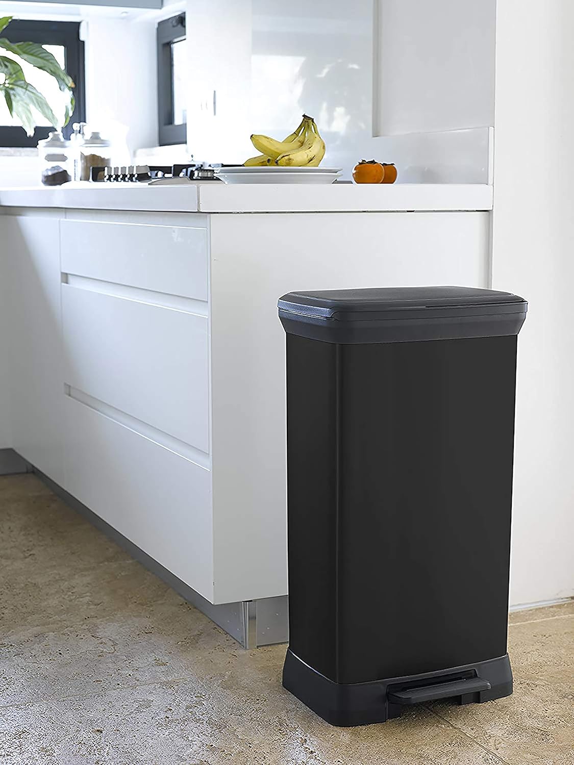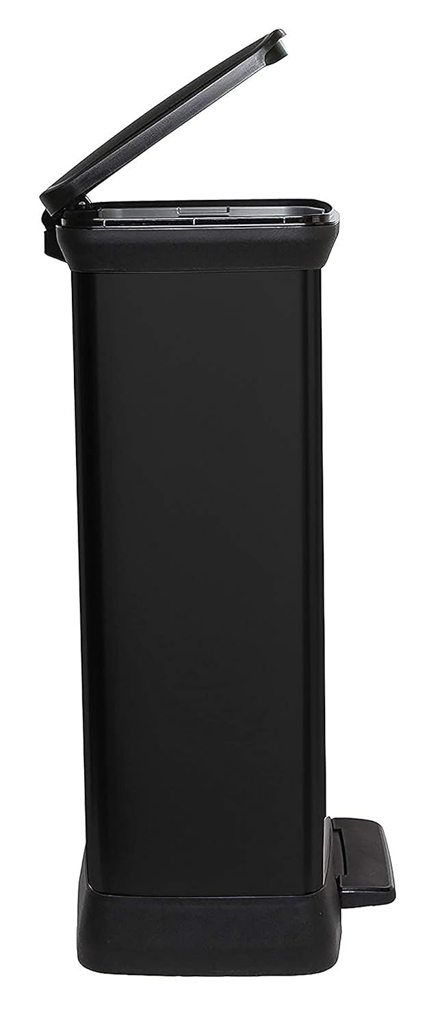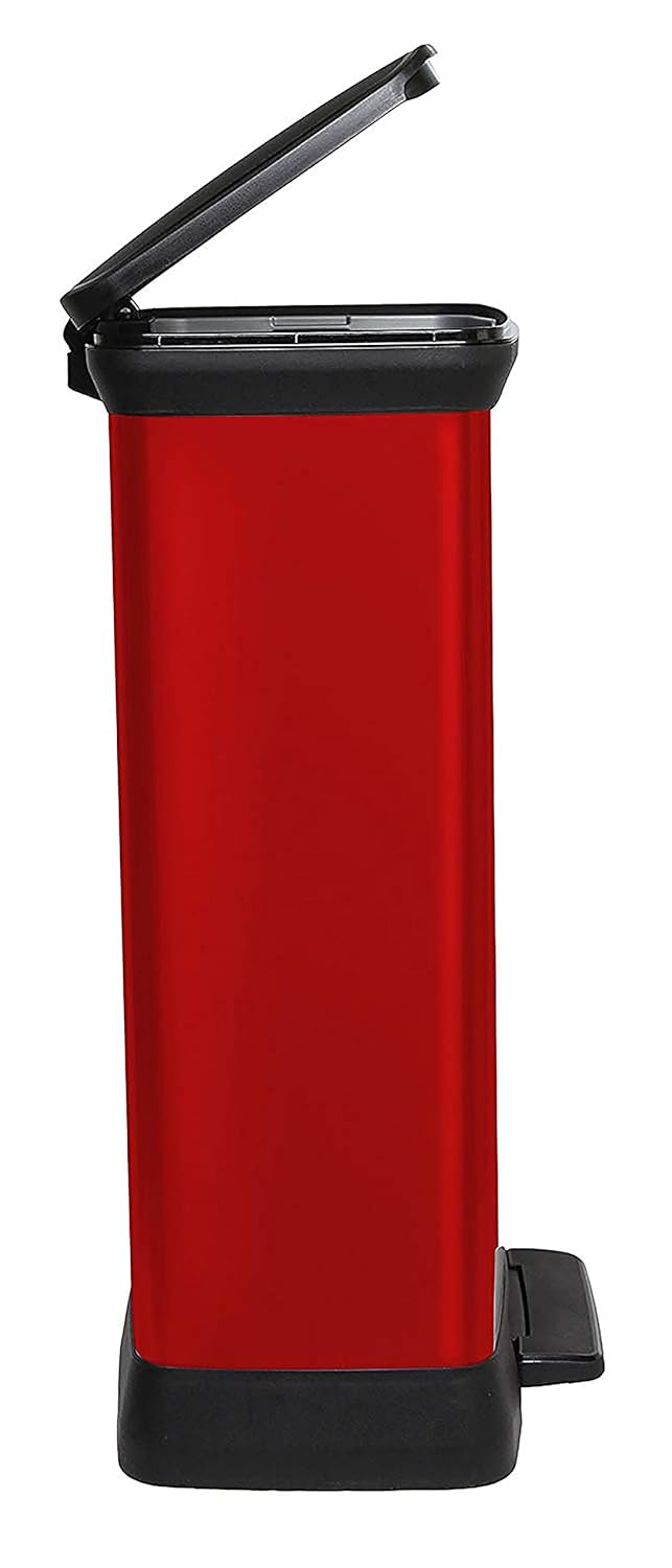 Curver Metal Effect 70% Recycled Kitchen Pedal Touch Deco Bin 50 litres - Red