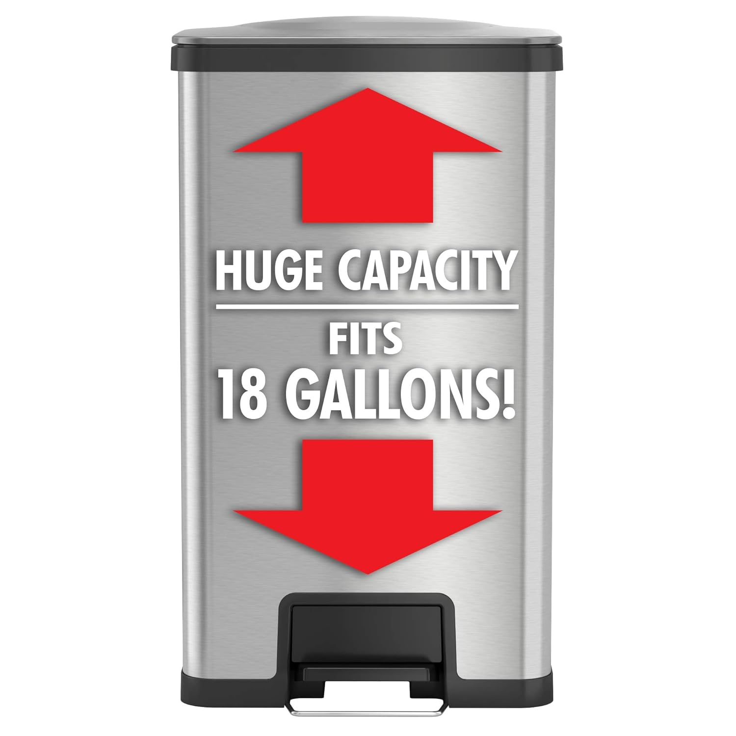 16 gal/60 L Kitchen Trash Can, Stainless Steel Dual Garbage Can with Soft-Close Lid, Large Rectangle Step Recycling Bin with Removable Inner Wastebasket for Home Office