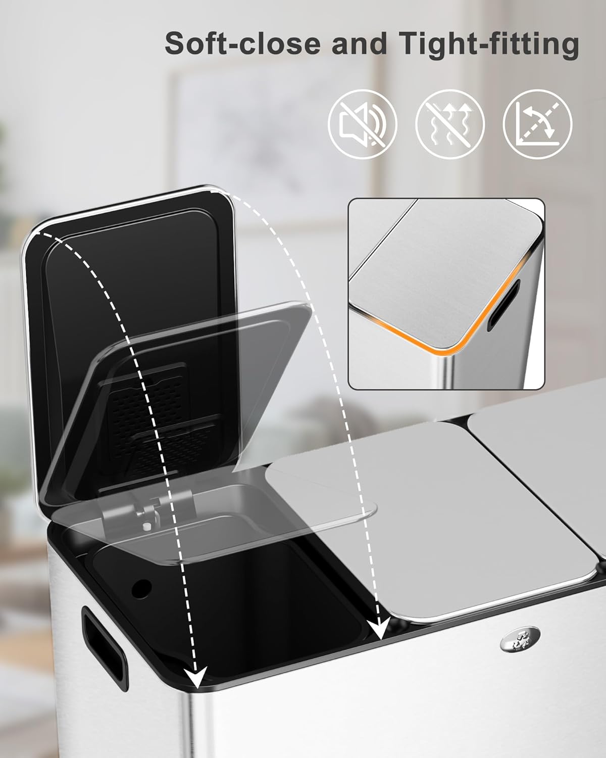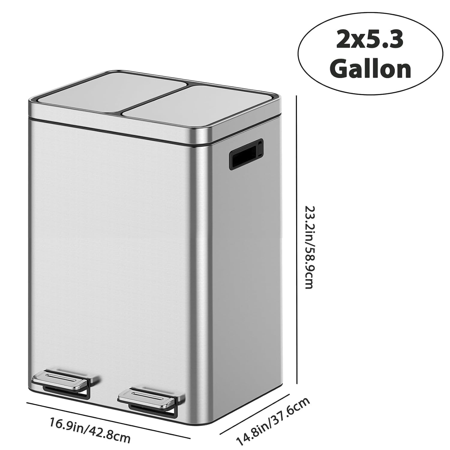GAOMON Dual Trash Can, 2 x 5.3 Gal (2 x 20L) Stainless Steel Trash Can with Recycling Bin, Soft-Close Lid, Step-on Garbage Bin - with Removable Plastic Inner Buckets