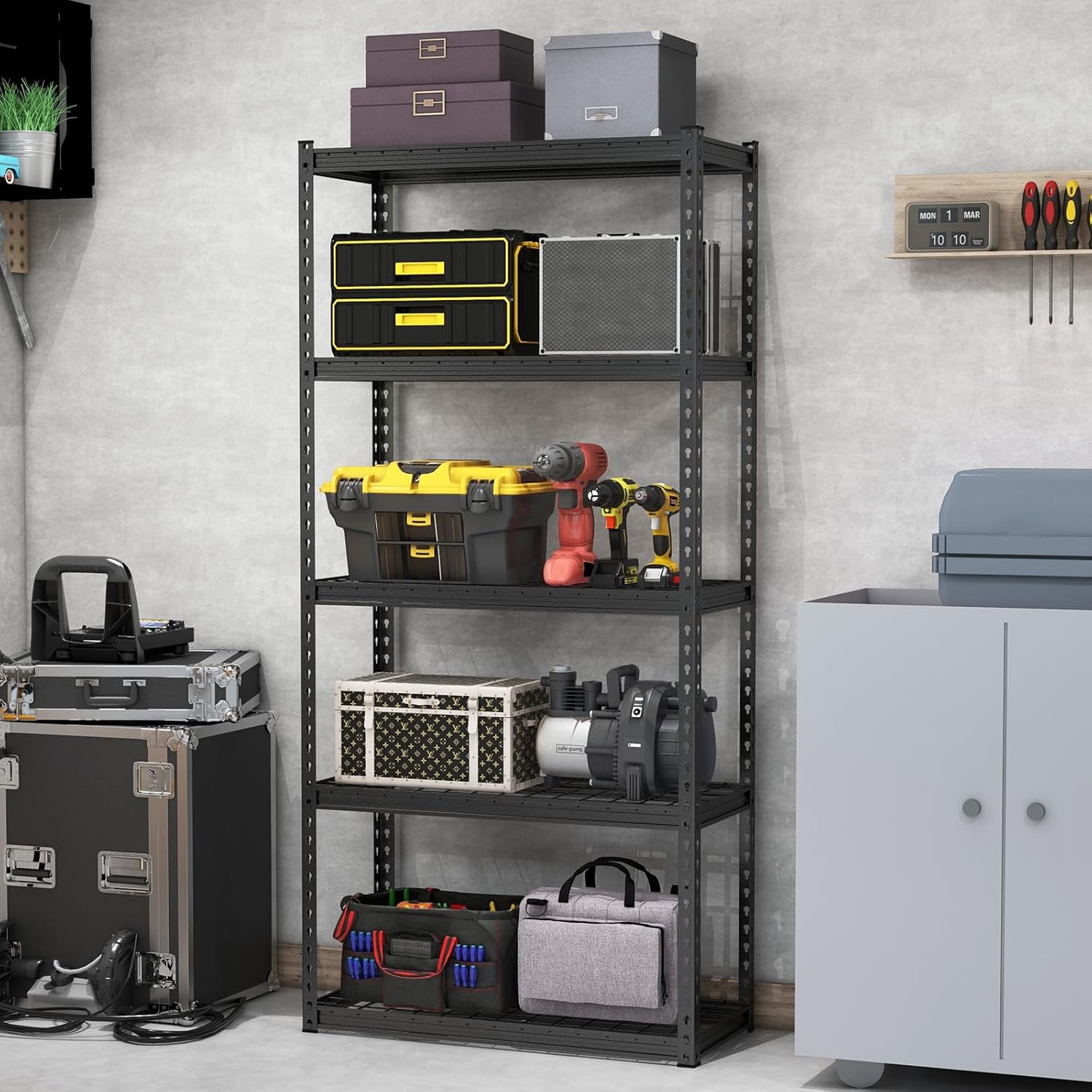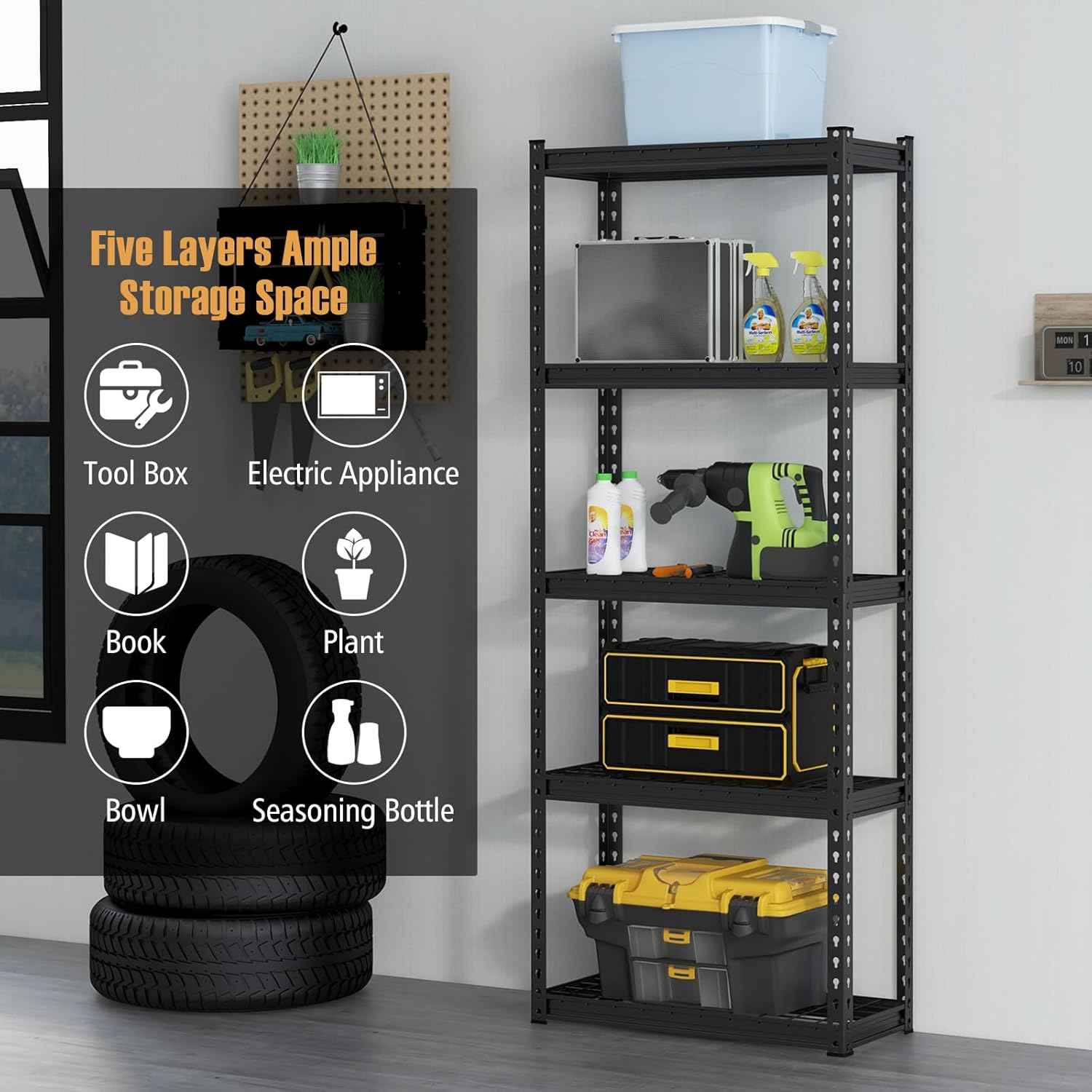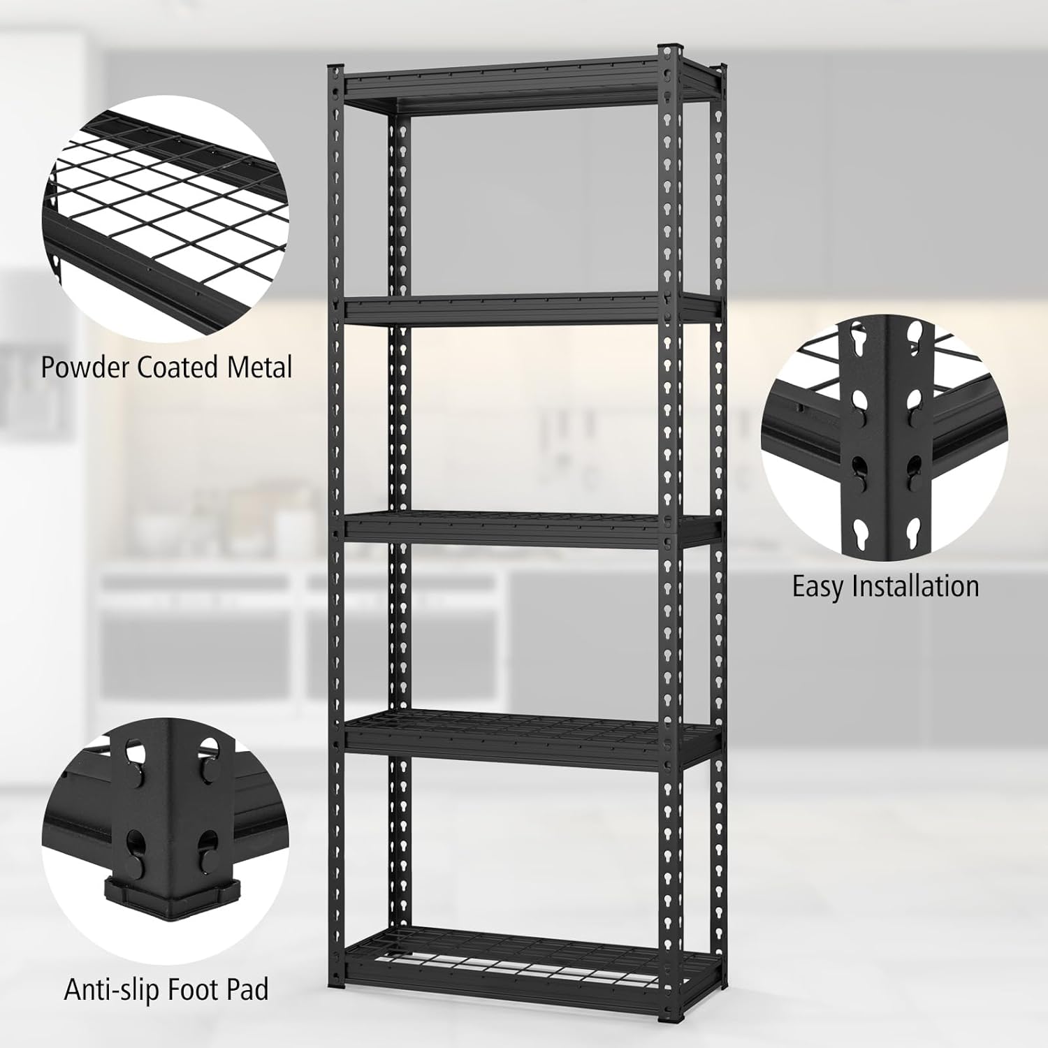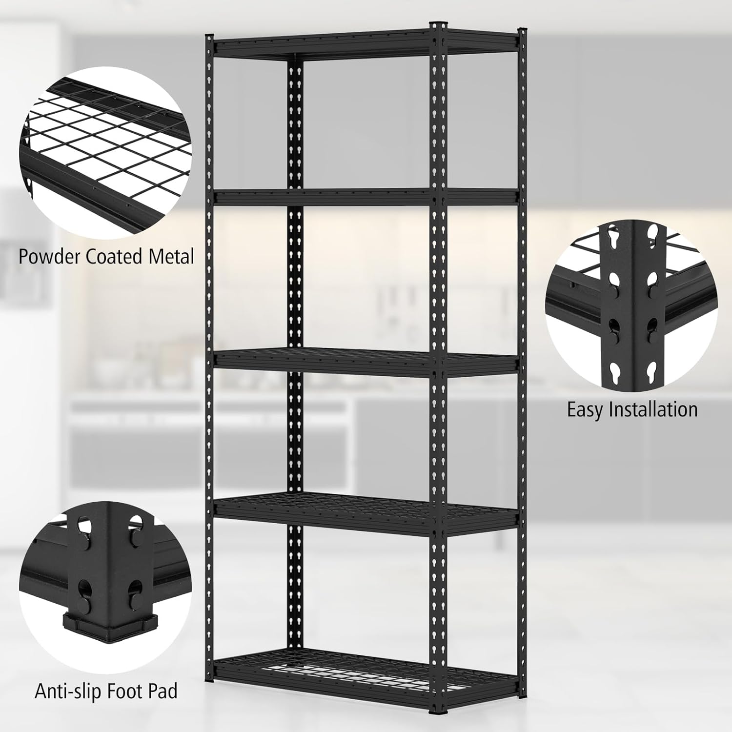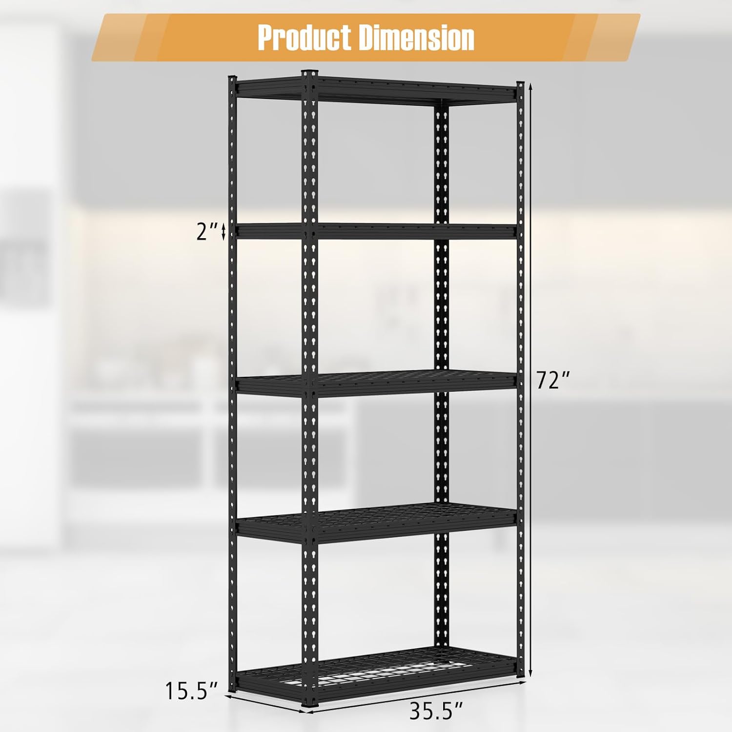 Goplus 5-Tier Metal Shelving Unit, 2 Pack Heavy Duty Wire Storage Rack with Anti-Slip Foot Pads, Height Adjustable Shelves for Warehouse, Kitchen, Living Room, Garage, 15.5" D×35.5" W×72" H