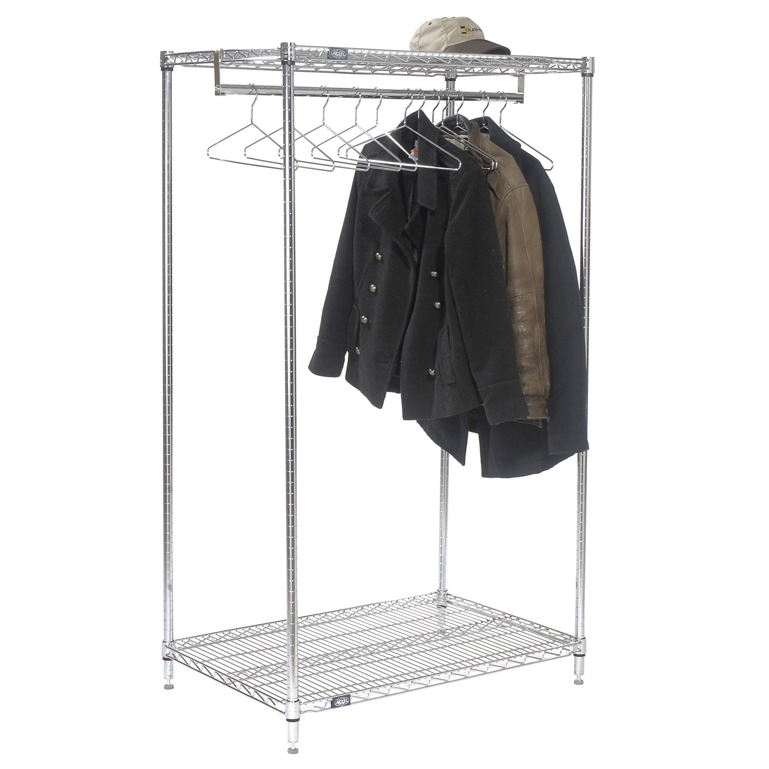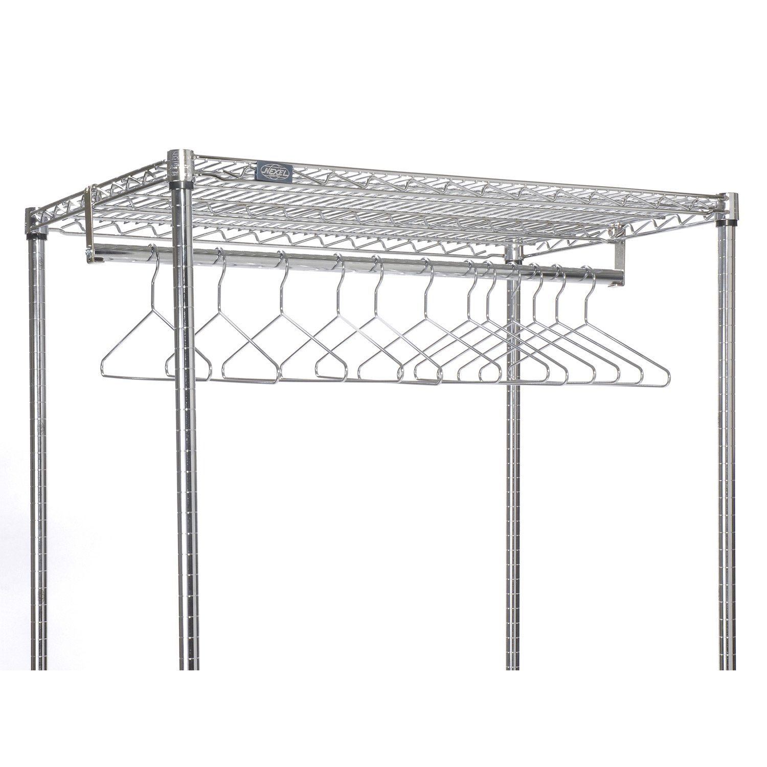 Nexel Commercial Wall Mount Coat Rack with Bar, 60"W x 24"D x 6"H, Durable Chrome Plated Steel Wire, 36 Hangers, 200lb Capacity, Chrome (GW36C)