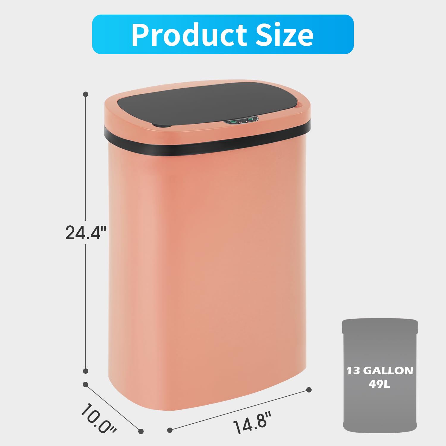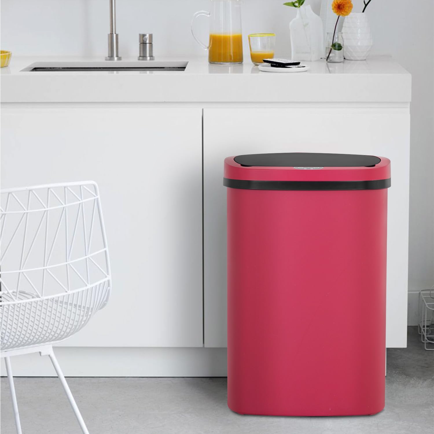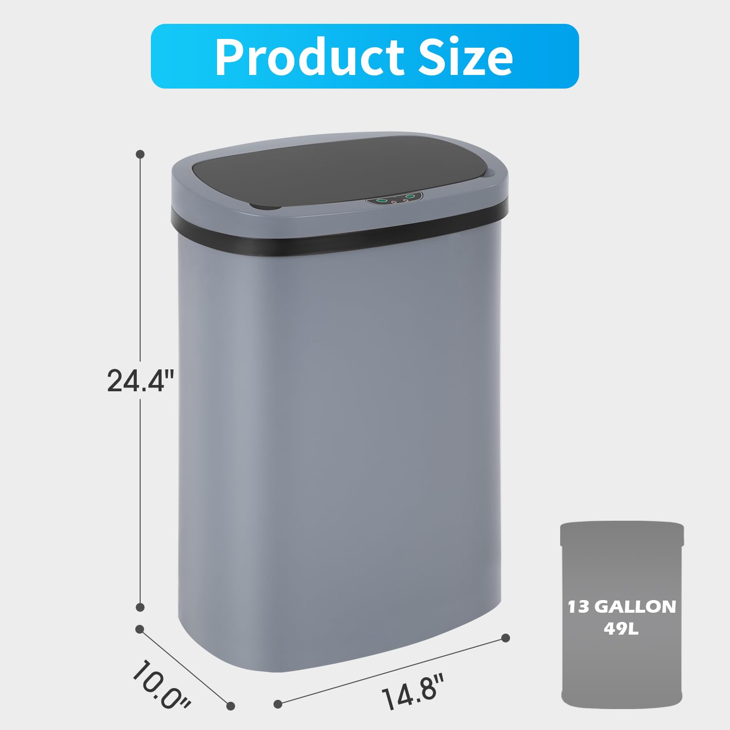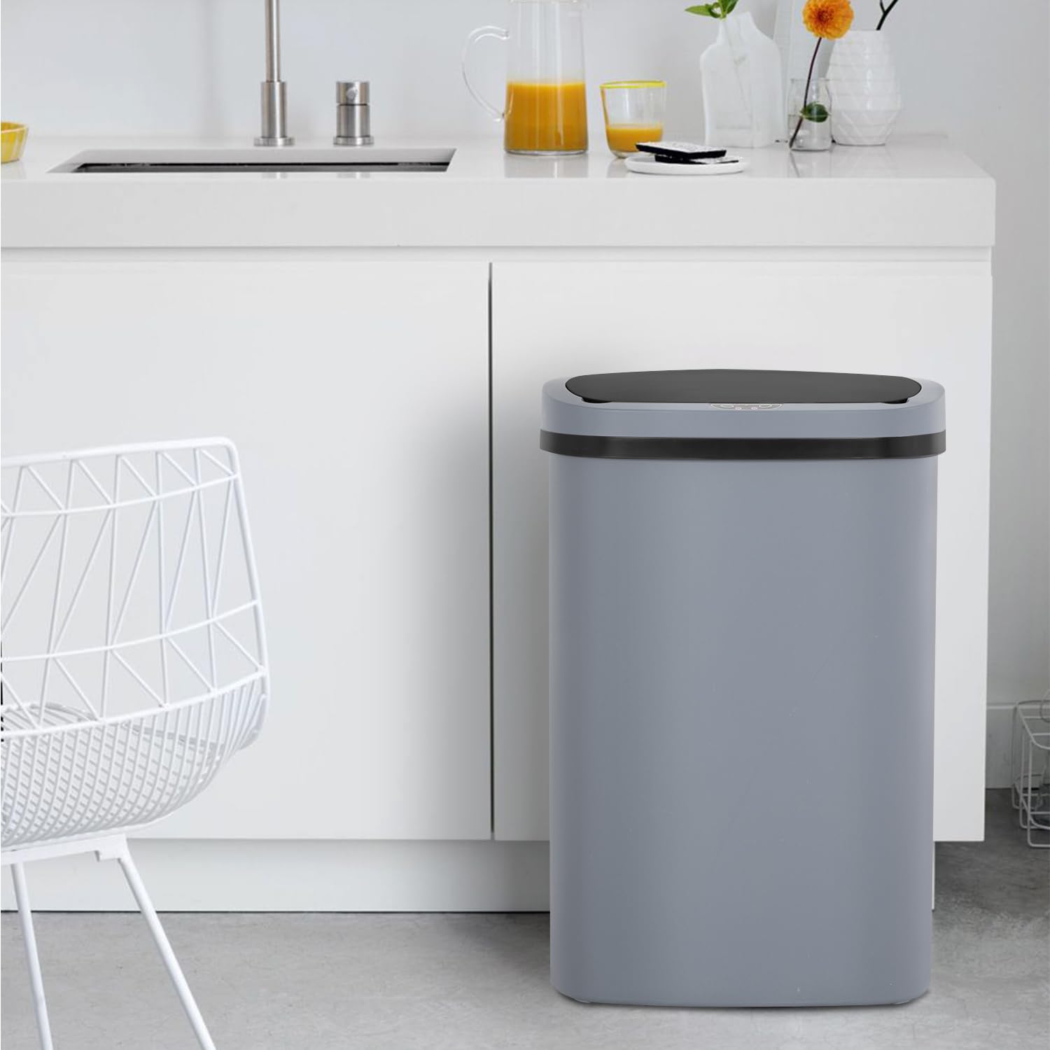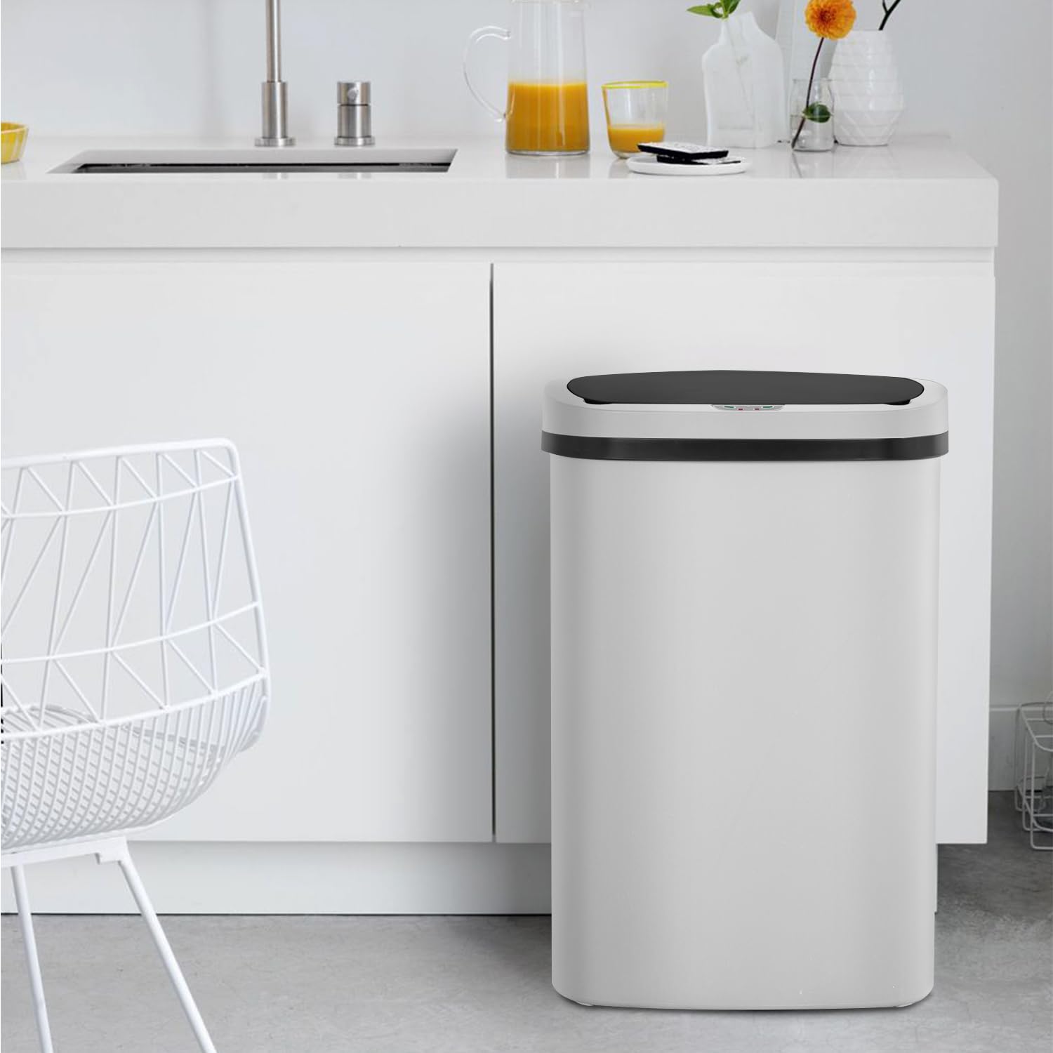 BestOffice Trash Can Broken-Resistant Plastic Touch Free High-Capacity Garbage Can with Lid for Bedroom Bathroom Home Office 49 Liter 13 Gallon Trash Can Automatic Kitchen Trash Can