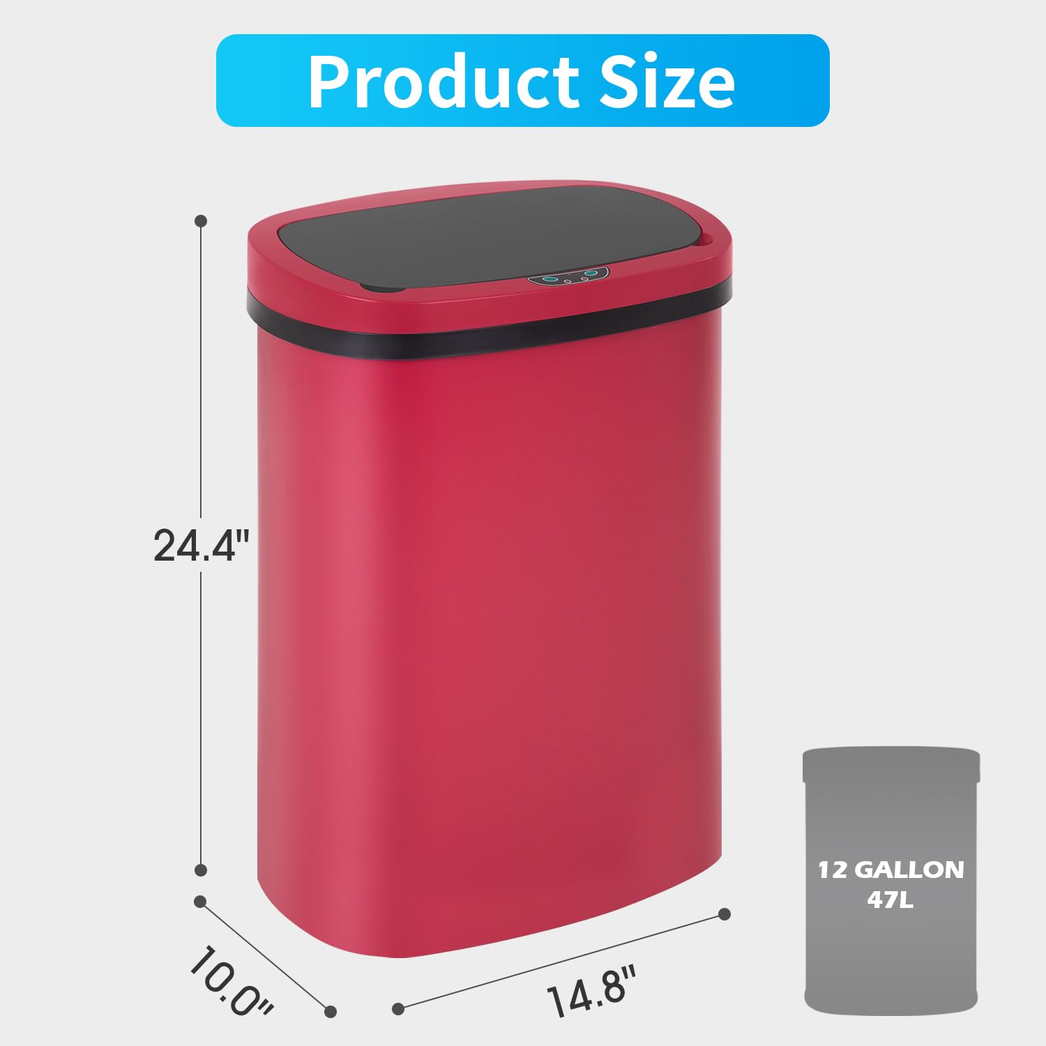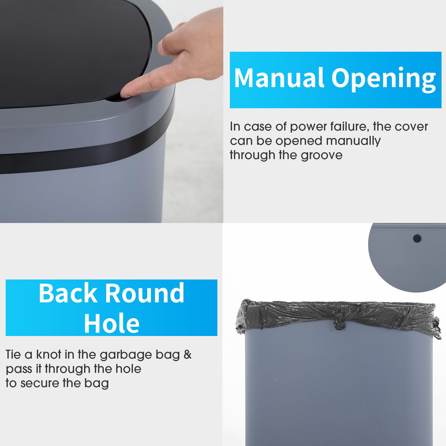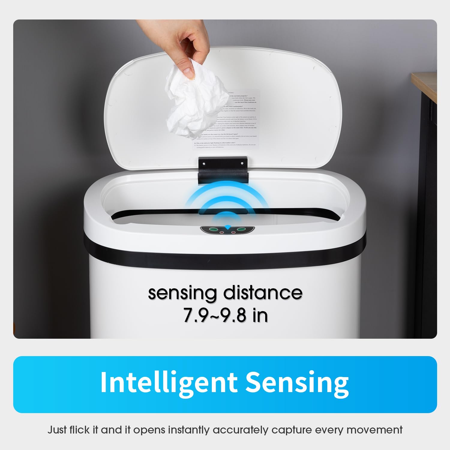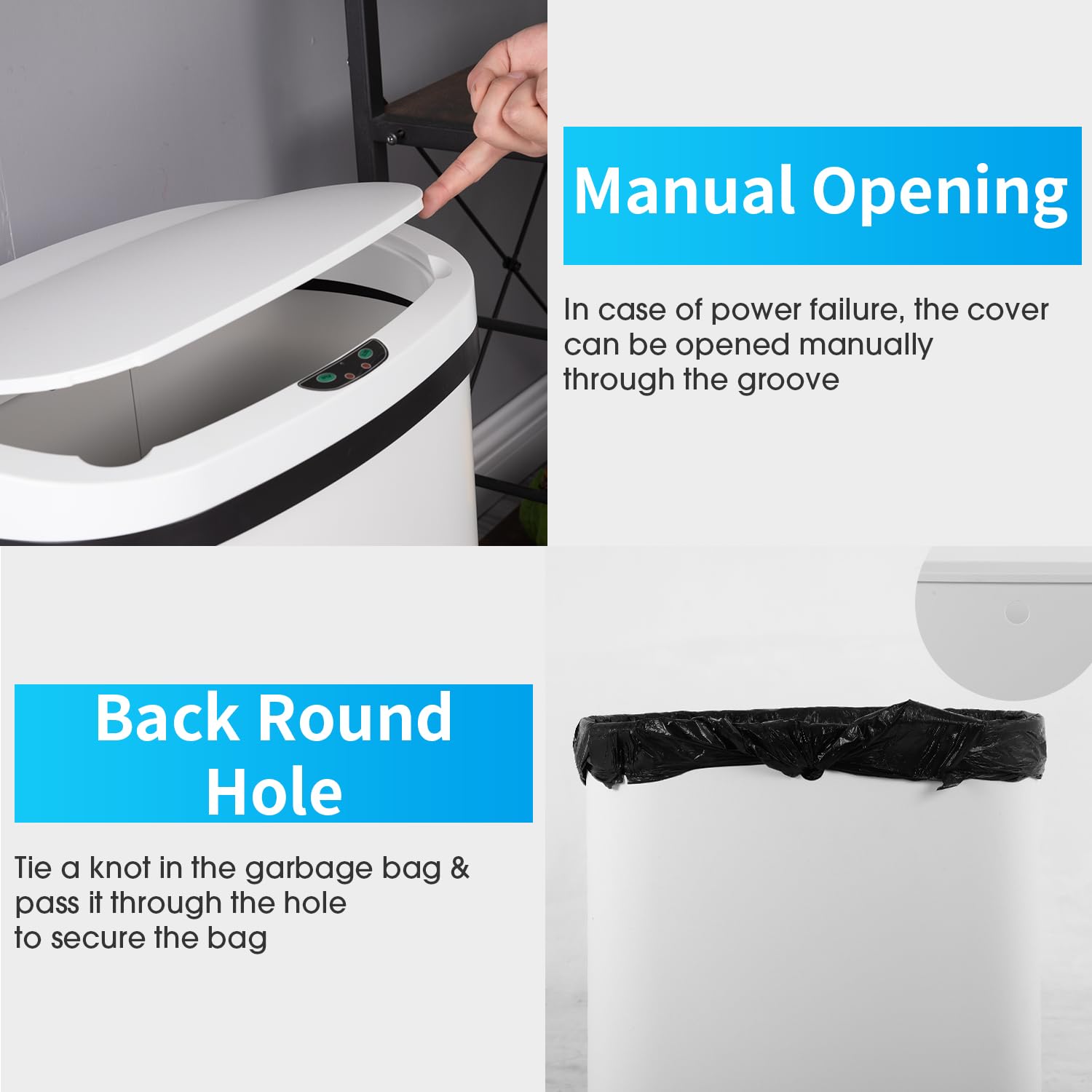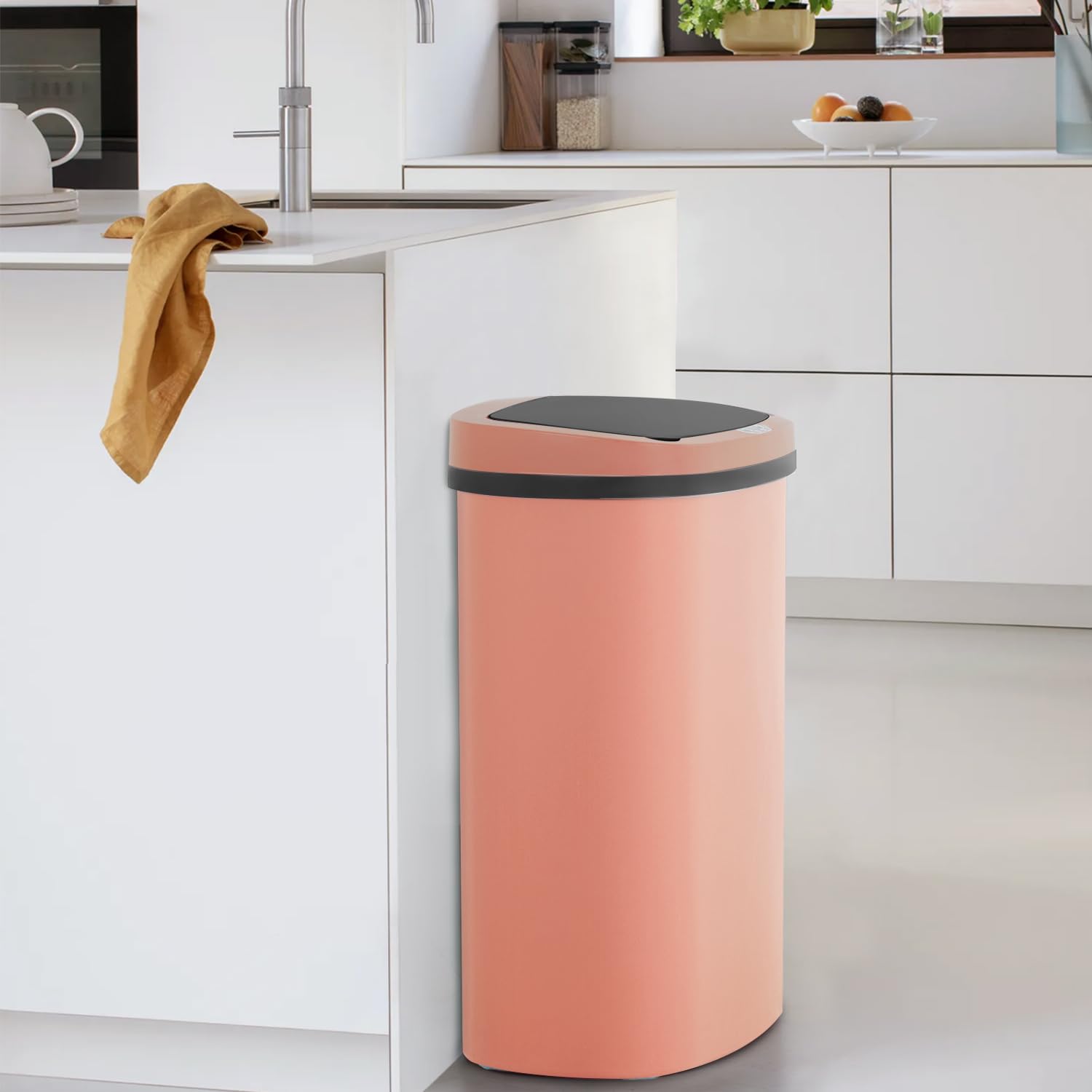 BestOffice Trash Can Broken-Resistant Plastic Touch Free High-Capacity Garbage Can with Lid for Bedroom Bathroom Home Office 49 Liter 13 Gallon Trash Can Automatic Kitchen Trash Can