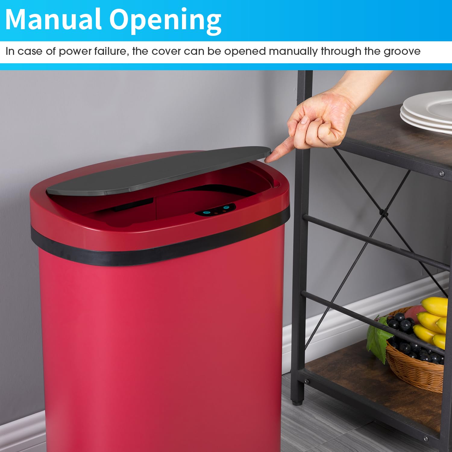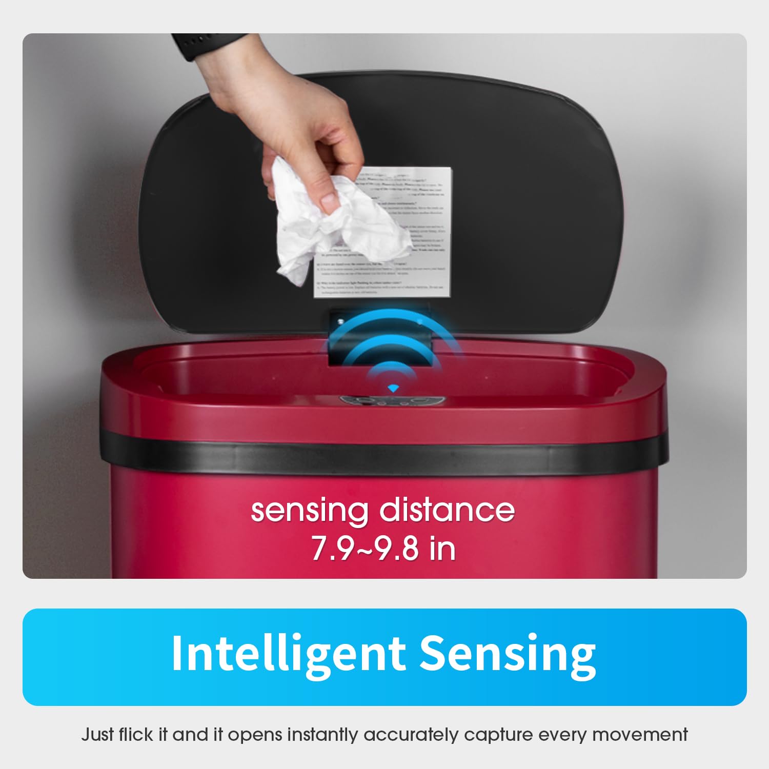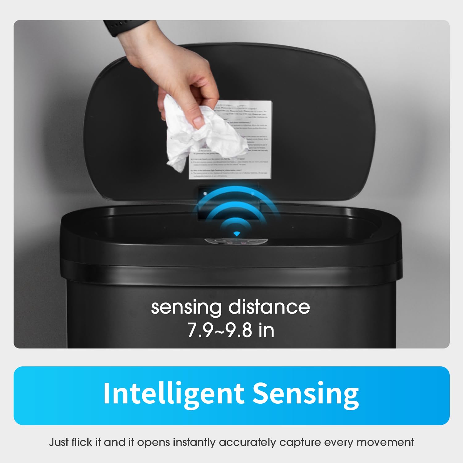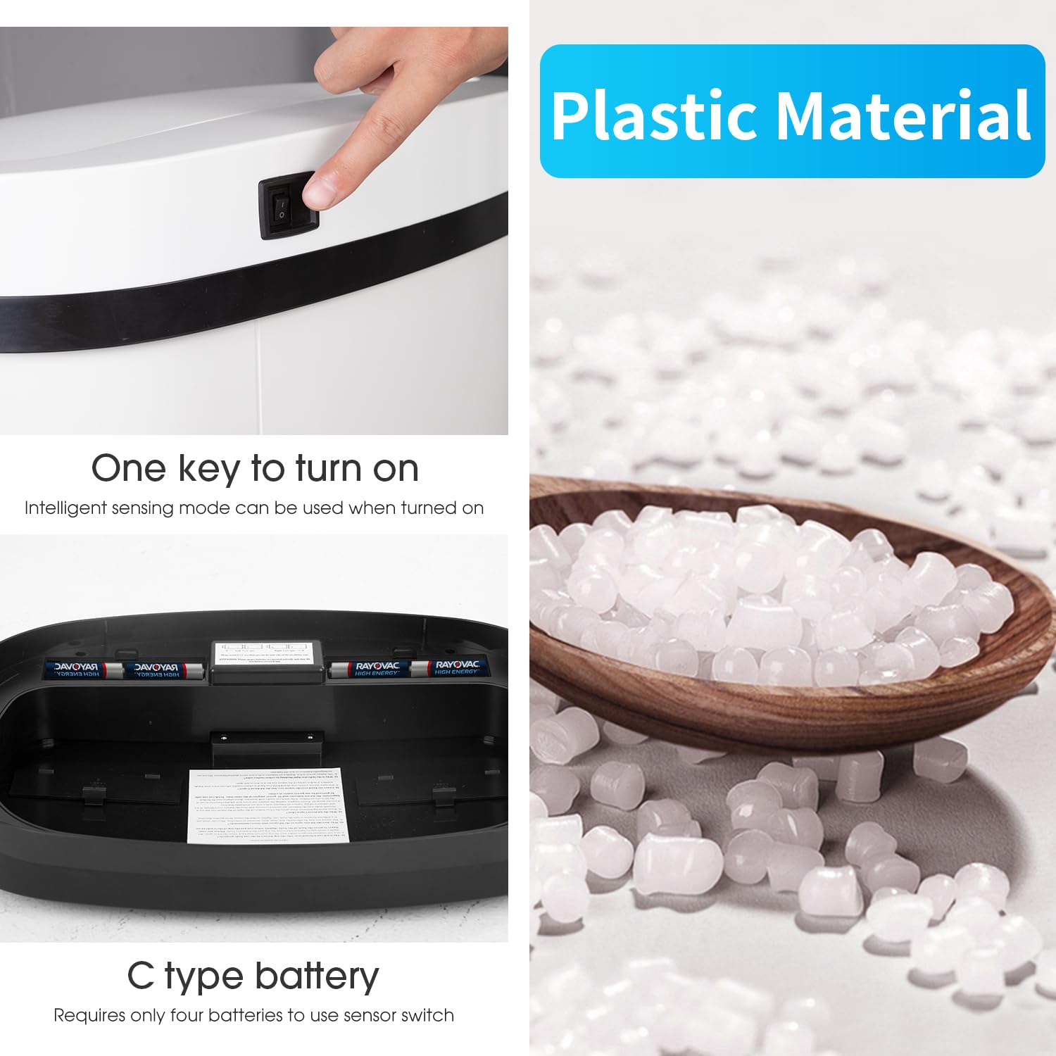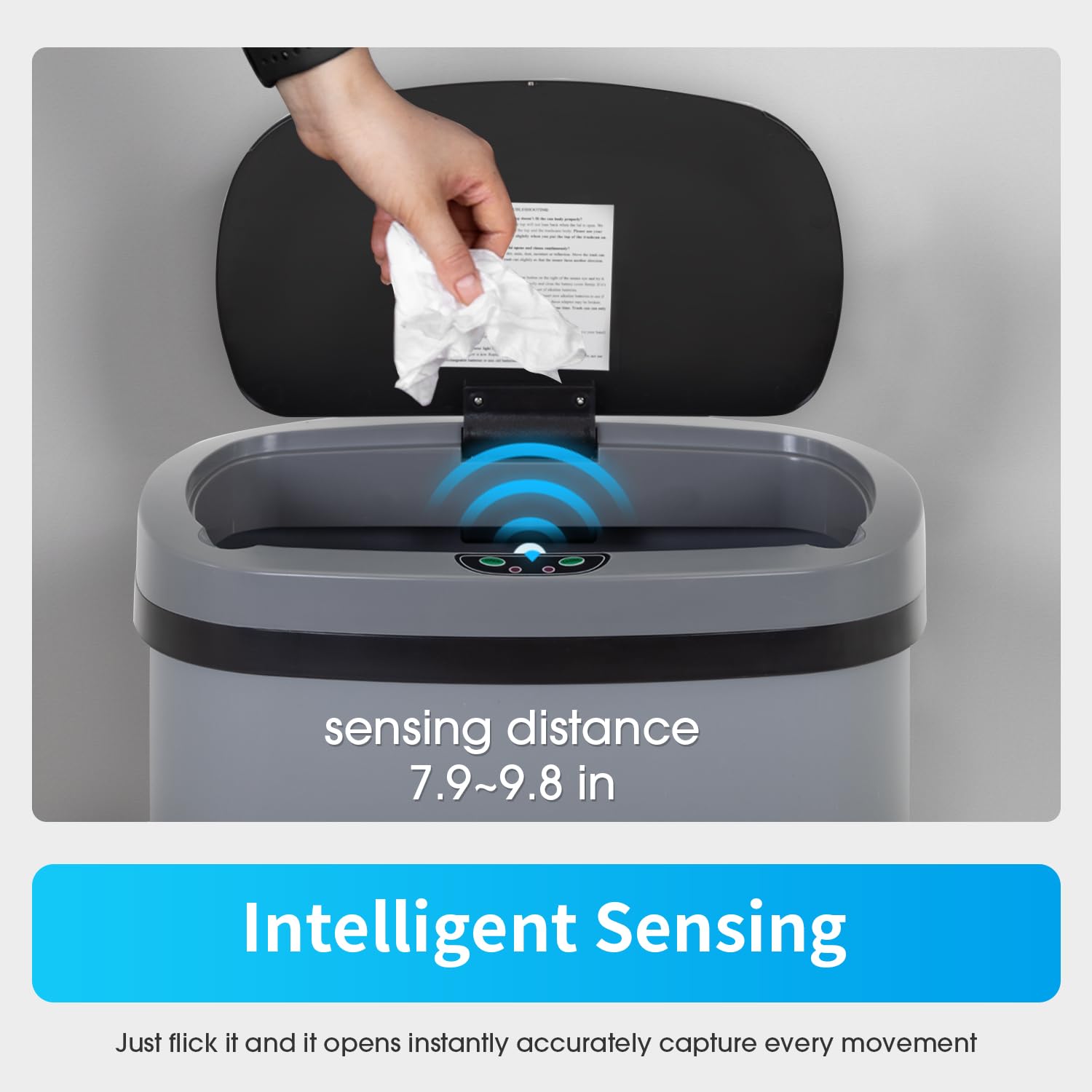 BestOffice Trash Can Broken-Resistant Plastic Touch Free High-Capacity Garbage Can with Lid for Bedroom Bathroom Home Office 49 Liter 13 Gallon Trash Can Automatic Kitchen Trash Can
