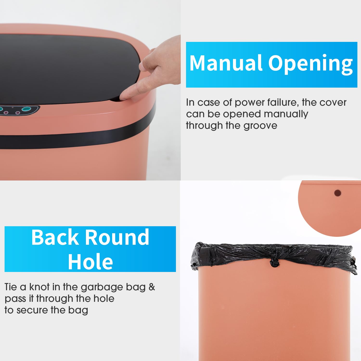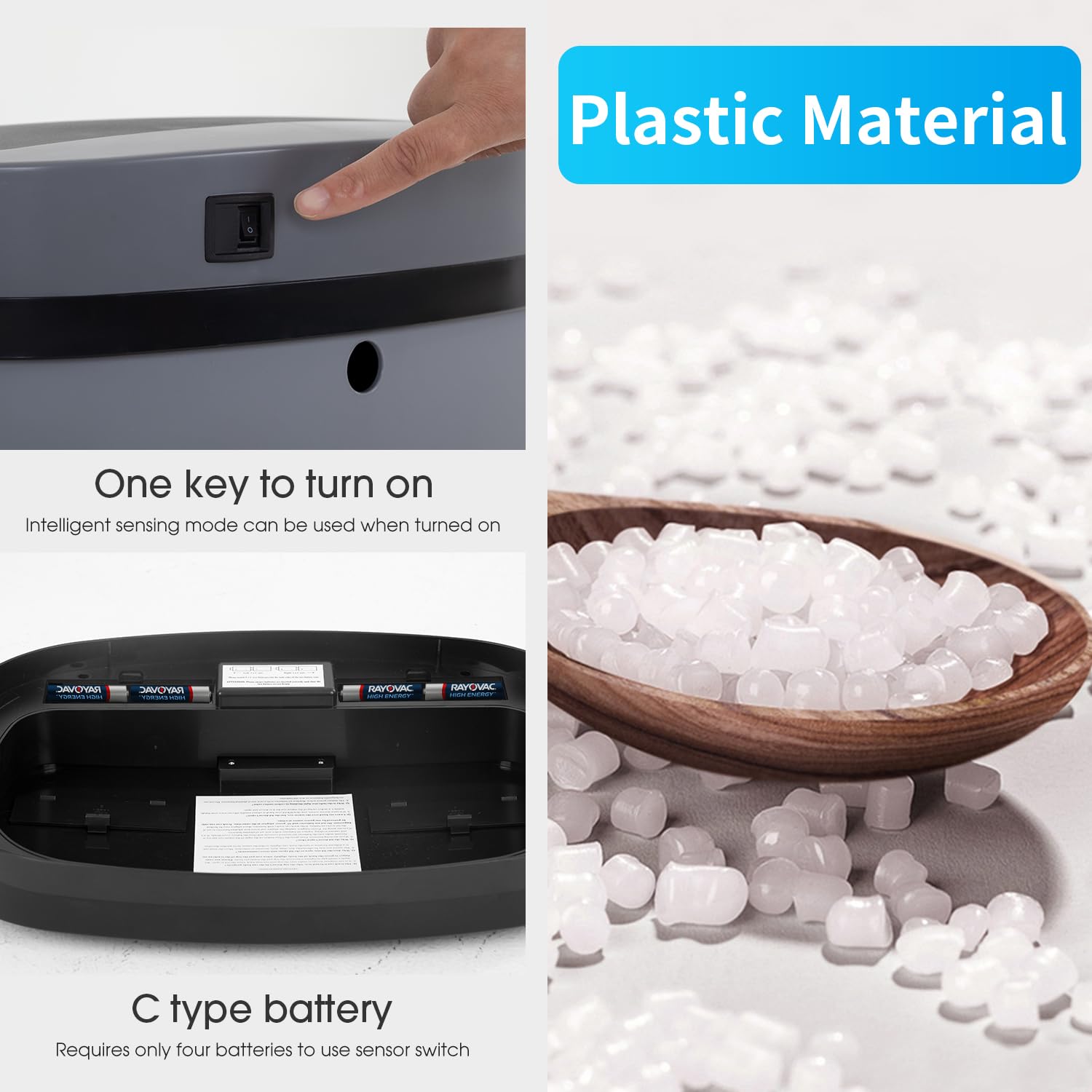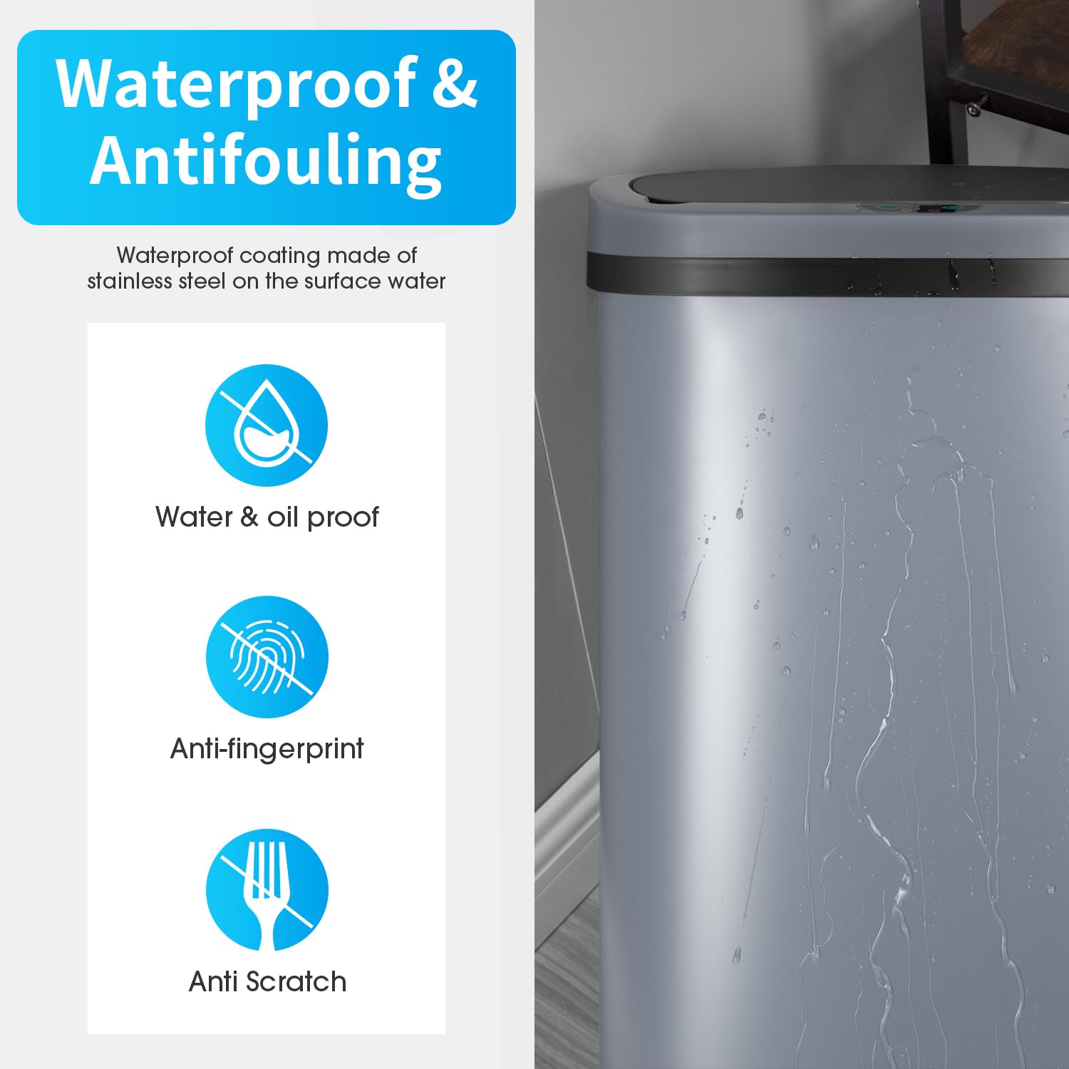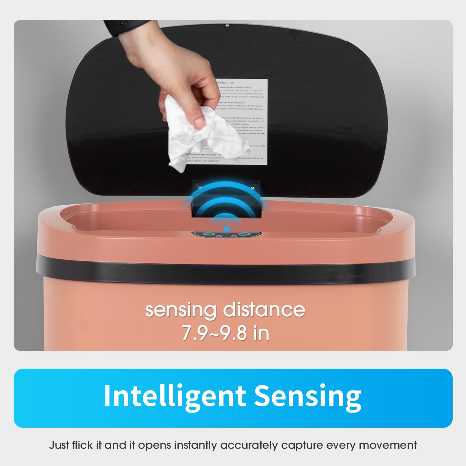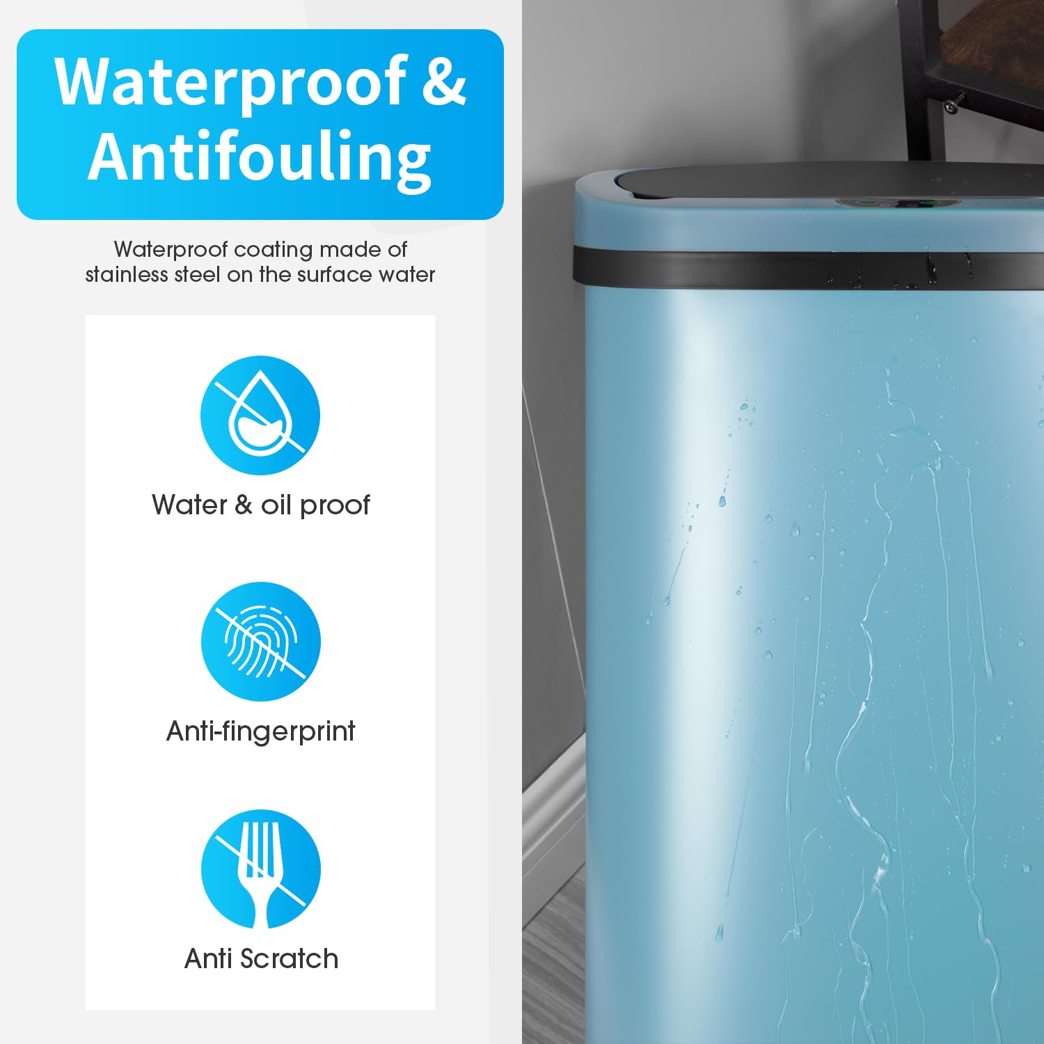 BestOffice Trash Can Broken-Resistant Plastic Touch Free High-Capacity Garbage Can with Lid for Bedroom Bathroom Home Office 49 Liter 13 Gallon Trash Can Automatic Kitchen Trash Can
