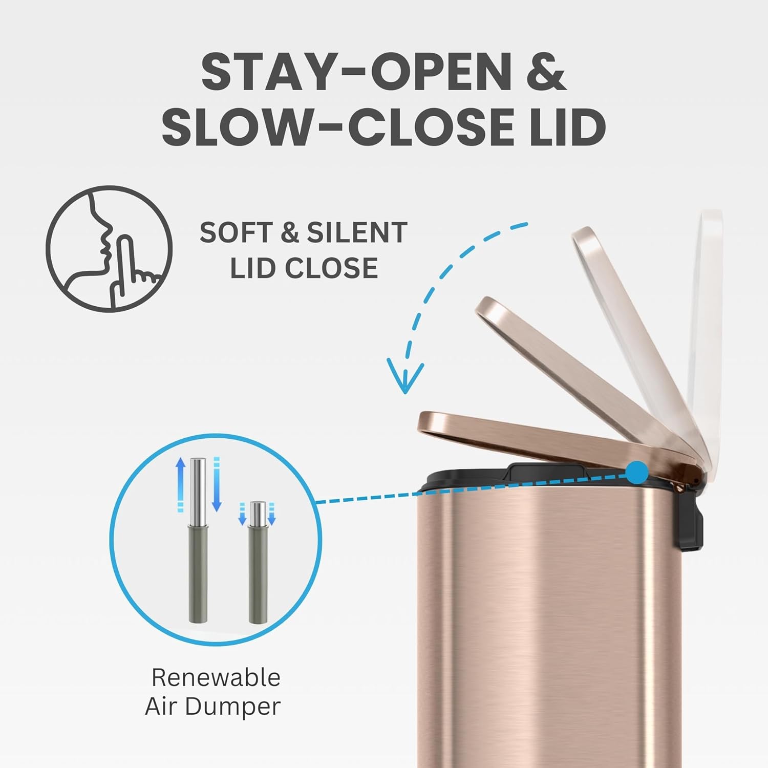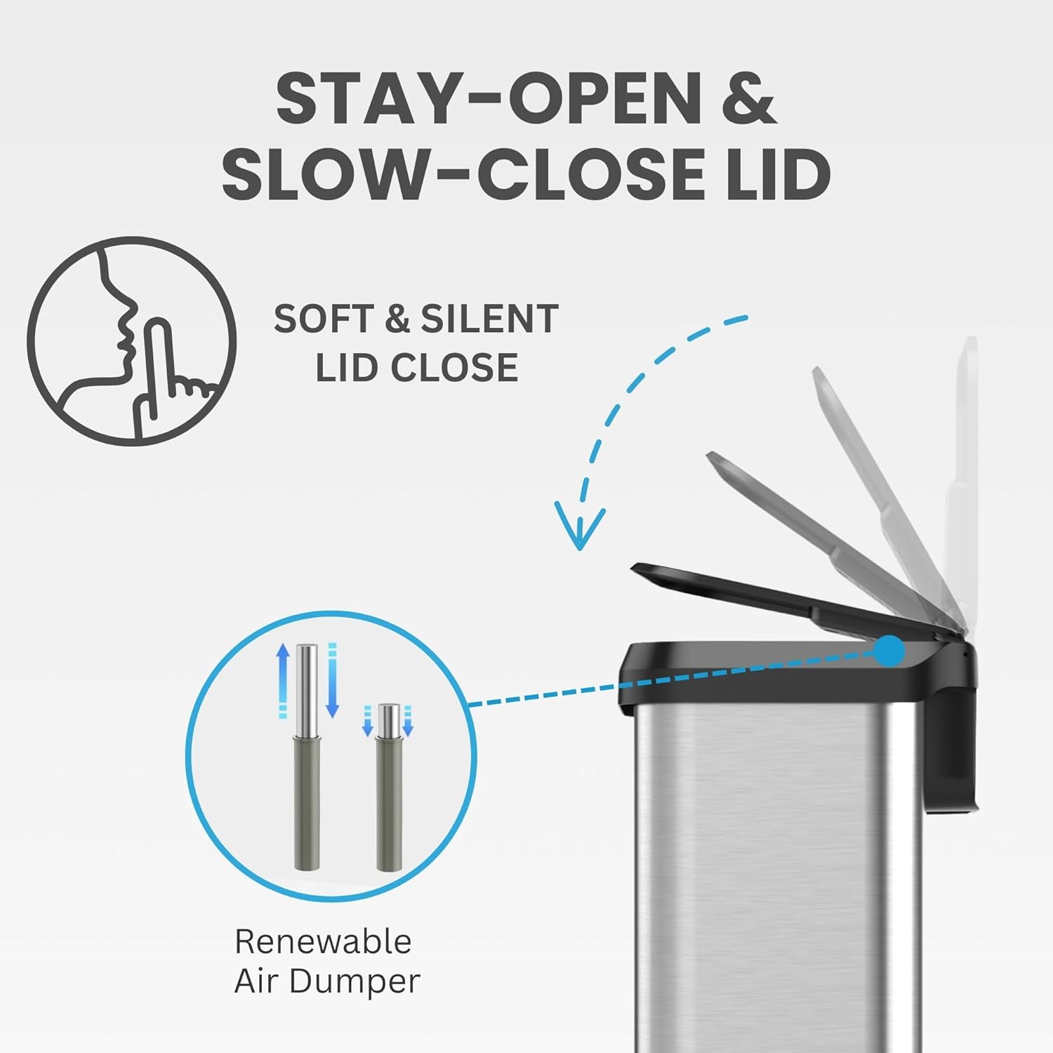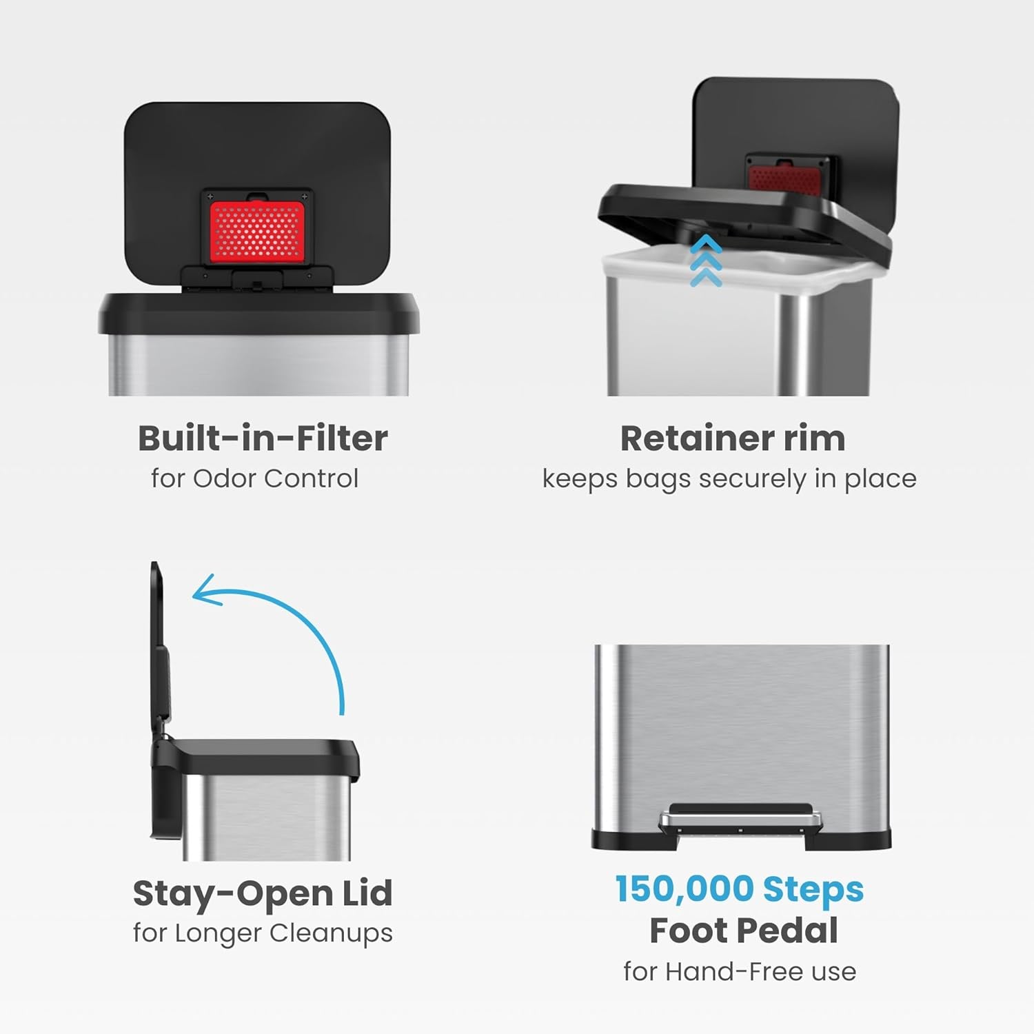 iTouchless 13 Gallon Step 2.0 Technology Airstep Kitchen Trash Can with AbsorbX Odor Filter, Silent-Close Stainless Steel Recycle Bin for Home and Office Business Store Garage School