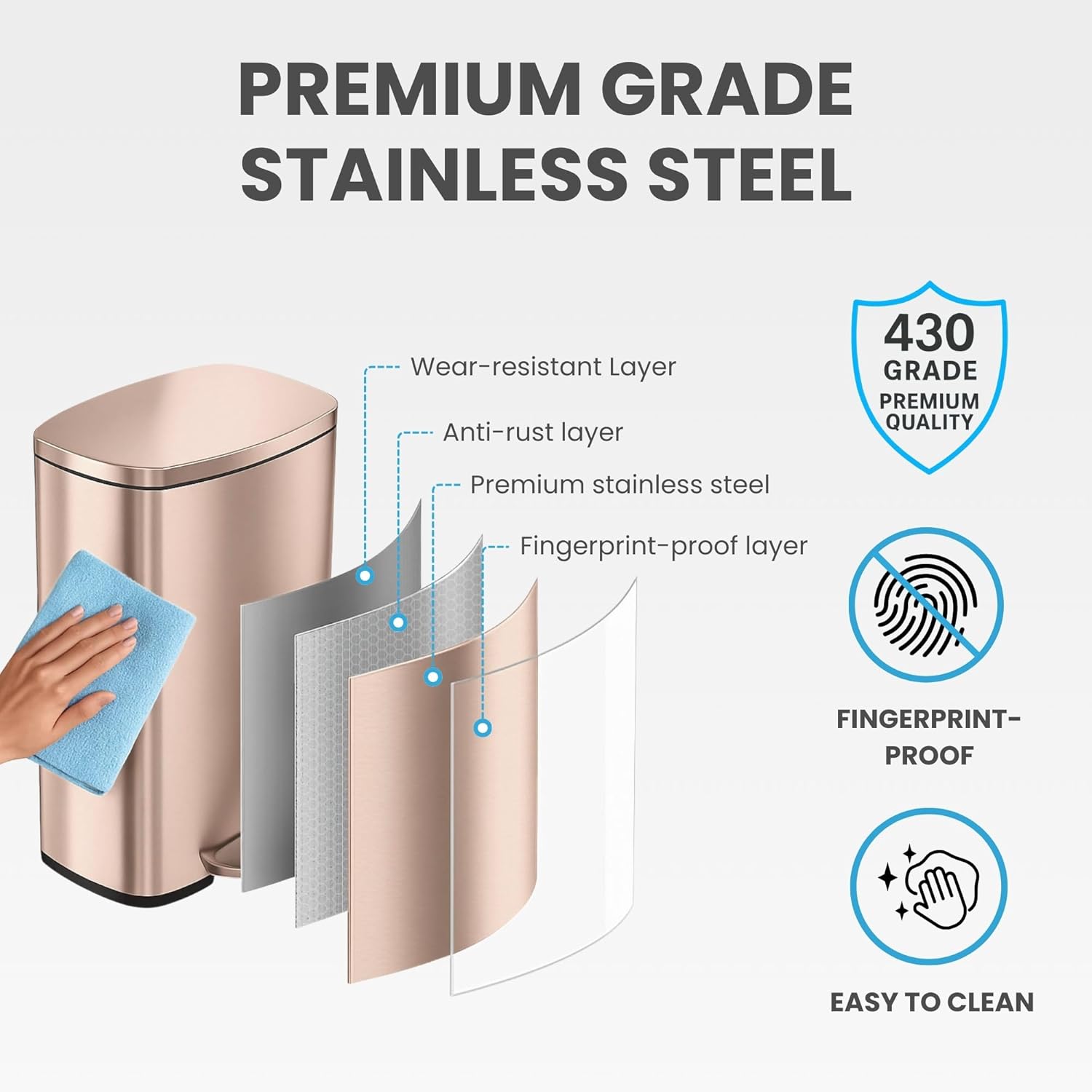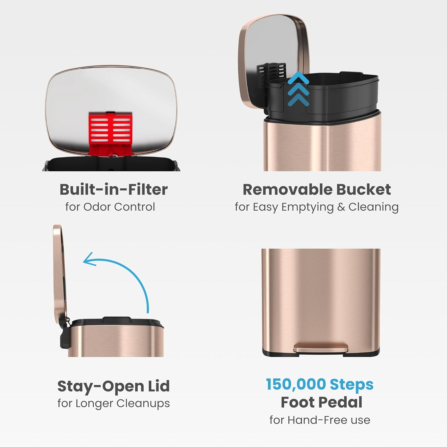 iTouchless 50 Liter Fingerprint Proof Pedal Garbage Bin, Space-Saving Design for Kitchen, Office, Home SoftStep 13.2 Gallon Step Trash Can with Odor Control System, Brushed Stainless Steel Semi-Round