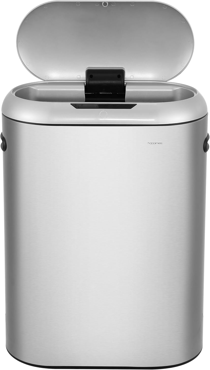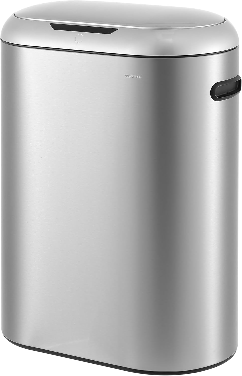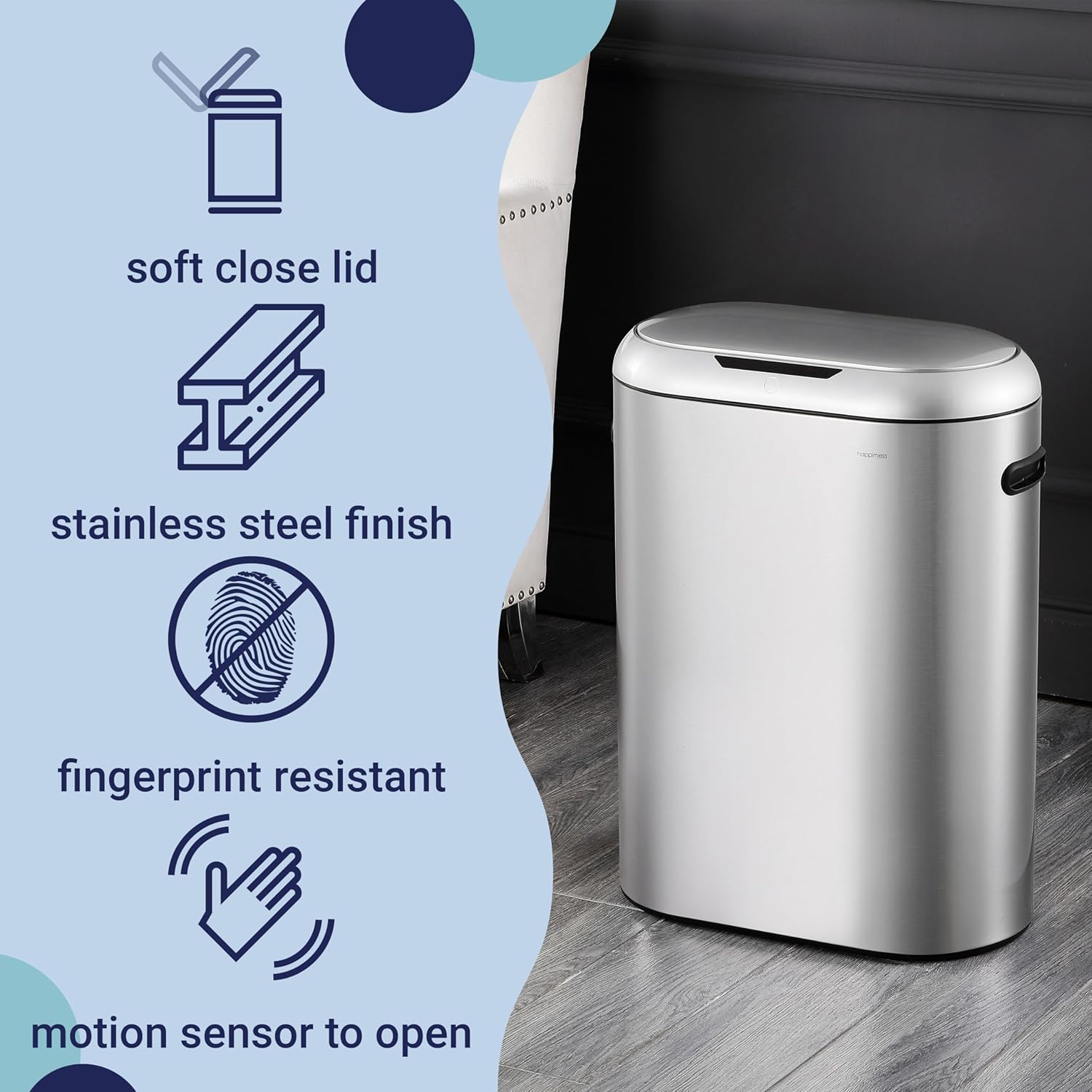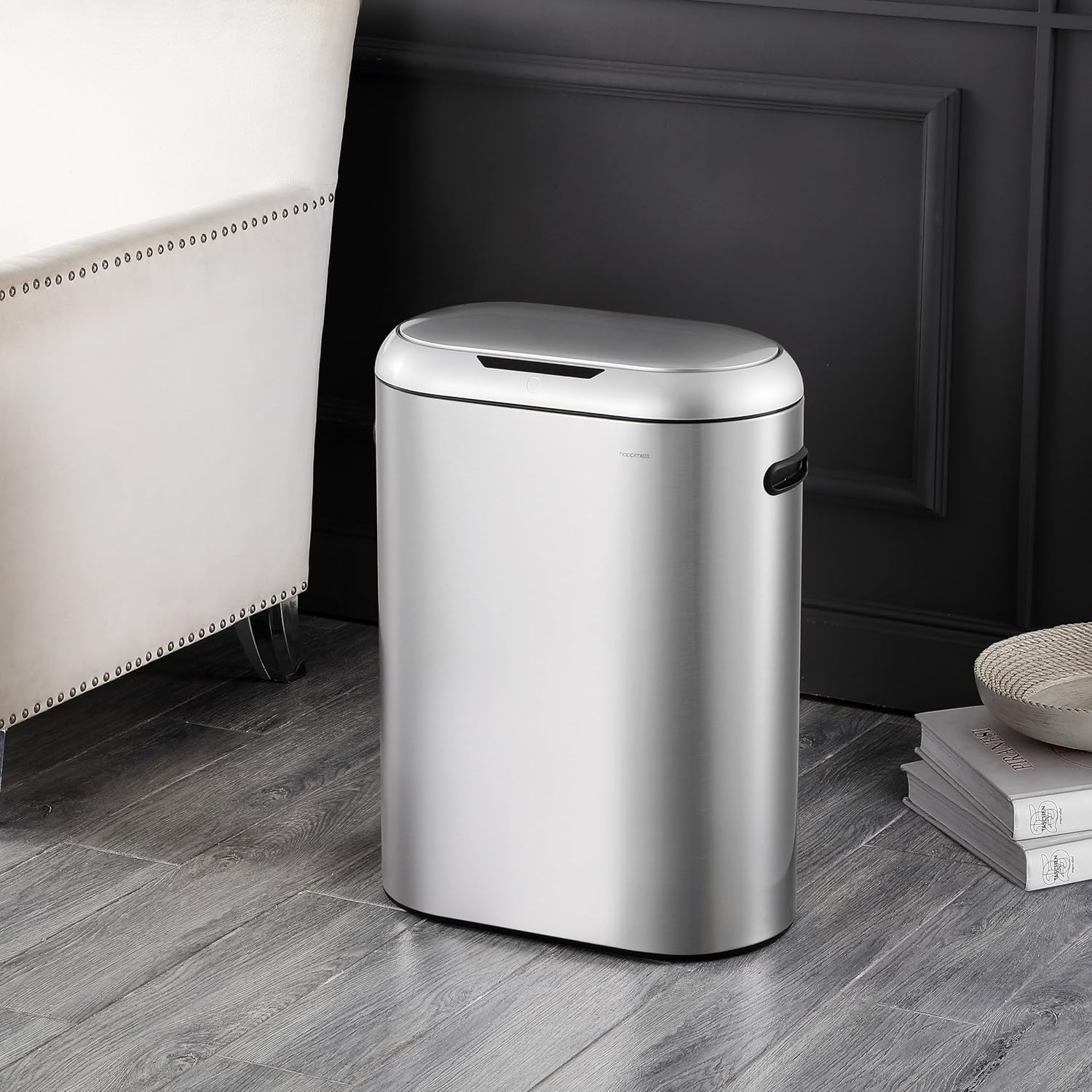 happimess HPM1016A Robo Kitchen 13.2-Gallon Slim Oval Motion Sensor Touchless Trash Can with Touch Mode, Fingerprint Resistant, Modern, Minimalistic for Kitchen, Office, Bathroom, Platinum Silver