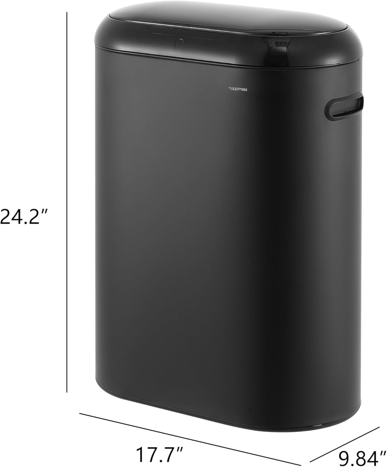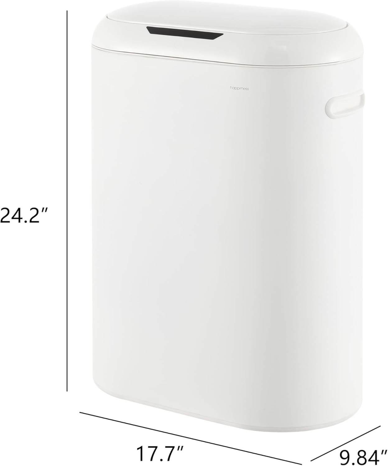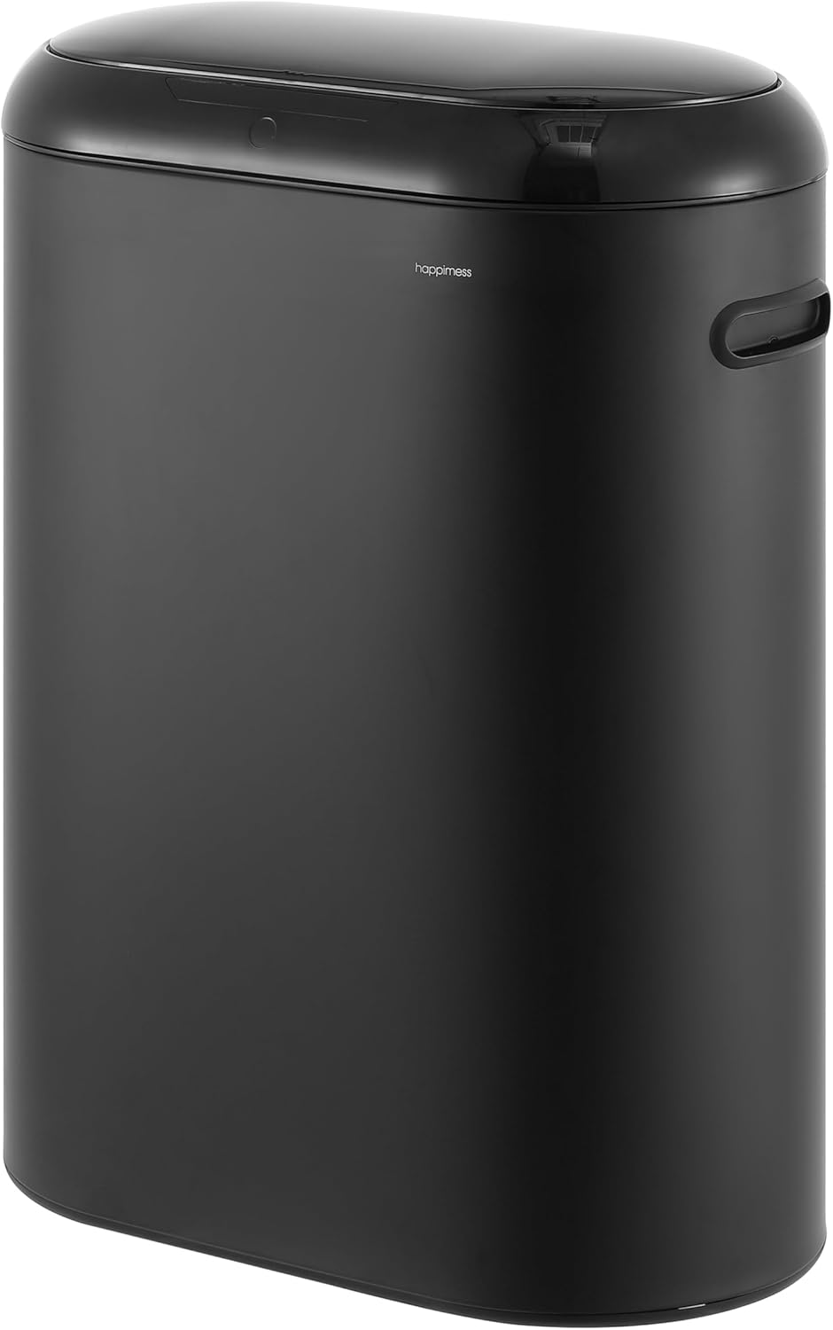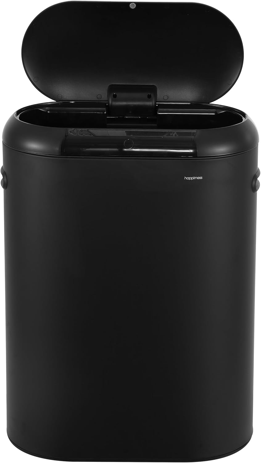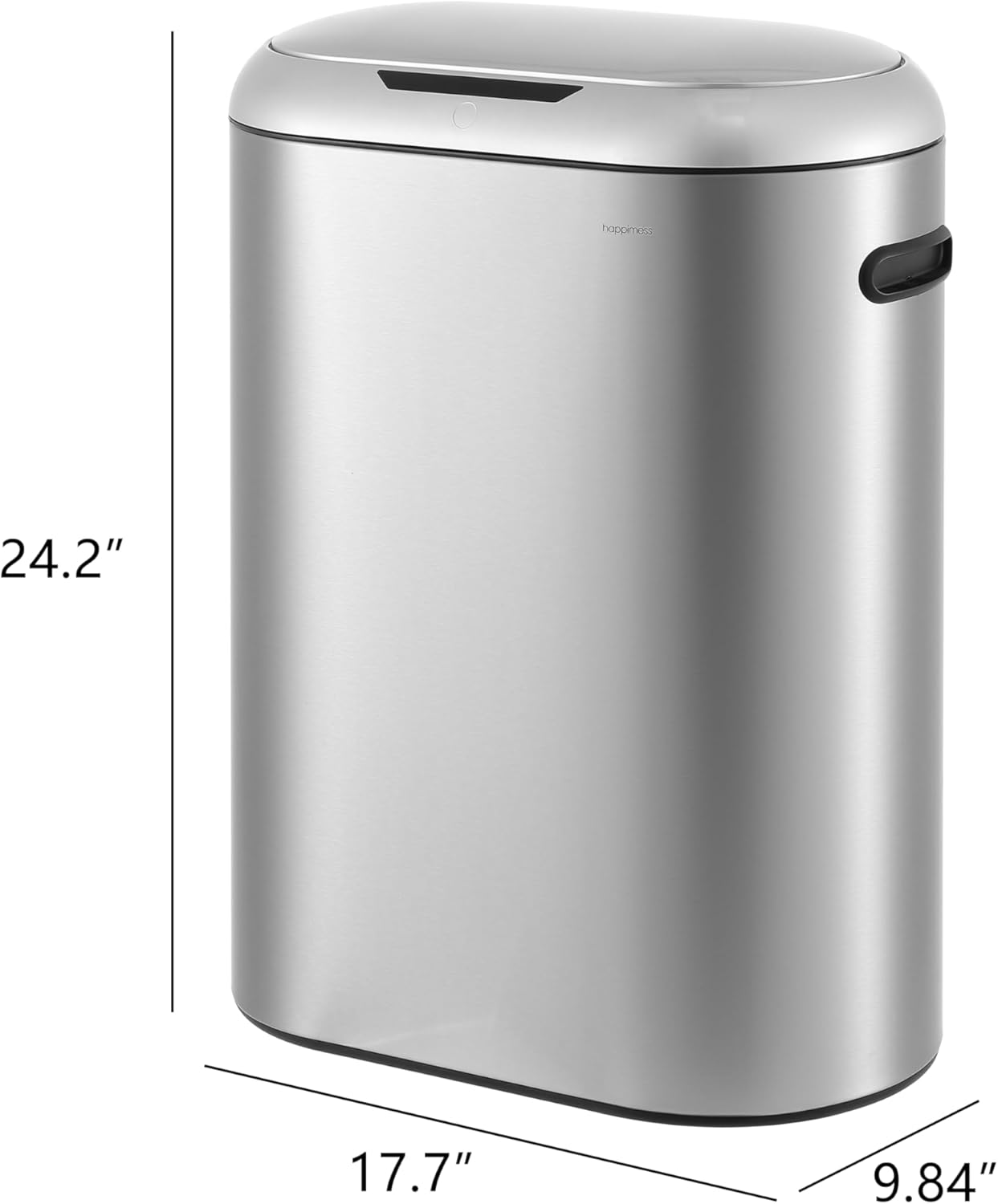 happimess HPM1016A Robo Kitchen 13.2-Gallon Slim Oval Motion Sensor Touchless Trash Can with Touch Mode, Fingerprint Resistant, Modern, Minimalistic for Kitchen, Office, Bathroom, Platinum Silver